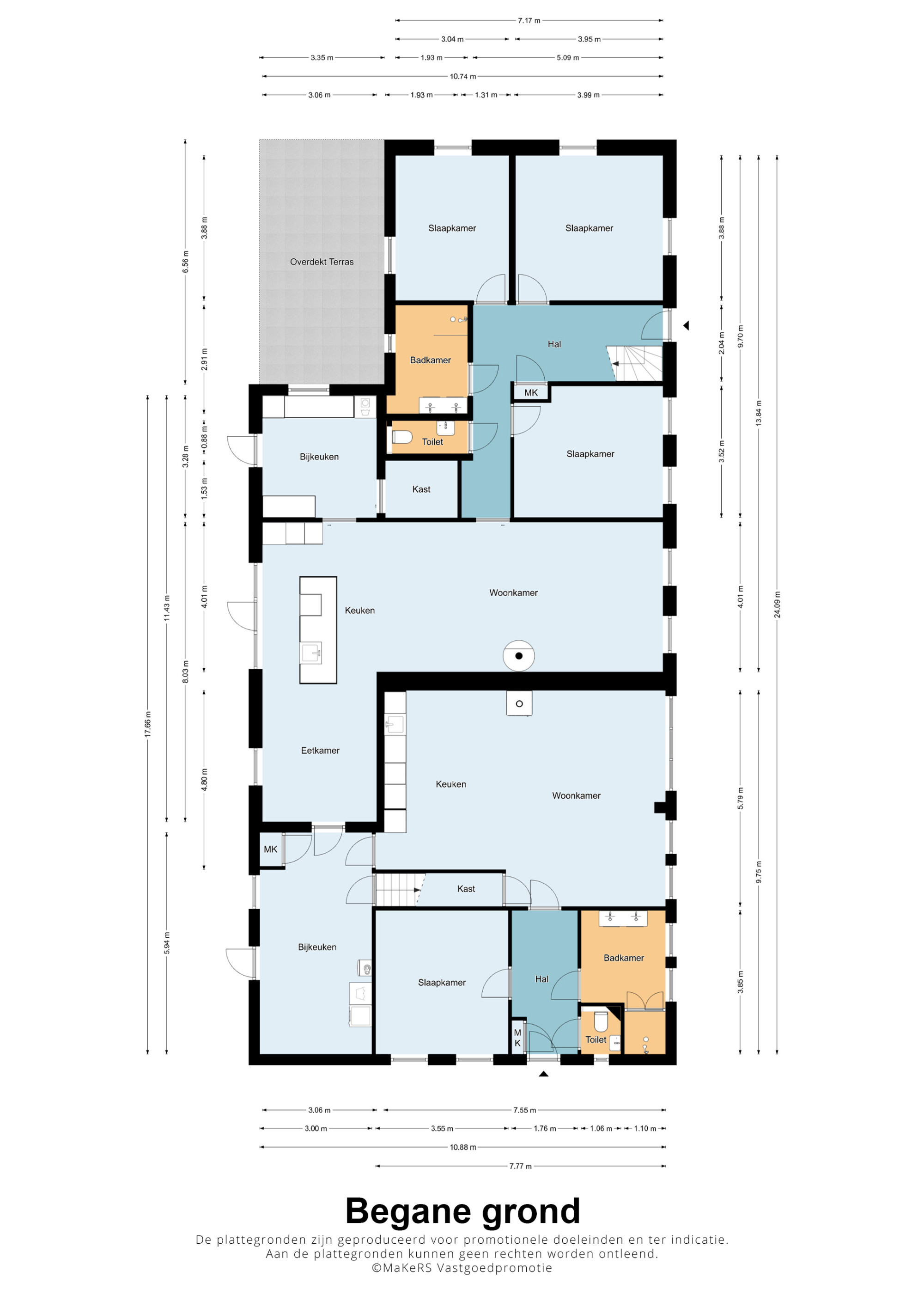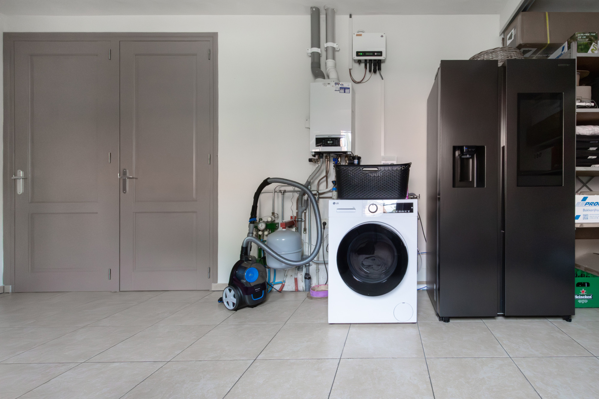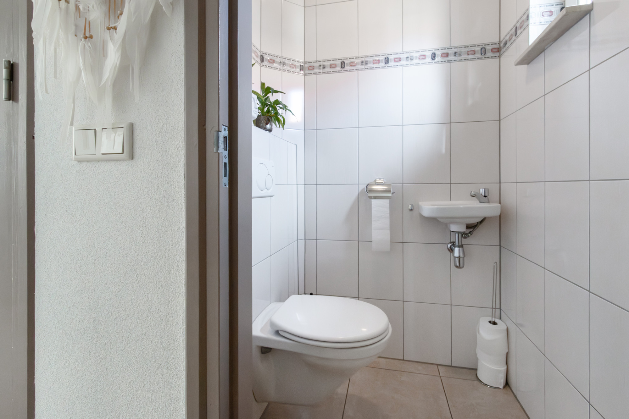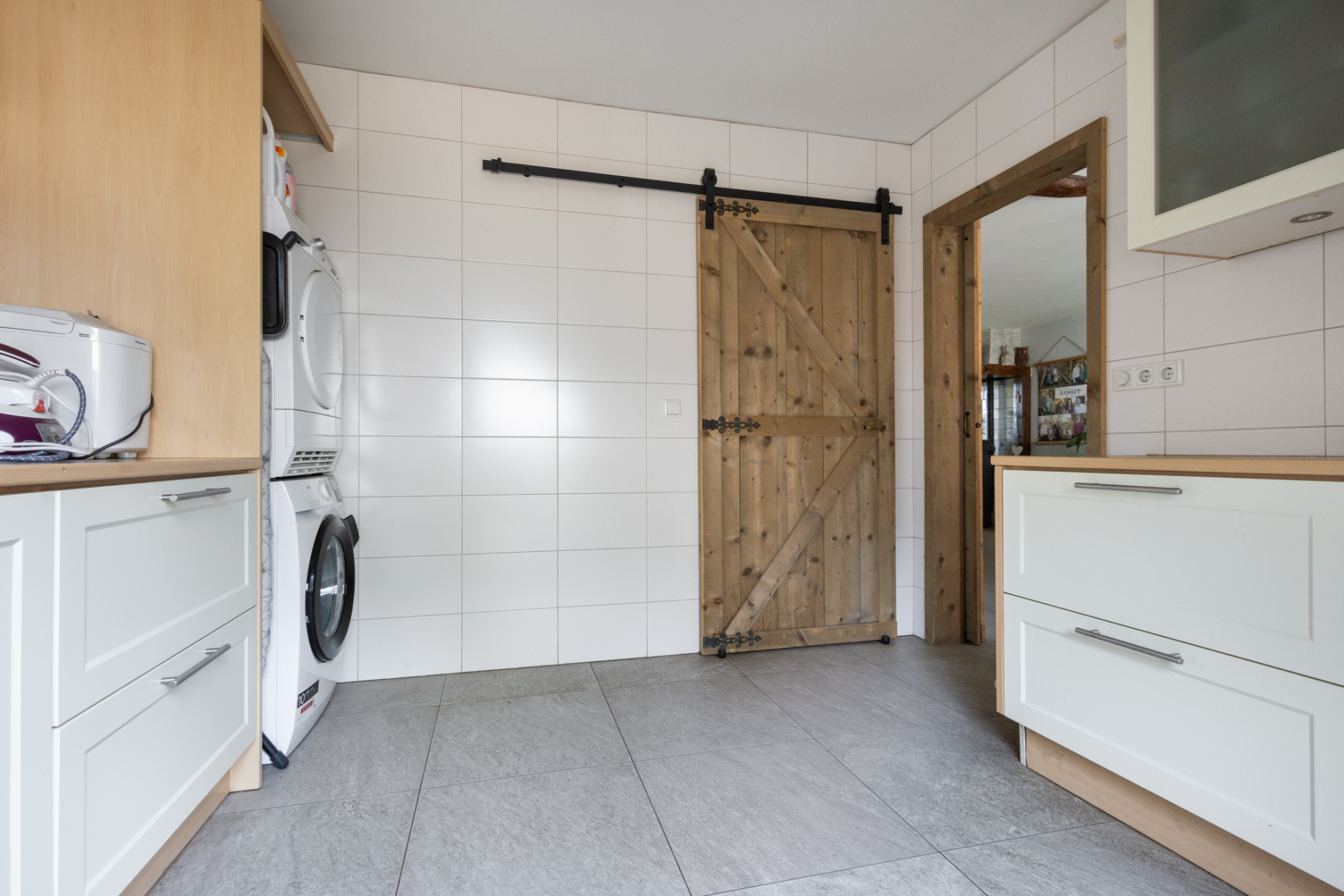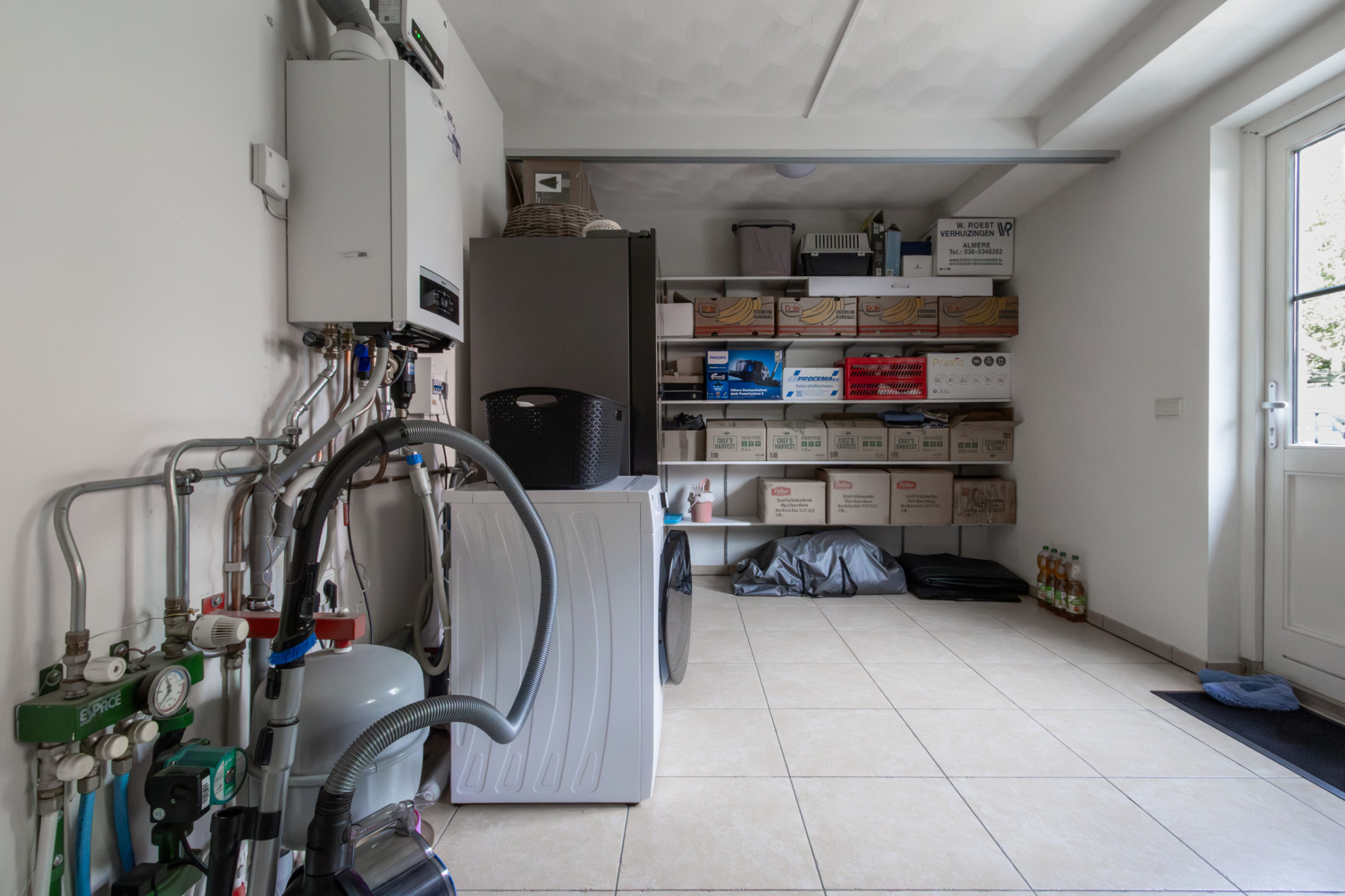 Direct naast de keuken bevindt zich de bijkeuken waar de witgoedaansluitingen zitten en een aparte bergruimte.