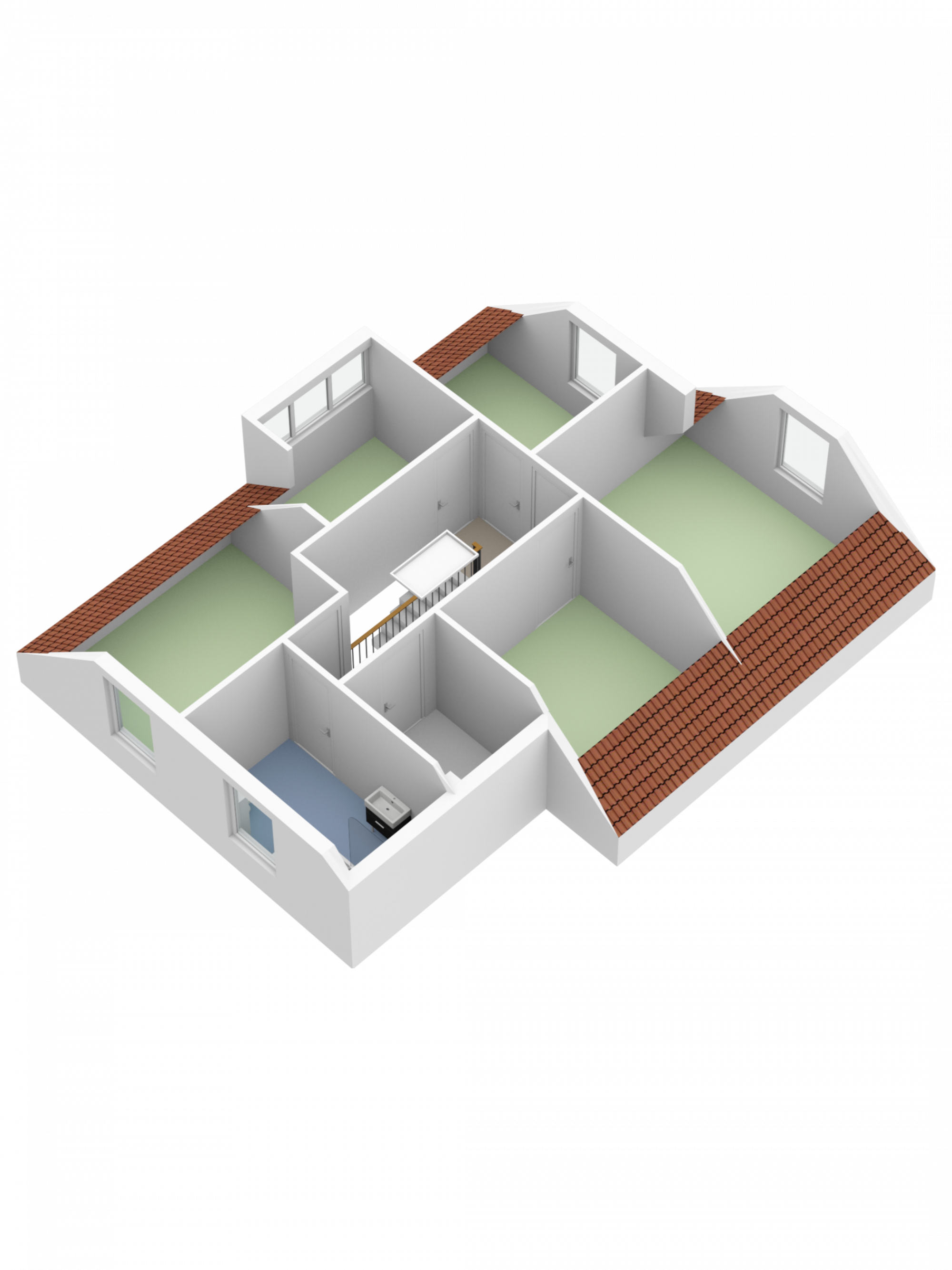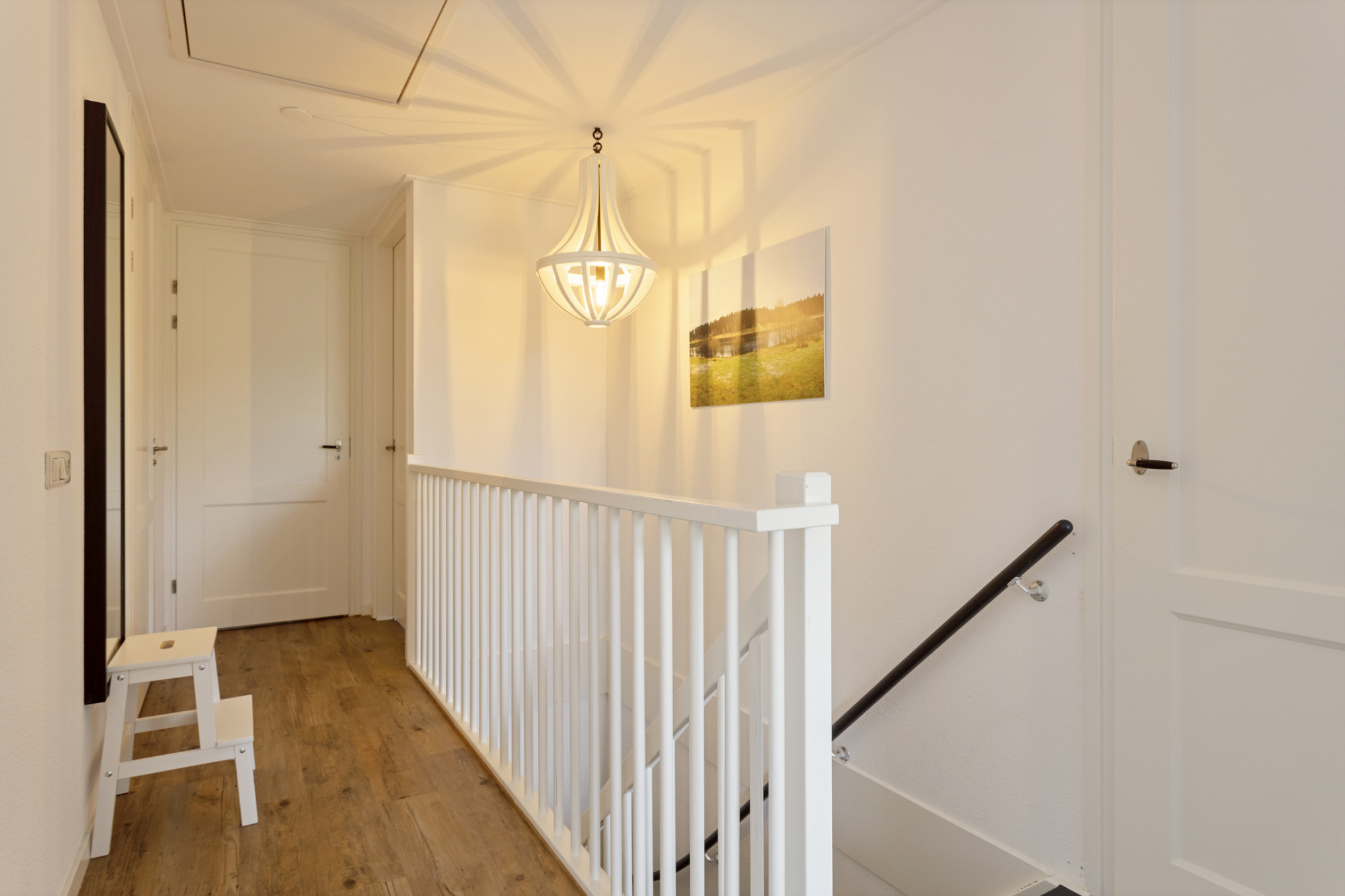De ruime overloop geeft toegang tot de badkamer en 5 slaapkamers. De badkamer is voorzien van een ligbad, badmeubel en 2de toilet. De separate wasruimte met witgoedaansluitingen kan tevens gebruikt worden als 3de badkamer. Alle slaapkamers zijn voorzien van rolluiken en horren.