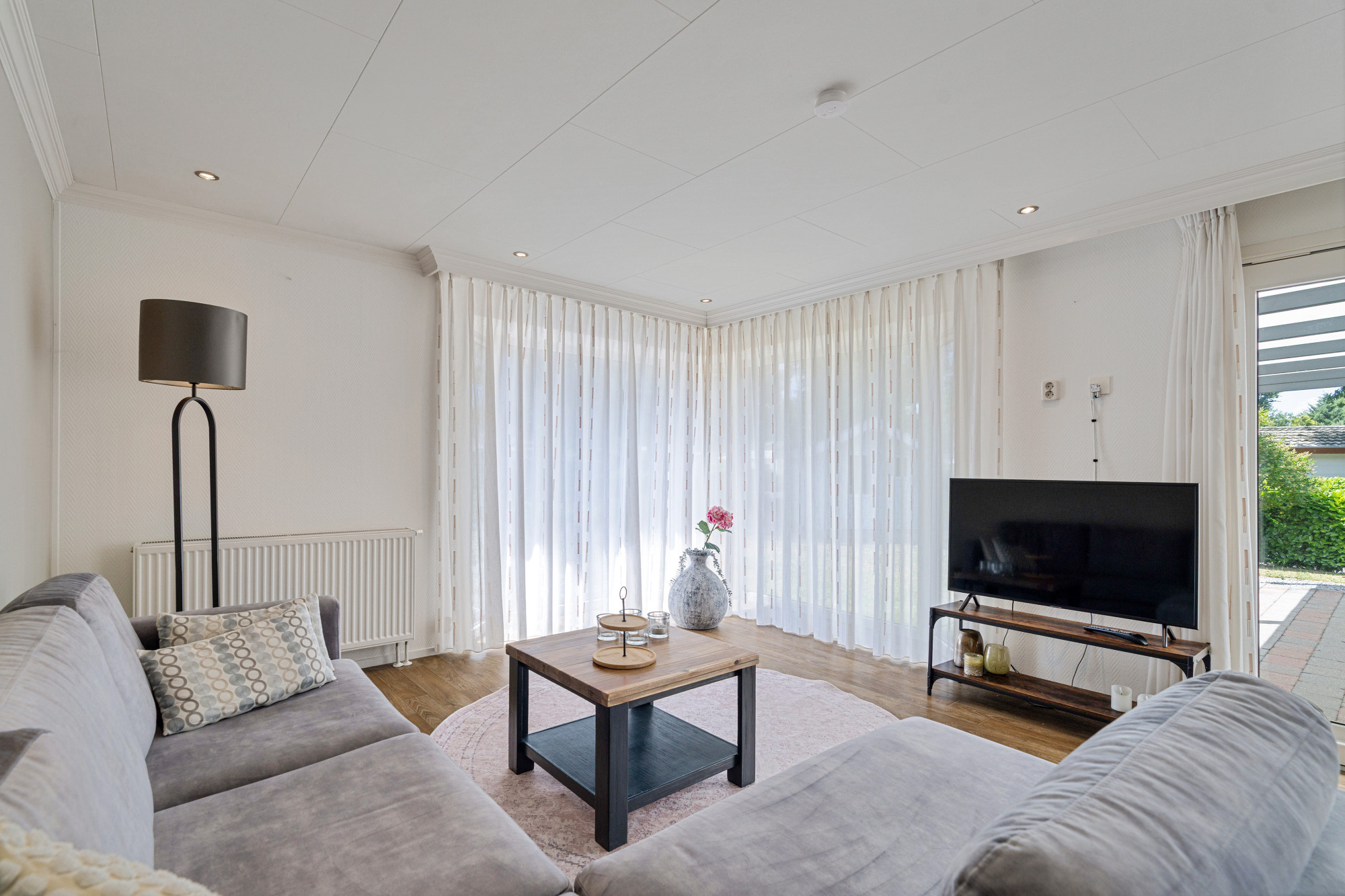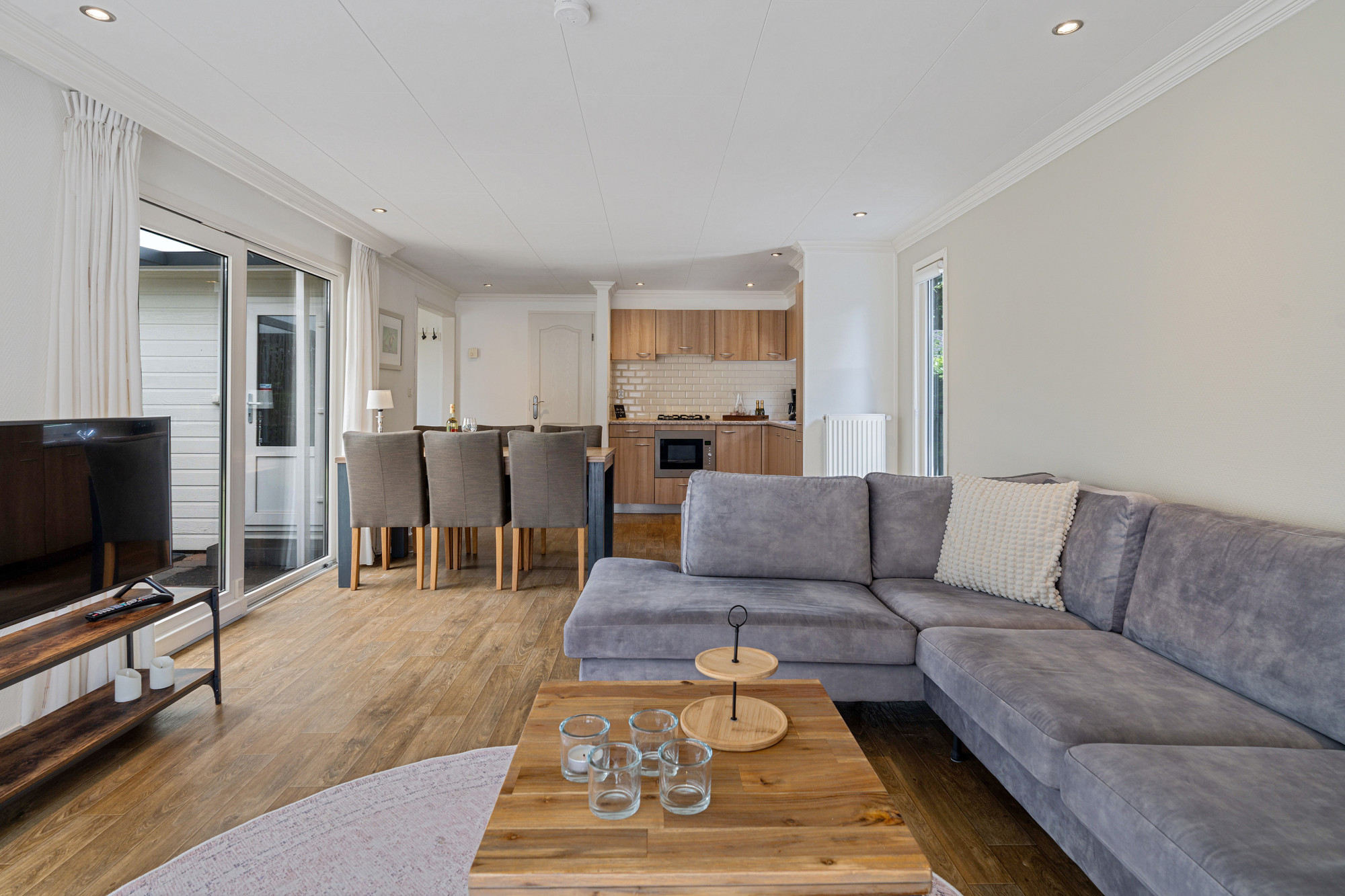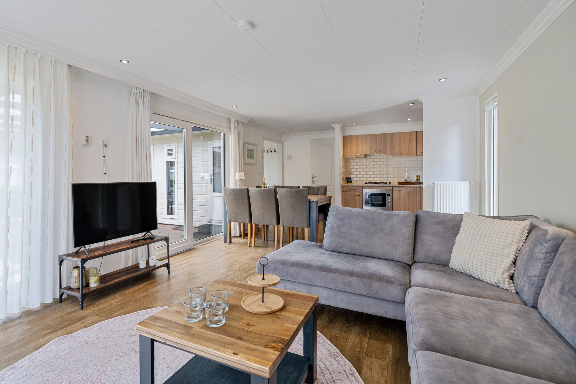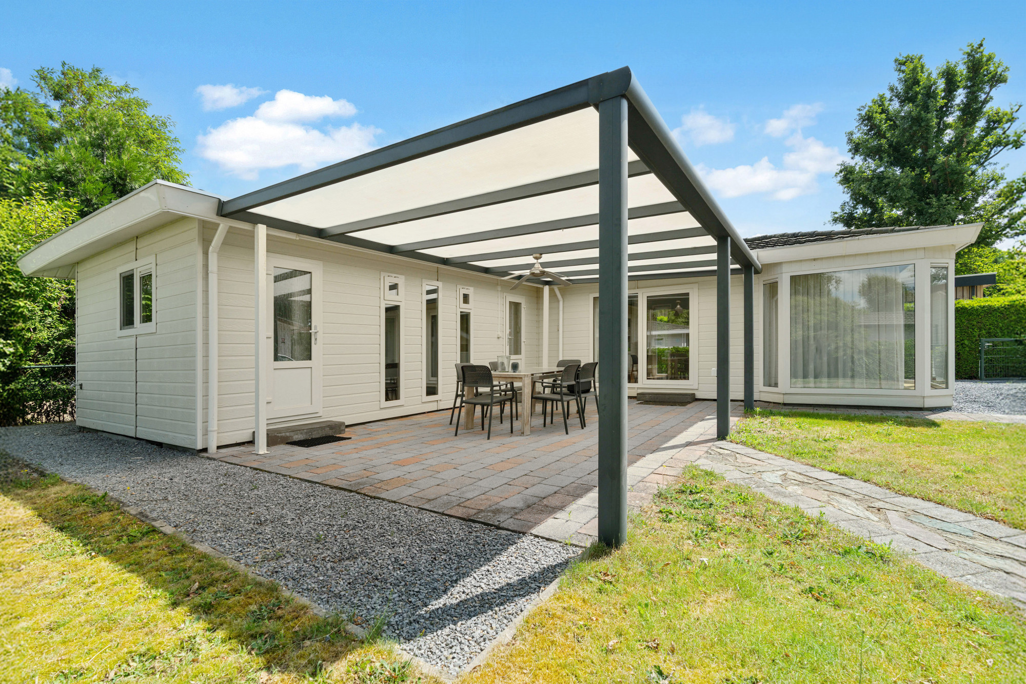 - Drie toegangsdeuren, waaronder een schuifpui naar de overkapping;