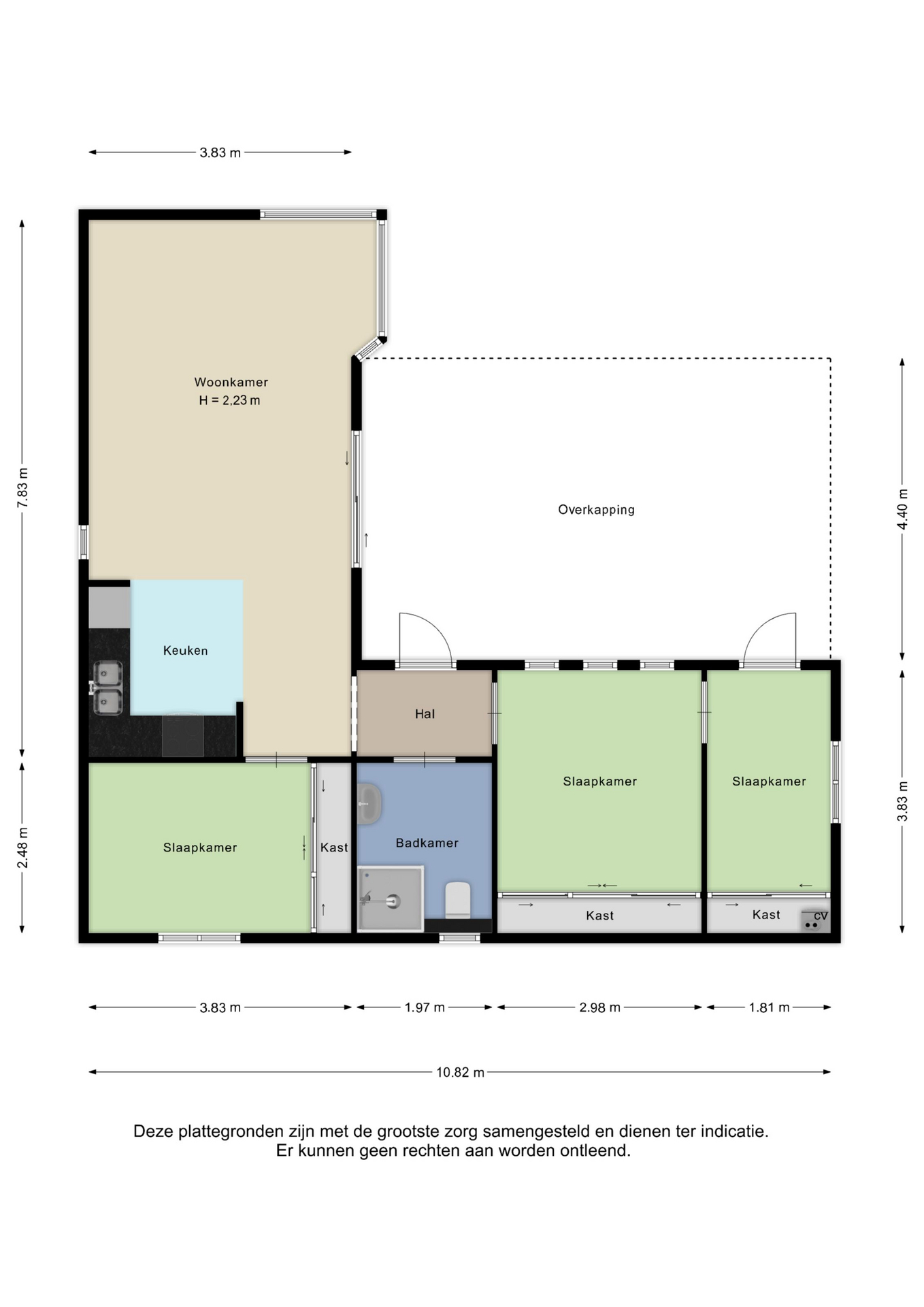 Alle door ons kantoor verstrekte informatie omtrent onroerende zaken, moet beschouwd worden als een uitnodiging om in onderhandeling te treden, en is geheel vrijblijvend! Alle vermelde maten en afmetingen zijn slechts bij benadering. Aan deze beperkte informatie kunnen geen rechten worden ontleend. Indien in enige documentatie of op enige website informatie staat die niet overeen komt met de werkelijkheid, dan geldt de feitelijke situatie waarin de woning zich bevindt, zoals koper deze tijdens de bezichtiging heeft kunnen waarnemen, en wordt de woning in deze feitelijke situatie/staat verkocht. Een (eventueel) bijgevoegde plattegrond dient uitsluitend als globale indicatie/visualisatie. Hieraan kunnen uitdrukkelijk geen rechten worden ontleend.