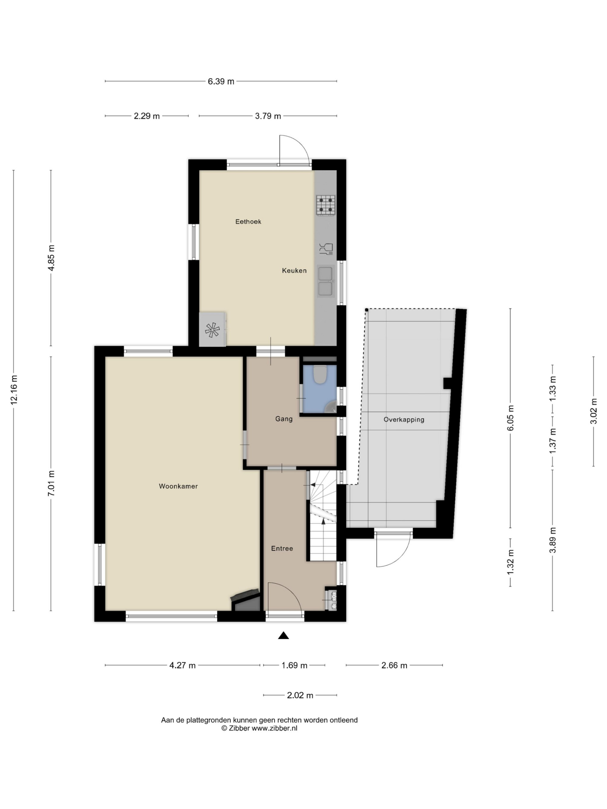 Kelder: bergkelder (7m2). Begane grond: entree, toilet met fonteintje, meterkast, woonkamer (30m2); gesloten keuken (18m2) voorzien van gaskookplaat, afzuigkap, vaatwasser en oven.