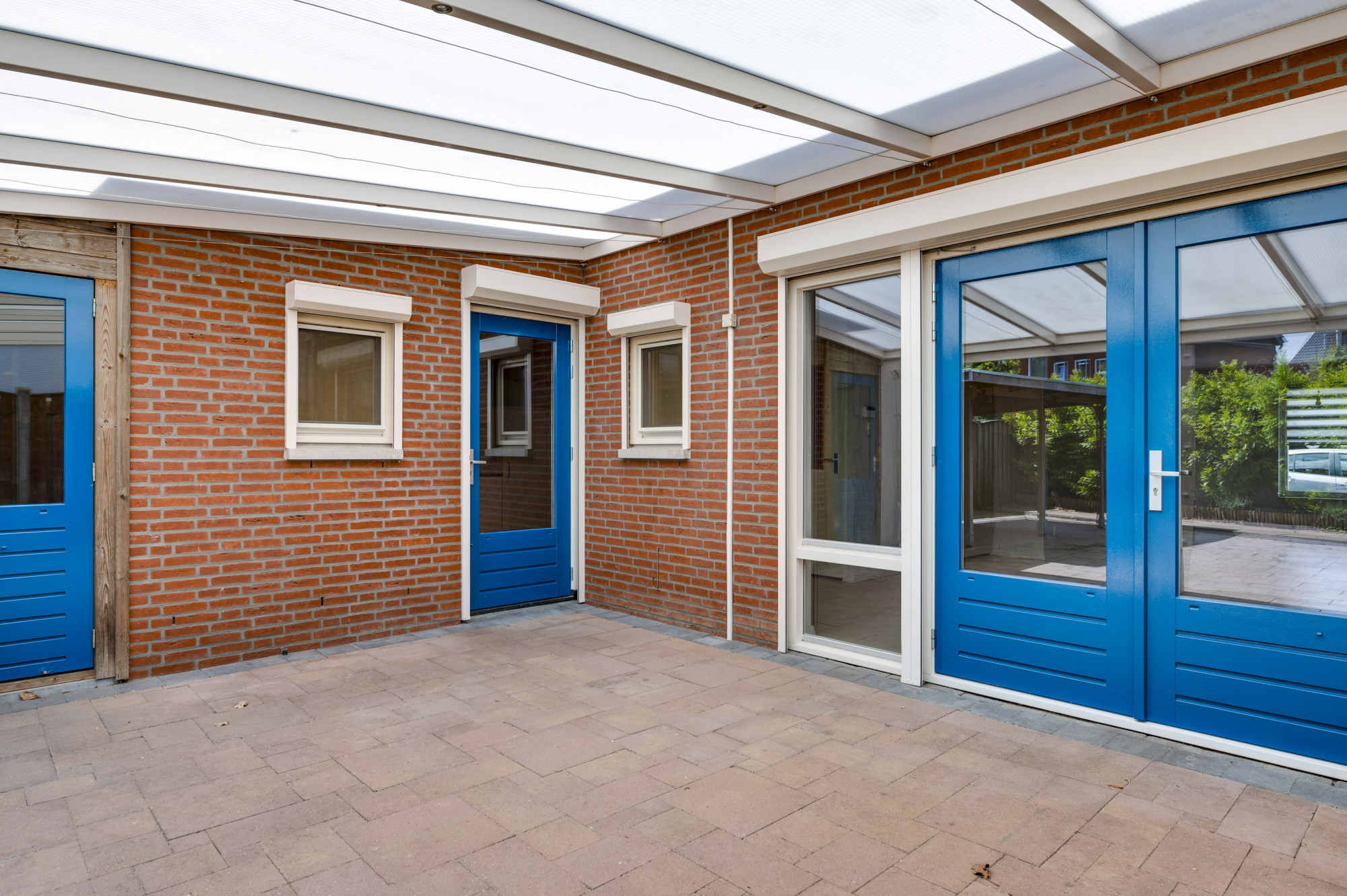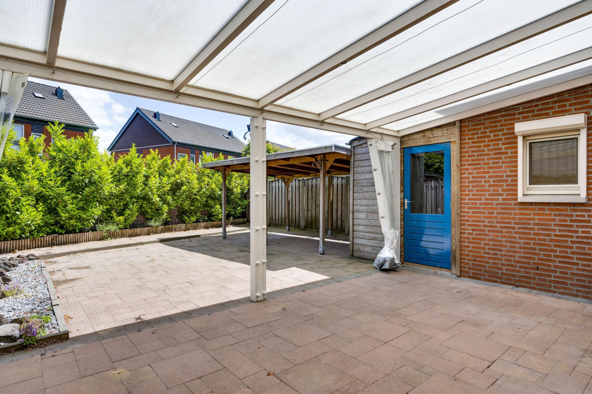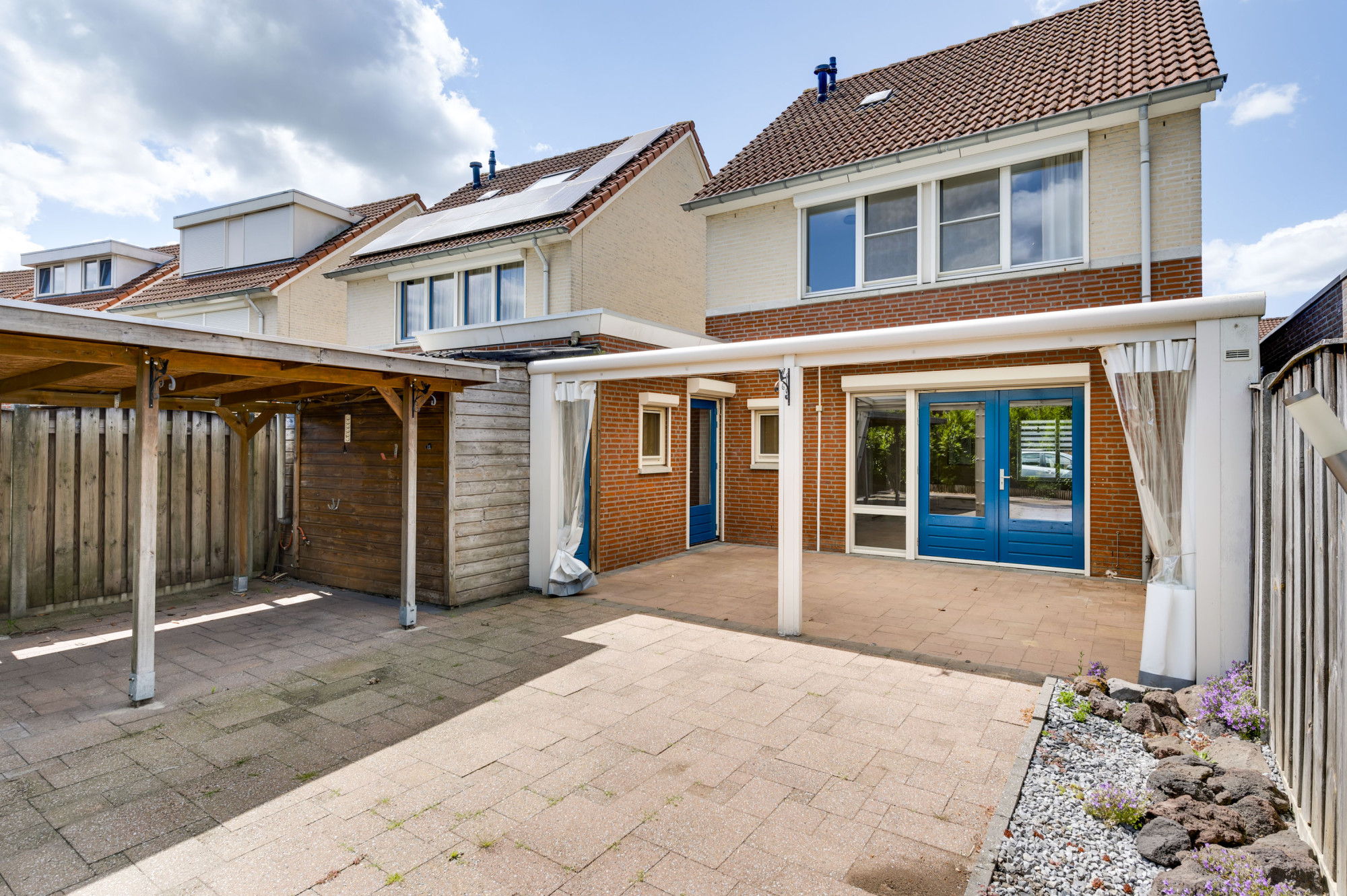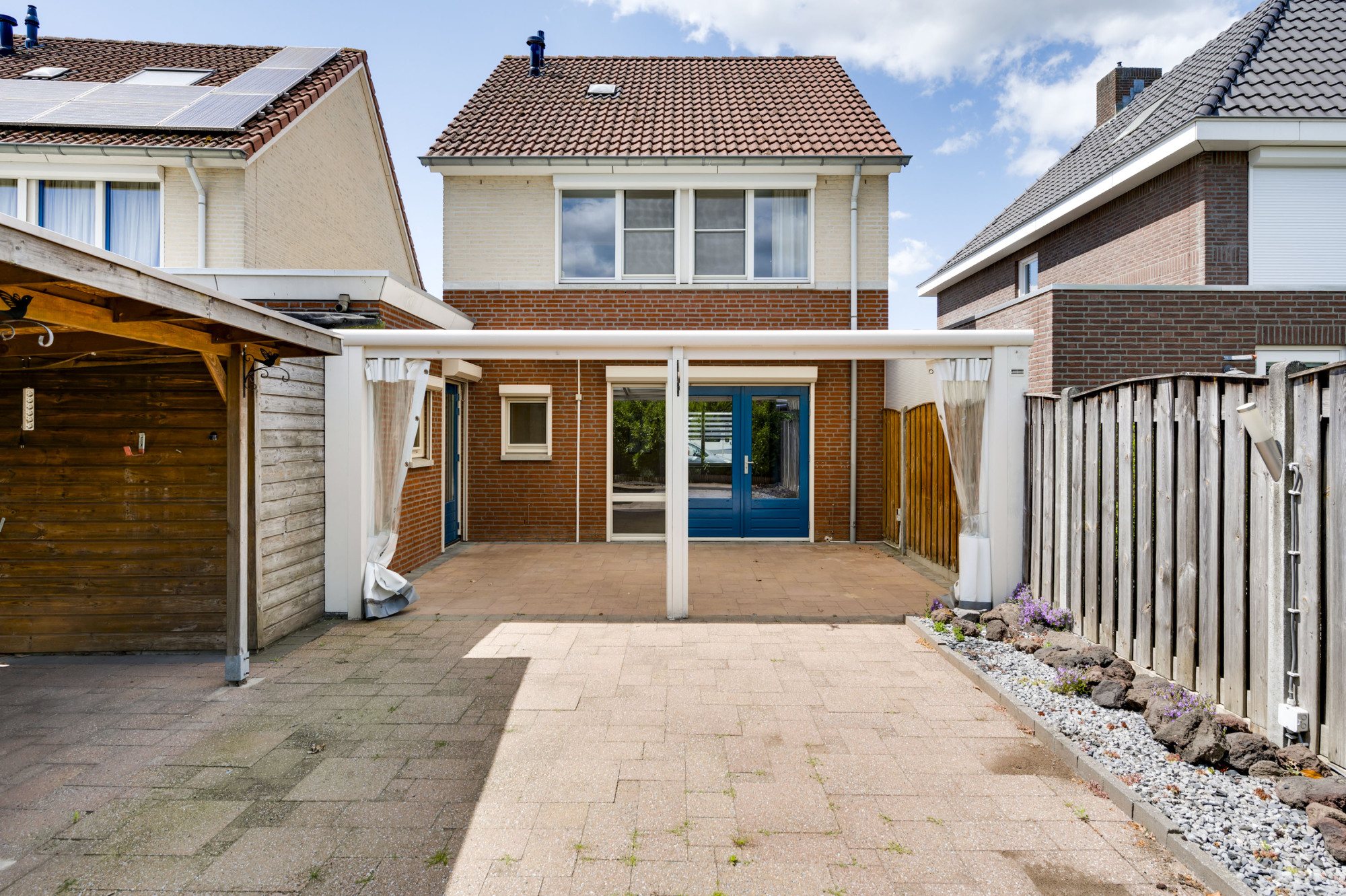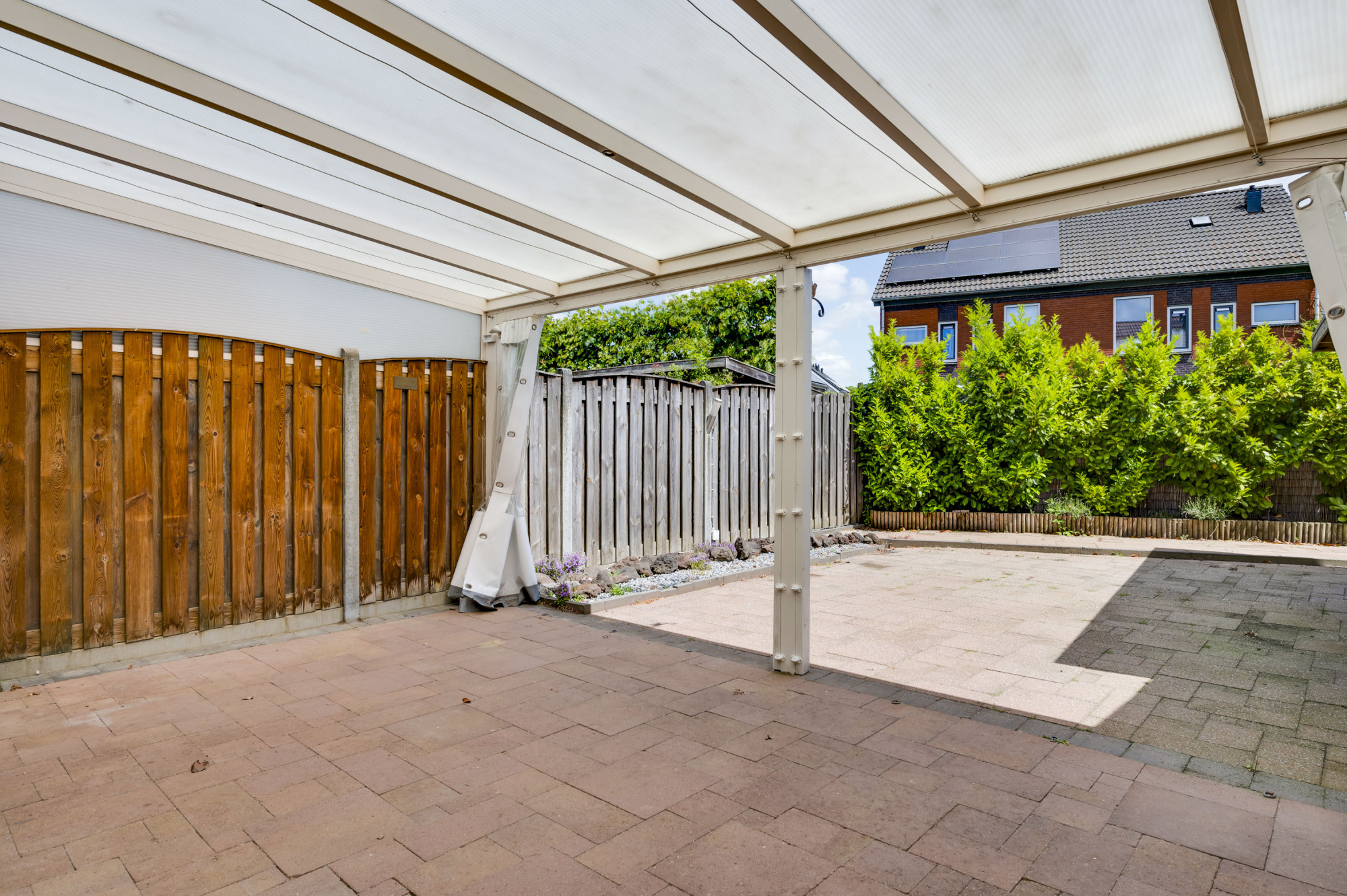 De voortuin is voorzien van siergrind en een ruime eigen oprit. De onderhoudsvriendelijke achtertuin is voorzien van heerlijk zonneterras met een tweetal overkappingen (waarvan 1 afsluitbaar), een houten berging en diverse borders.