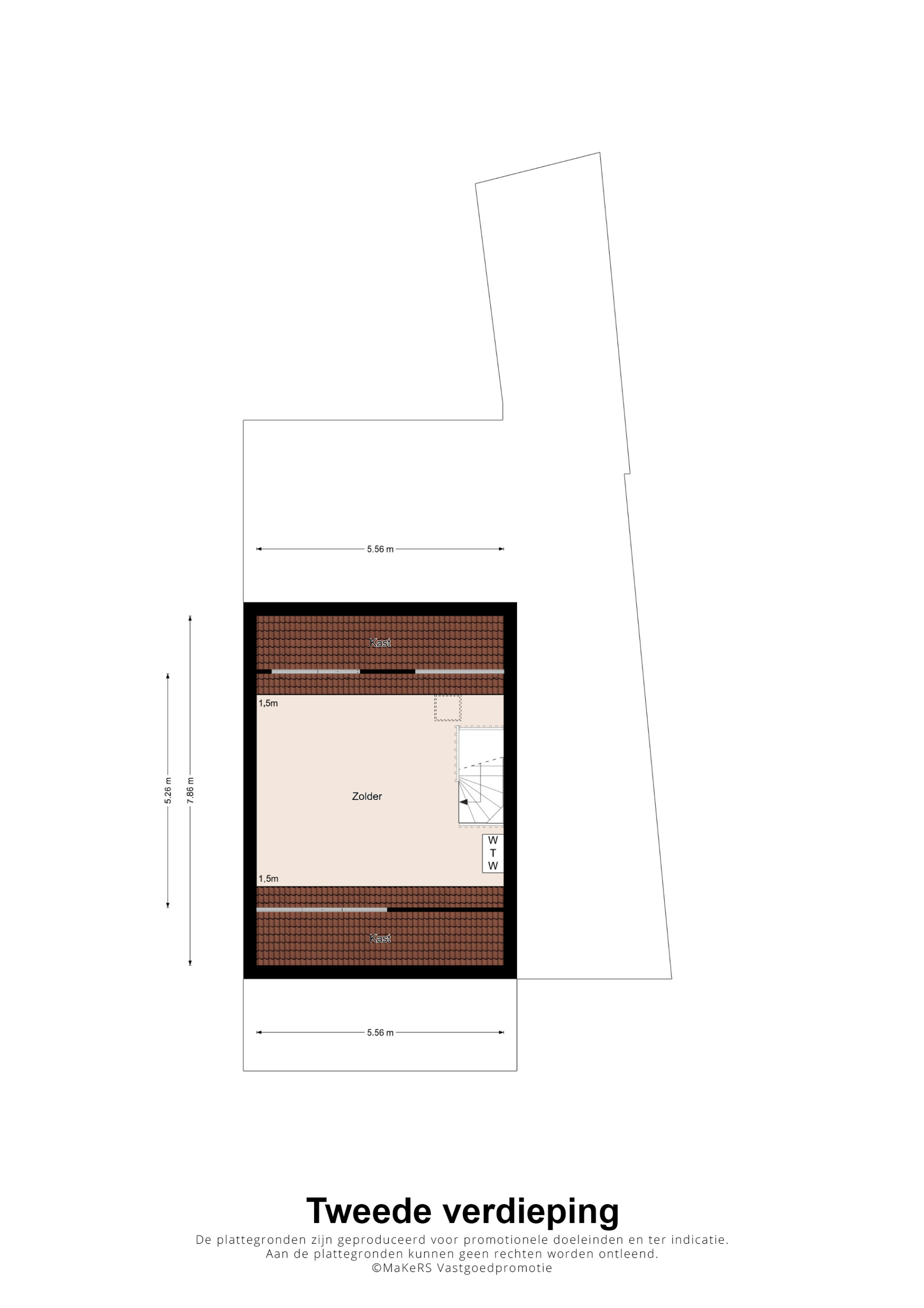 Via een vaste trap is de vierde zeer ruime slaap-/werkkamer toegankelijk. Deze is voorzien van vloerbedekking en een dakraam zorgt voor natuurlijke lichtinval. Deze ruimte is zo ruim dat splitsing in 2 kamers ook mogelijk is. Tevens bevindt zich op deze verdieping voldoende bergruimte en de aansluitingen voor het witgoed, alsmede de unit voor de mechanische ventilatie met warmte terug win systeem (WTW)
