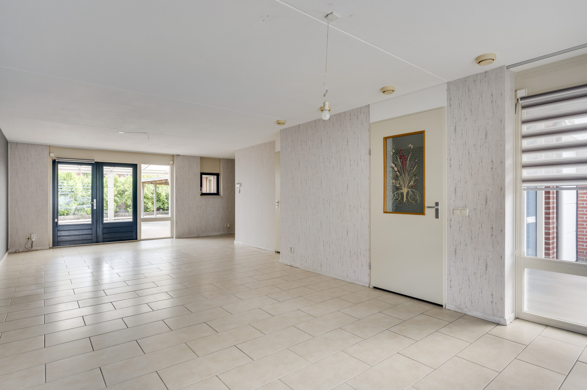 Via de overdekte entree is de hal toegankelijk. De hal met meterkast, toiletruimte met zwevend toilet en fonteintje geeft toegang tot de ruime woonkamer met een zit- en eetgedeelte met een trapkast. Middels dubbele tuindeuren is er toegang tot het heerlijke overdekte terras en de tuin. De woonkamer staat verder in open verbinding met de ruime woonkeuken die voldoende ruimte biedt voor een eettafel en voorzien is van een mooie combinatie met een granieten blad en inbouwapparatuur, waaronder een 5-pits gaskookplaat, afzuigkap, combi oven, koelkast, vriezer en een vaatwasser. Ook vanuit de woonkeuken is de tuin met overkapping toegankelijk. De keuken biedt tevens heel praktisch ook rechtstreeks inpandig toegang tot de garage/hobbyruimte die voor diverse doeleinden geschikt is. Deze ruimte beschikt over water, elektra, verwarming en middels een elektrische sectionaalpoort is de voorgelegen oprit bereikbaar.