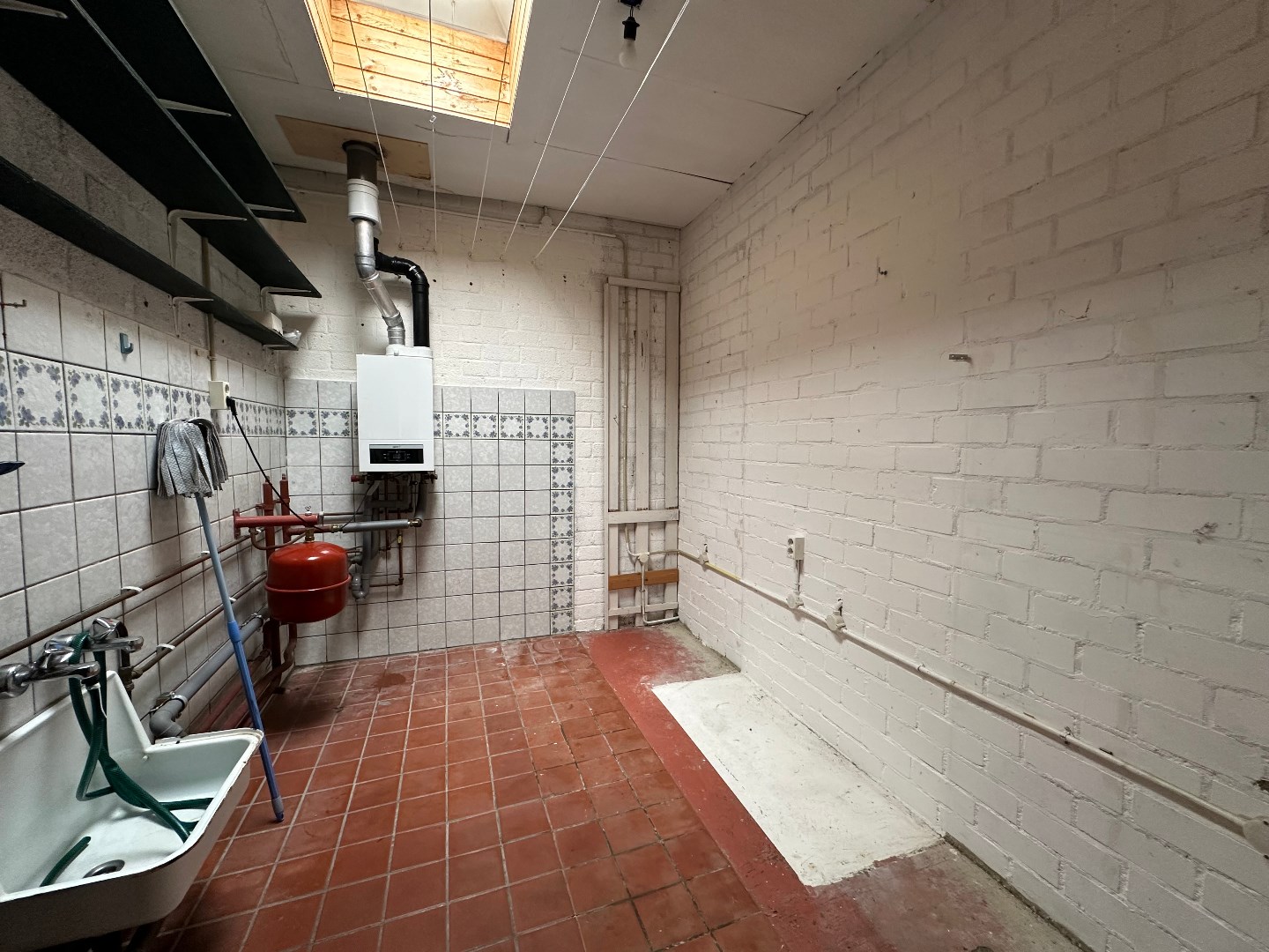 Indeling: ruime entree met tegelvloer, meterkast en bergkast. Toilet met fonteintje. L-vormige woonkamer met tegelvloer, openhaard en een deur die toegang biedt tot de tuin. Aparte eenvoudige keuken met apparatuur zoals: afzuigkap en 4-pits gaskookplaat. 3 slaapkamers (9m2, 7m2, 15m2). Badkamer met douche, wastafel en toilet. Aparte kantoorruimte/4de slaapkamer. Technische ruimte met Cv-ketel, wasbak en ruimte voor het witgoed.
