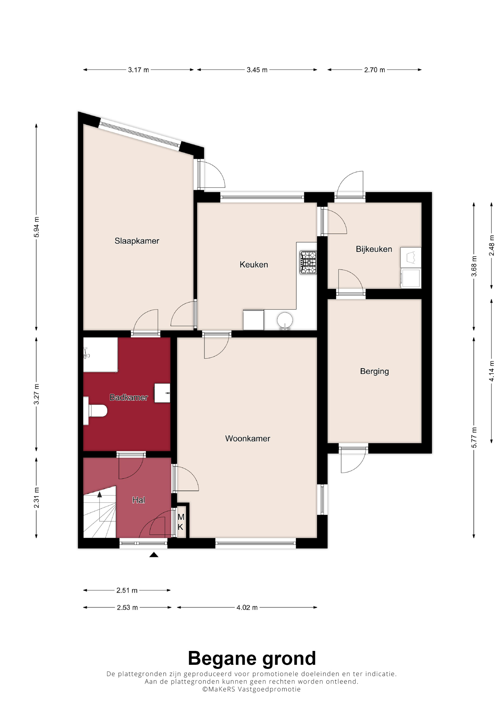 Via de entree komt u in de hal met meterkast, treft u de trapopgang naar de eerste verdieping en heeft u toegang tot de woonkamer en badkamer. Deze gemoderniseerde badkamer (circa 2016/2017) is ruim opgezet en voorzien van een douche, toilet en wastafelmeubel. Vanuit de badkamer is de gelijkvloerse slaapkamer bereikbaar. De woonkamer is heerlijk licht dankzij raampartijen aan twee zijden en is afgewerkt met een fraaie laminaatvloer. Aansluitend bevindt zich de woonkeuken, uitgerust met een hoekopstelling inclusief inbouwapparatuur: gasfornuis (circa 2016/2017), afzuigkap, koelkast (circa 2021), oven (circa 2016/2017) en vaatwasser (circa 2020/2021). Een airco in de keuken zorgt voor extra comfort. Vanuit de keuken heeft u toegang tot zowel de bijkeuken als de gelijkvloerse slaapkamer. De slaapkamer is voorzien van een laminaatvloer en beschikt over een deur naar de badkamer en een loopdeur naar de tuin. De praktische bijkeuken biedt ruimte voor witgoedaansluitingen en heeft een directe toegang tot zowel de tuin als de inpandig bereikbare berging. Via de berging bereikt u de voorgelegen oprit.