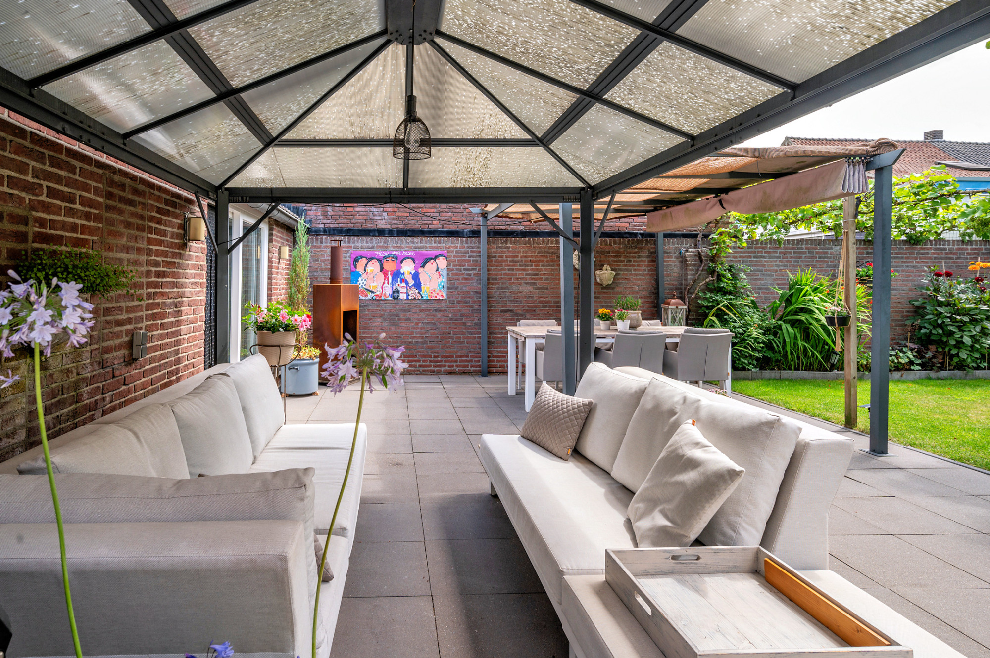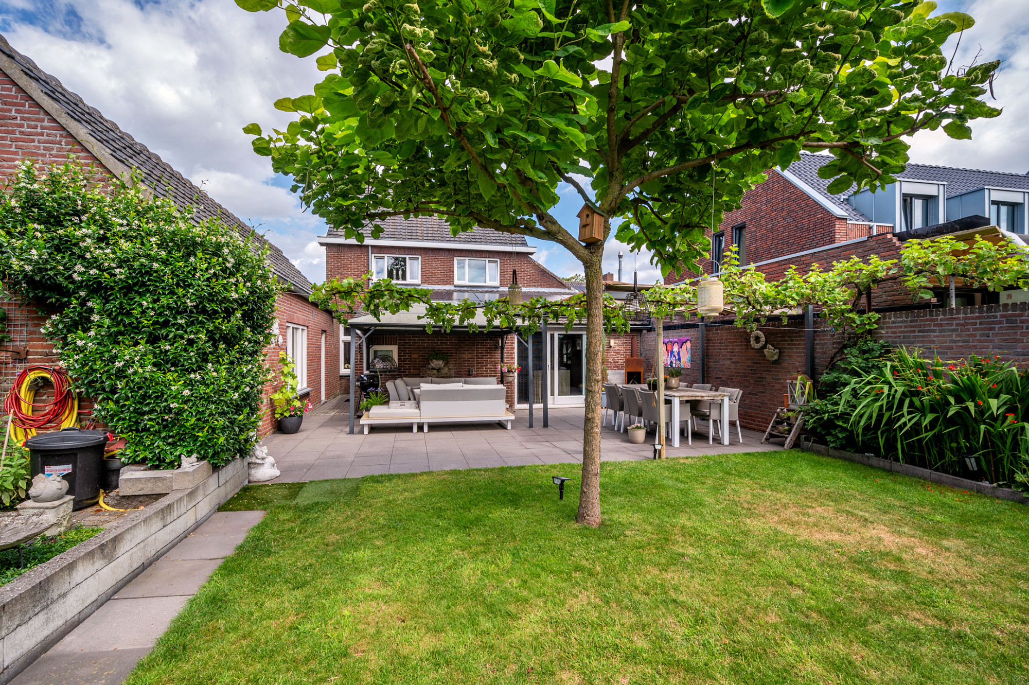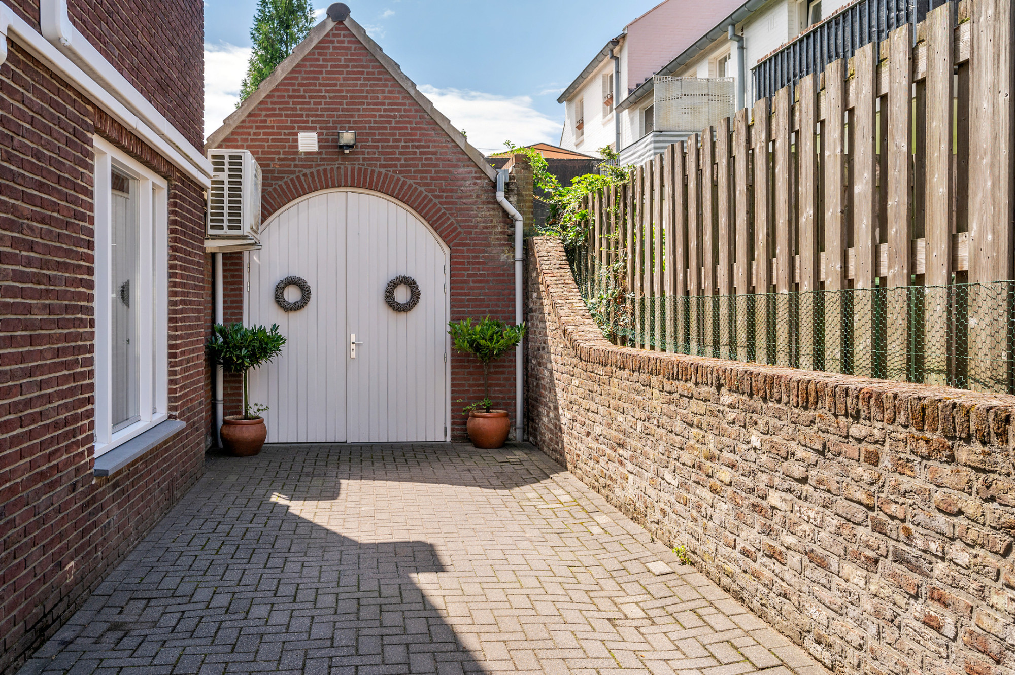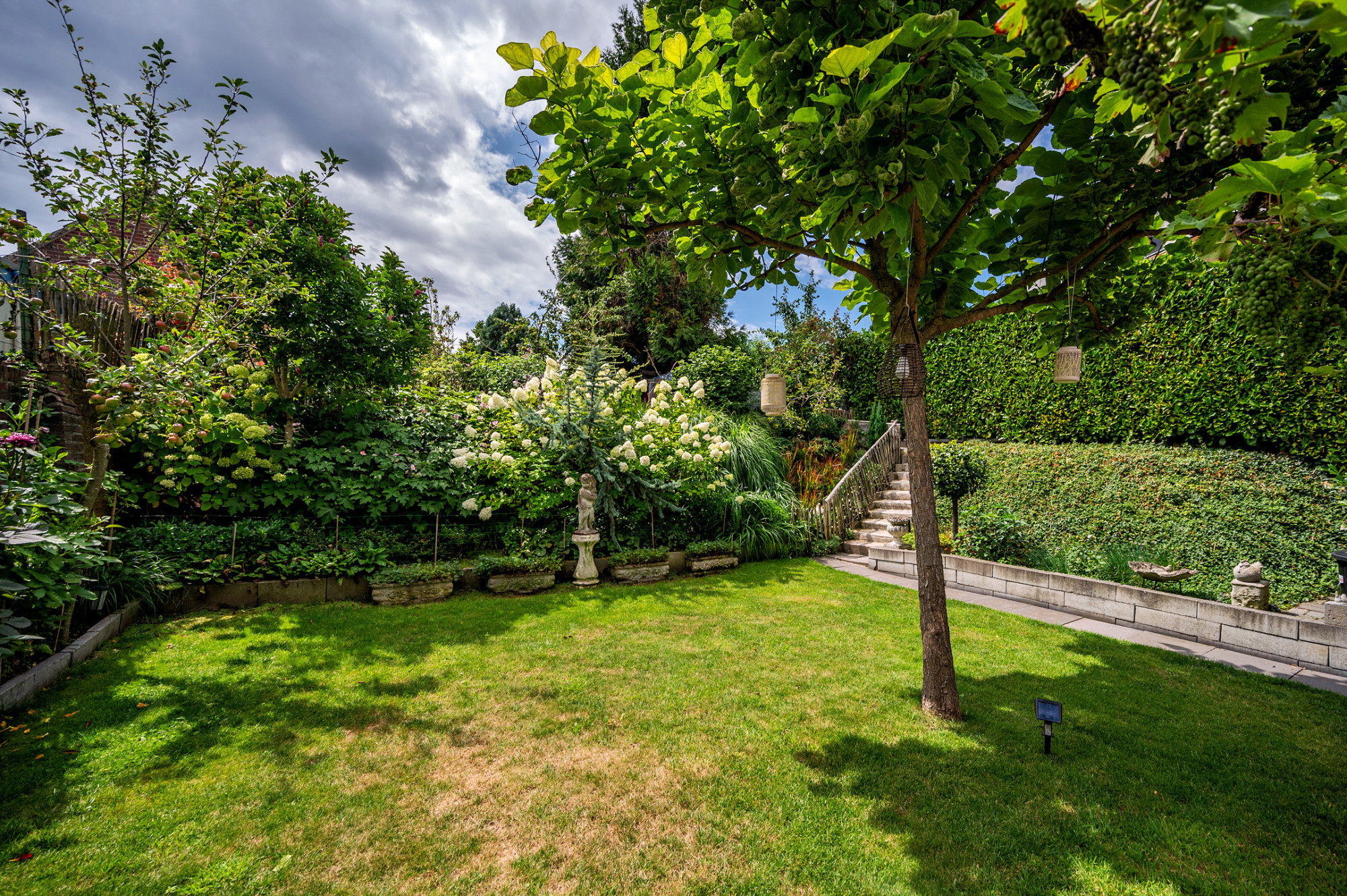 Er is een riante, diepe achtertuin aanwezig, die smaakvol is aangelegd met een ruim terras, gazon en groene aanplant, waardoor er een fijne plek is ontstaan om te genieten van de buitenlucht. Verhoogd is heel verrassend nog een 2e stuk tuin gelegen met groen en een kippenrennetje. Er is verder ook nog een klein sfeervol zijtuintje aanwezig. Het vrijstaande bijgebouw, momenteel in gebruik als garage/hobbyruimte, is voorzien van dubbele houten poorten en een loopdeur en biedt volop mogelijkheden voor een andere invulling, zoals een atelier, kantoor of andere doeleinden. Dankzij de eigen ruime oprit is parkeren op eigen terrein altijd mogelijk voor meer auto's.