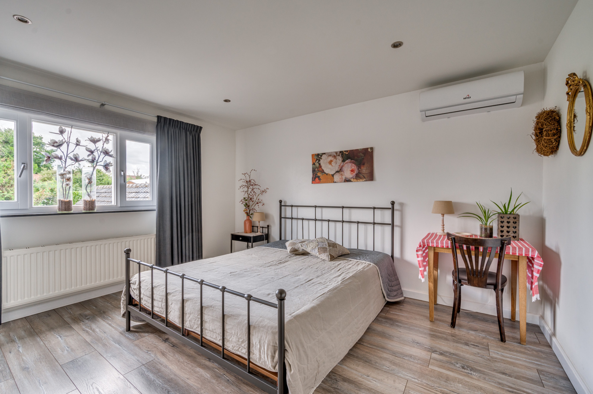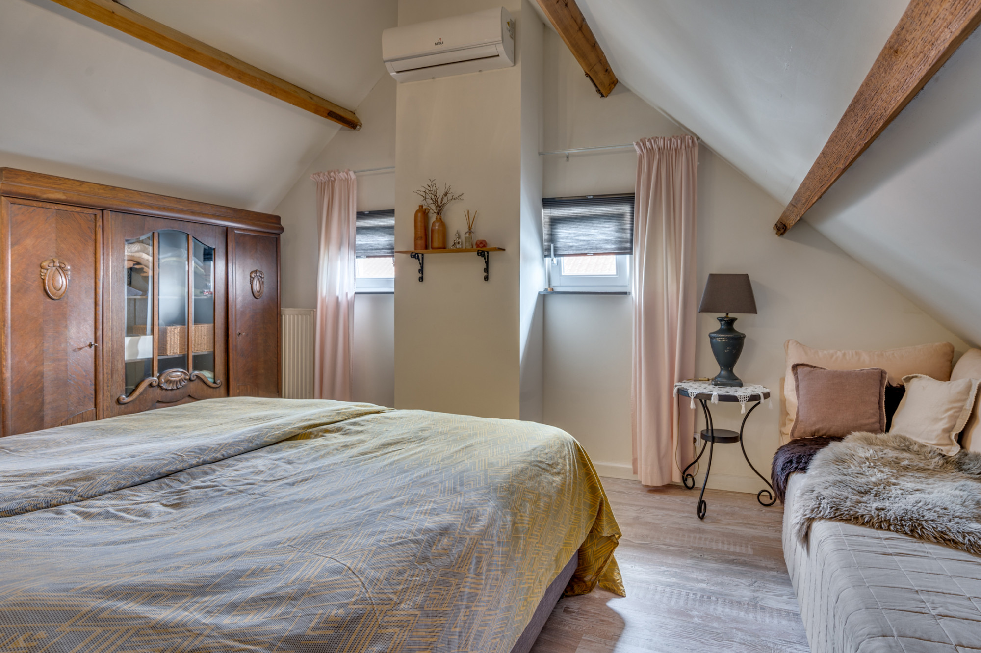 Via de vaste trap bereikt u de royale 4e extra kamer. Ook deze verdieping is afgewerkt met een laminaatvloer en, net als de overige slaapkamers, voorzien van airconditioning. Daarmee is het een volwaardige leefruimte, die zich uitstekend leent als extra slaapkamer of werkplek.