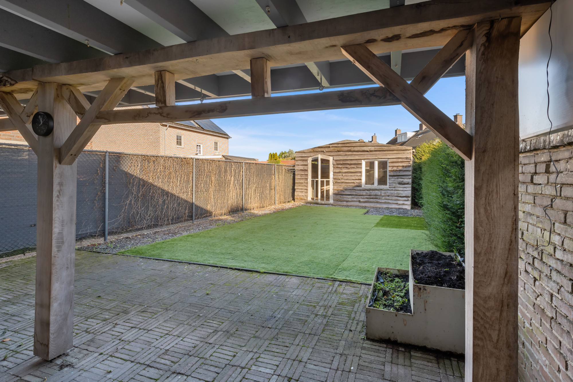 - Aanbouw en riant houten overkapping;