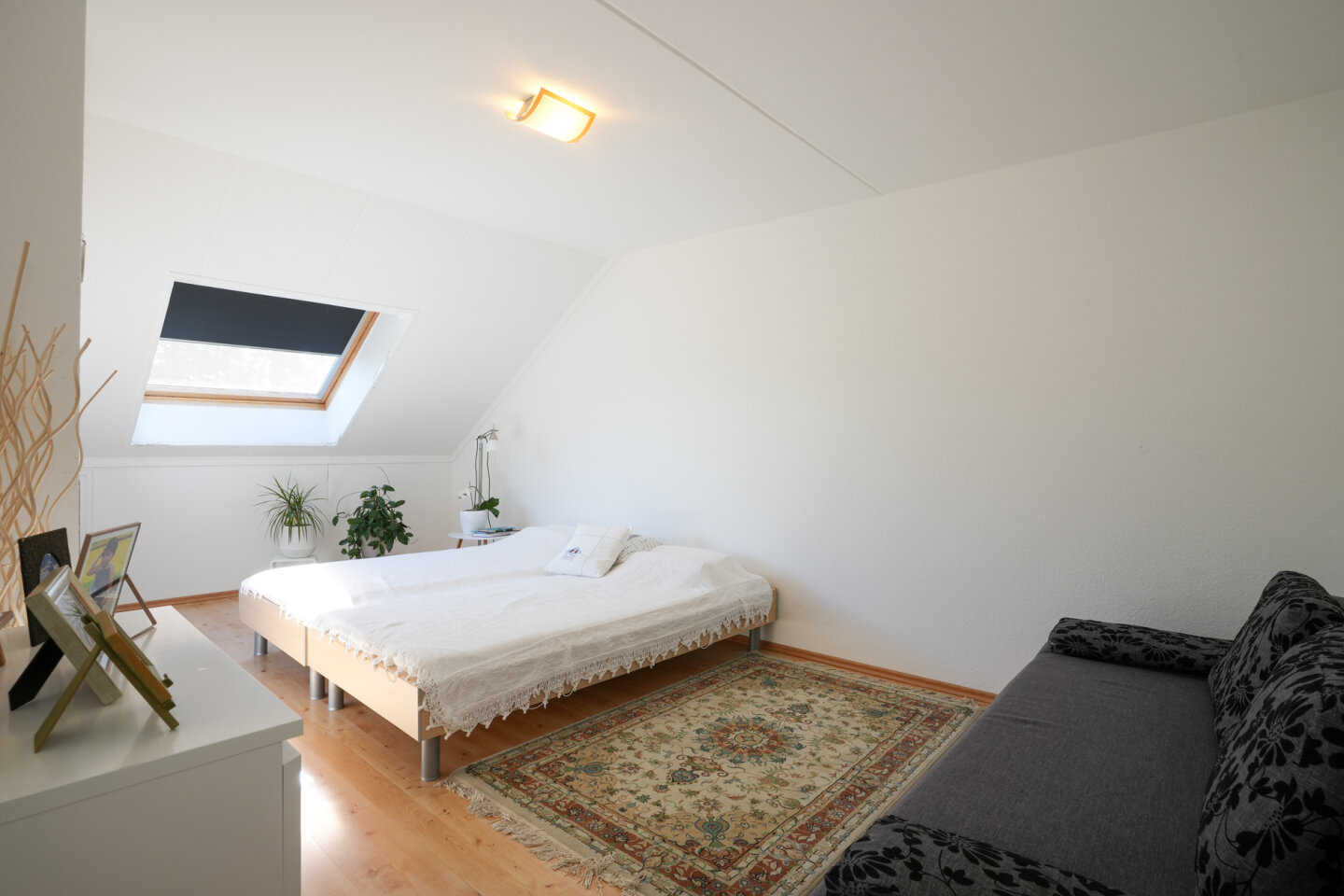 Slaapkamer I (14m2) gelegen aan de voorzijde en voorzien van een dakraam en een zijraam met prachtig uitzicht richting de Sneeuwberg.
