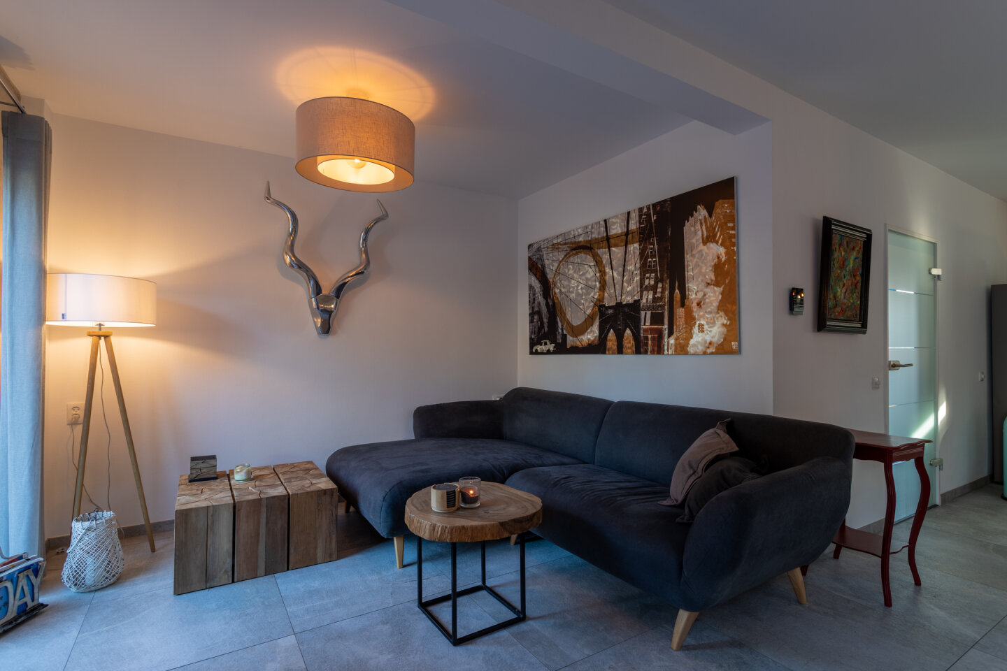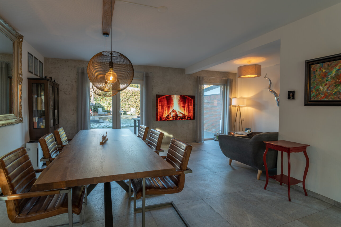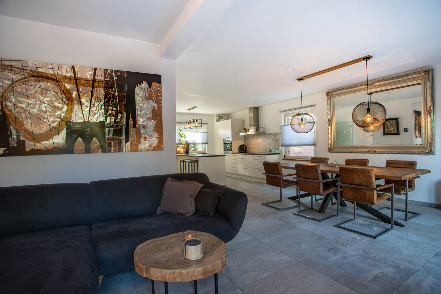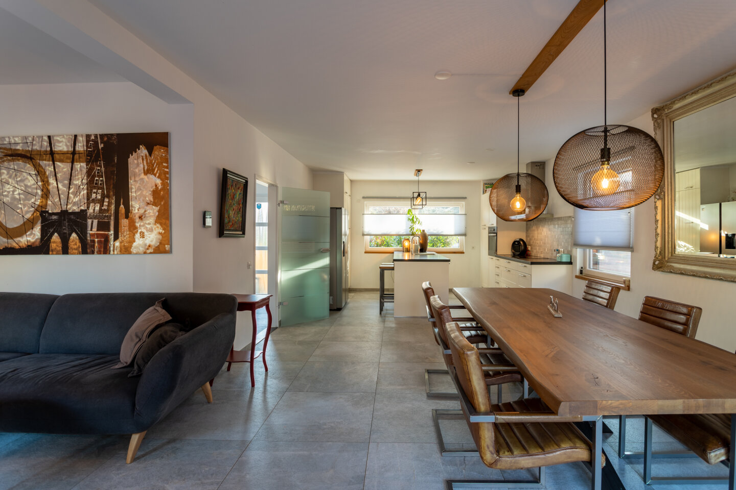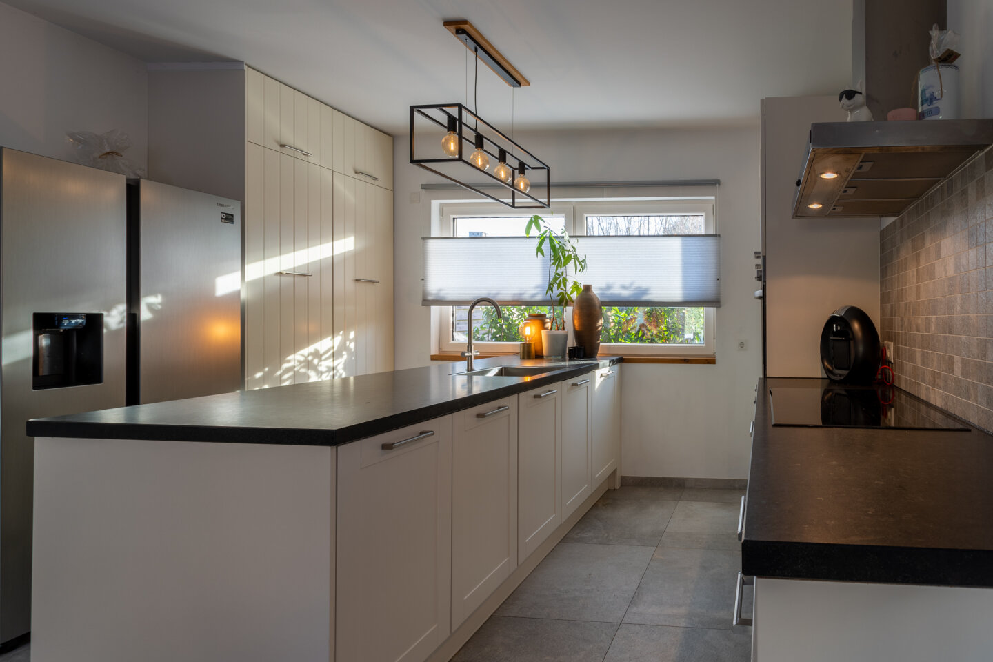 Ruime woonkamer met open keuken (totaal 46m2) en toegang naar de tuin. De moderne keuken (2017) is voorzien van een inductie kookplaat, koel-vriescombinatie, vaatwasser, combi-oven en afzuigkap. De gehele begane grond is voorzien van een moderne tegelvloer en vloerverwarming.