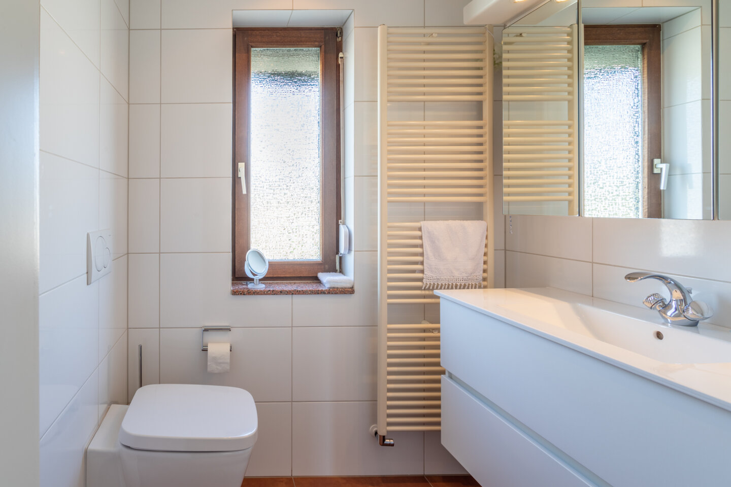 Een raam zorgt voor ventilatie en daglichttoetreding.