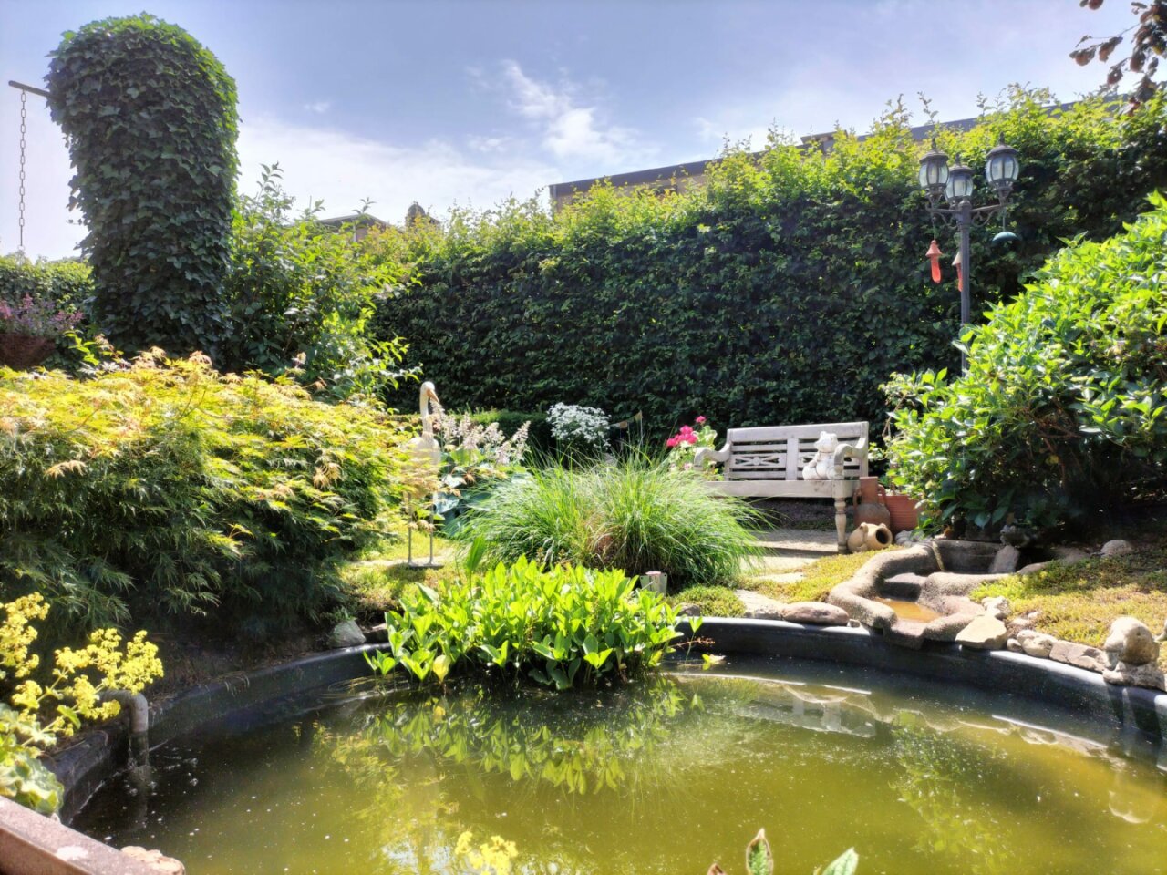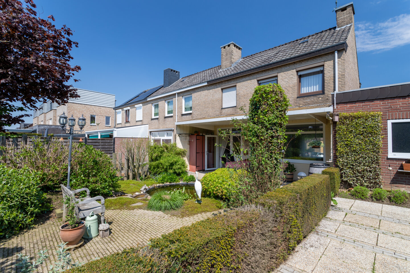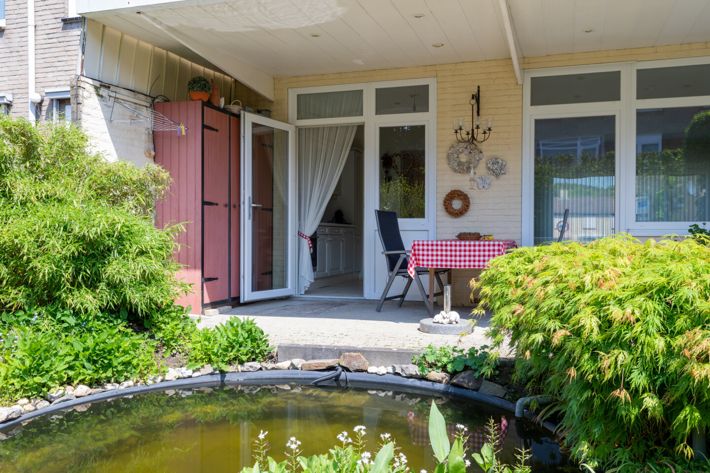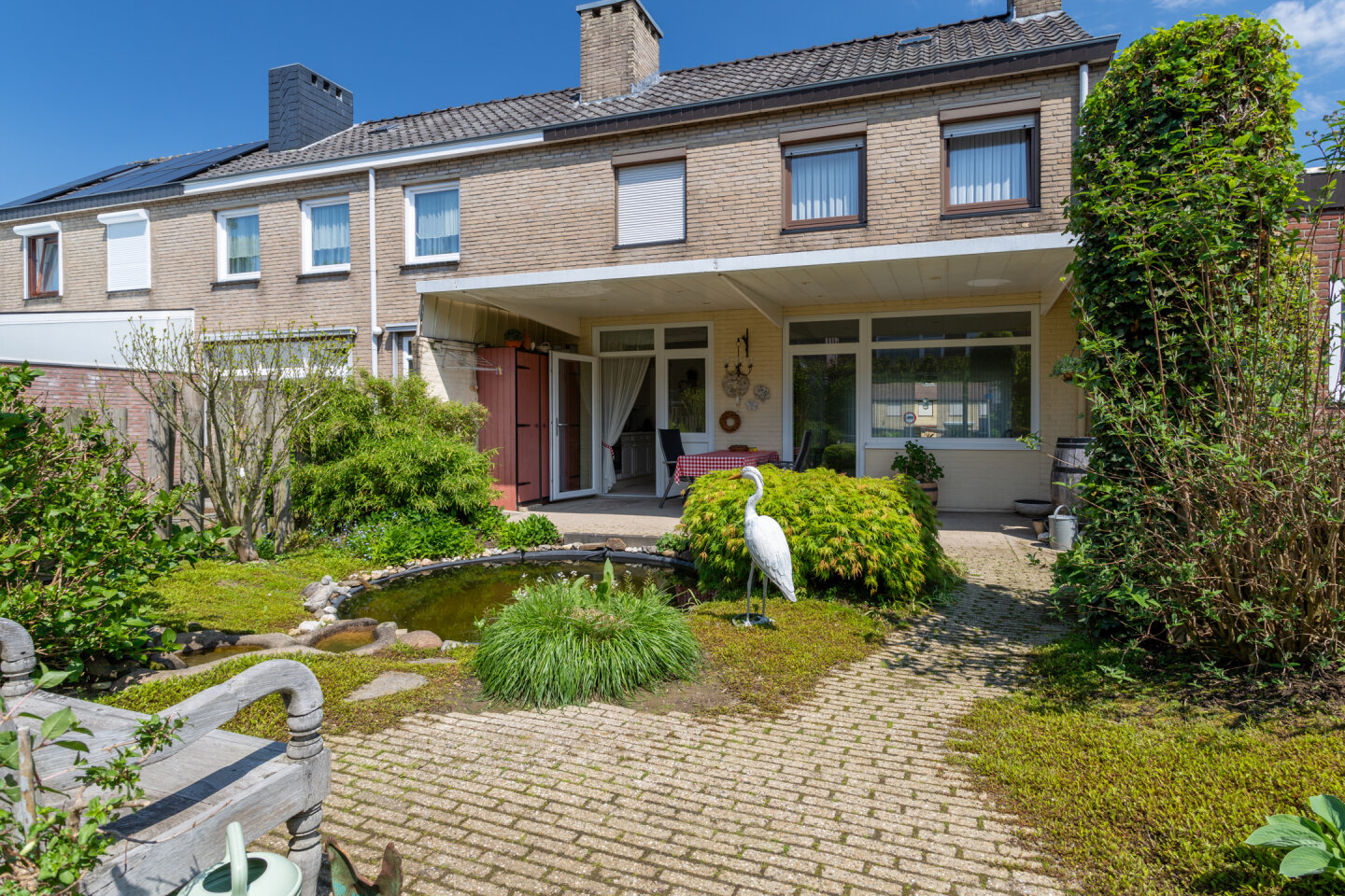 Fraai ontworpen en aangelegde achtertuin gelegen op het Zuiden! Ideaal om optimaal te genieten van de voor- en najaarszon. Ook de voortuin is zeer onderhoudsvriendelijk aangelegd.