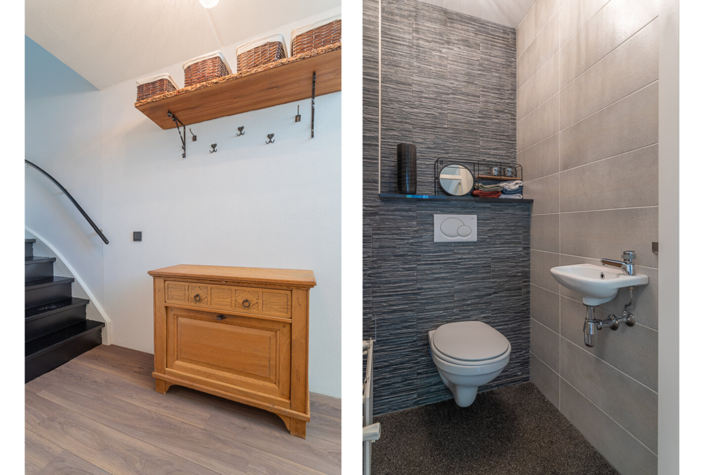Overloop met toegang naar drie slaapkamers van 12,9 m², 8,3 m² en 7,2 m². Aan de grootste slaapkamer zit een berging waarin de CV-ketel en WTW installatie geplaatst zijn. Badkamer (5 m²) met douche, toilet en wastafel.