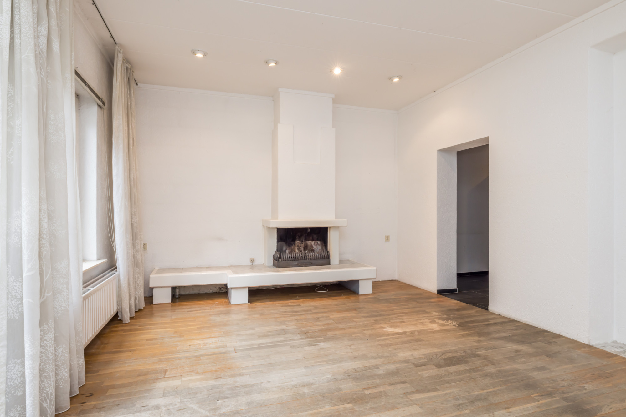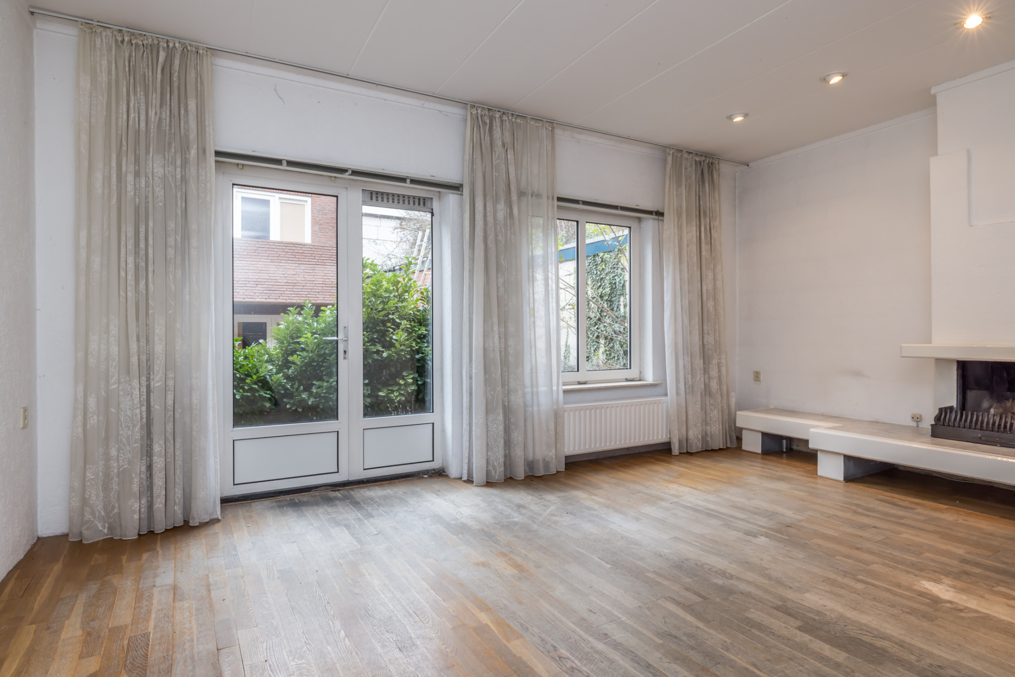 - woonkamer 5.70 x 4.06voorzien van parketvloer, open haard en openslaande deuren naar de tuin