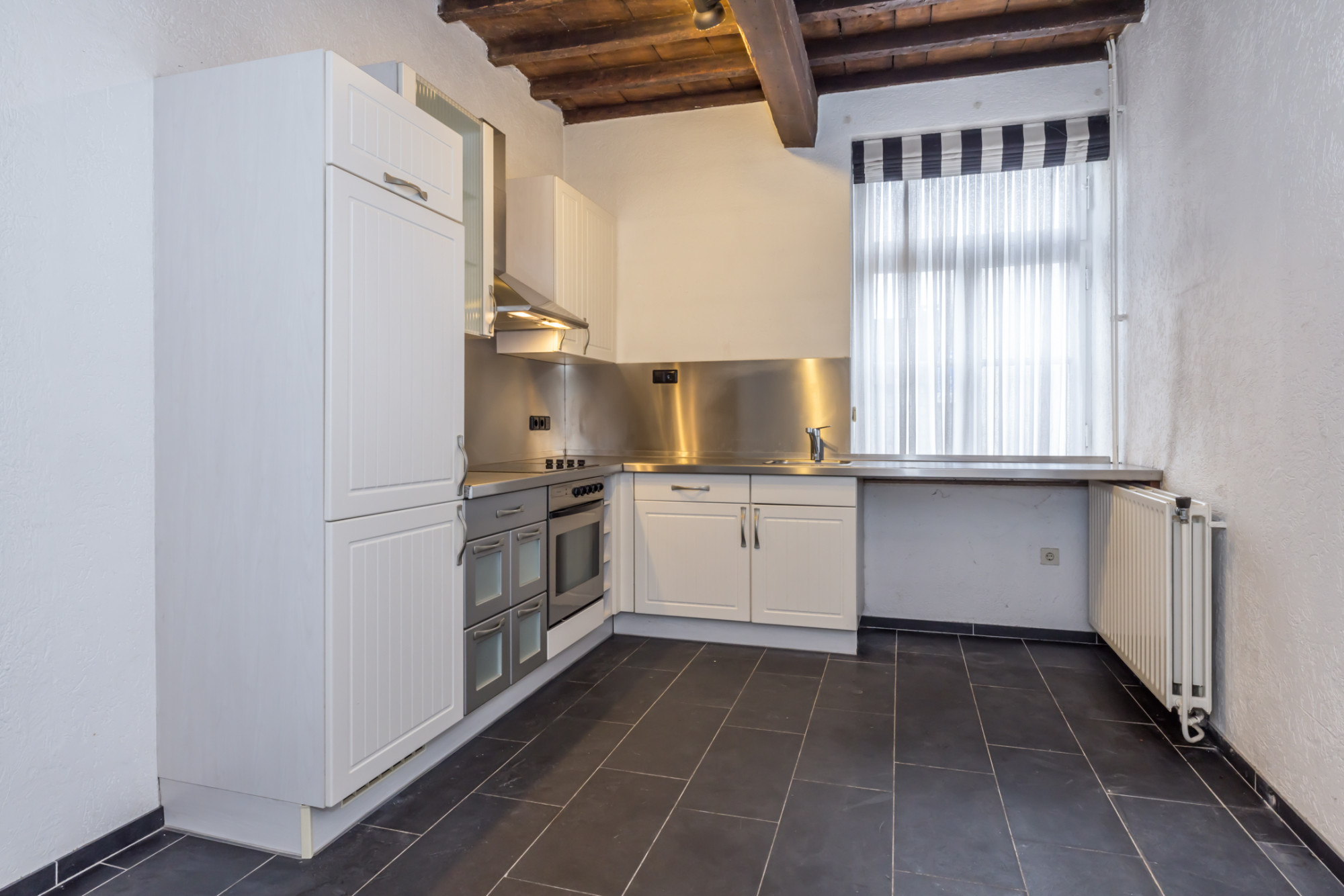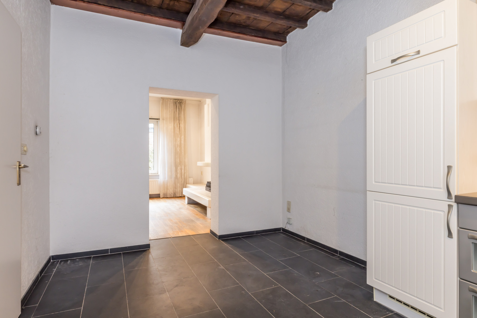De muren tussen de keuken en woonkamer kunnen eenvoudig worden verwijderd. Er is reeds een ijzeren balk aanwezig.