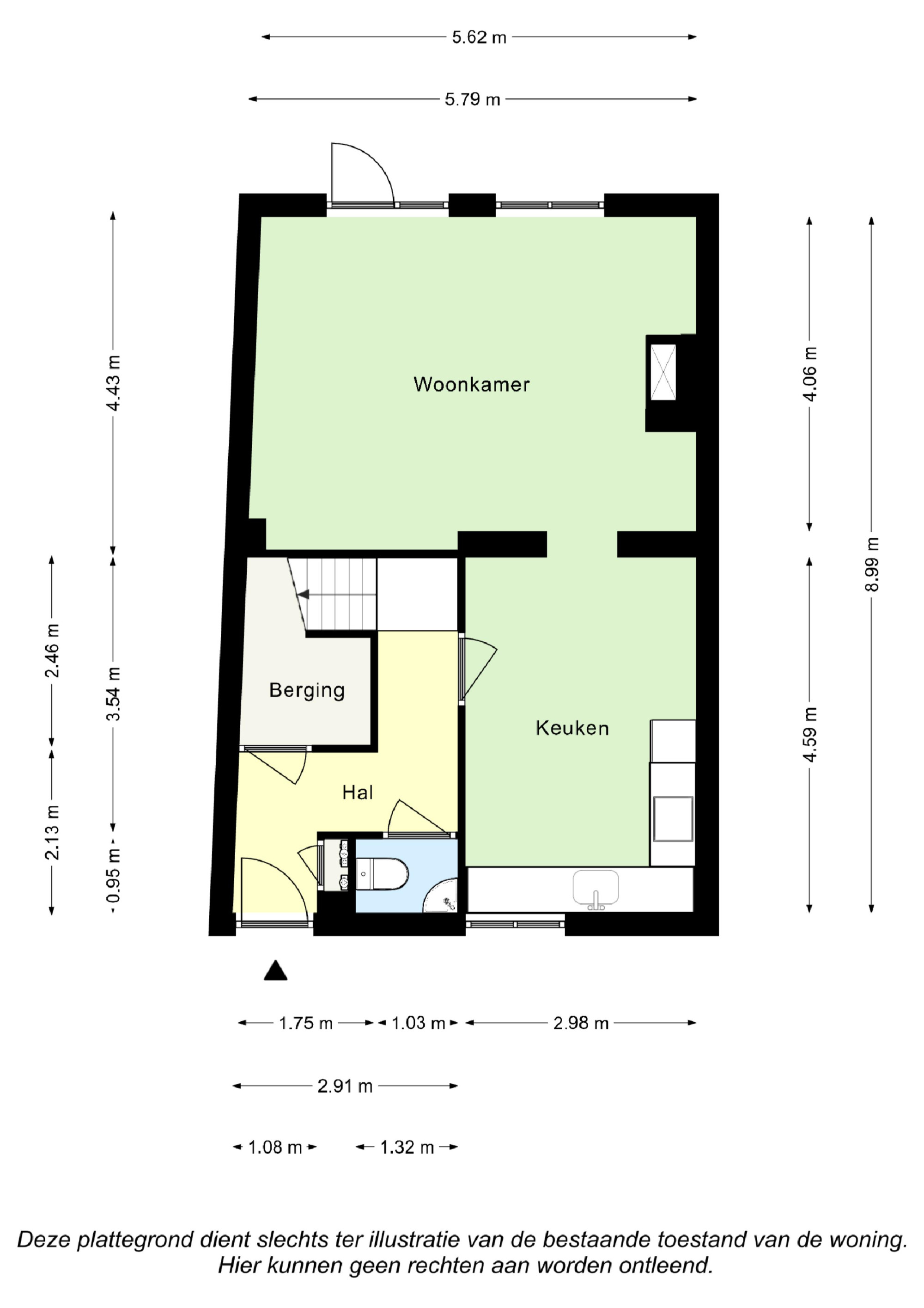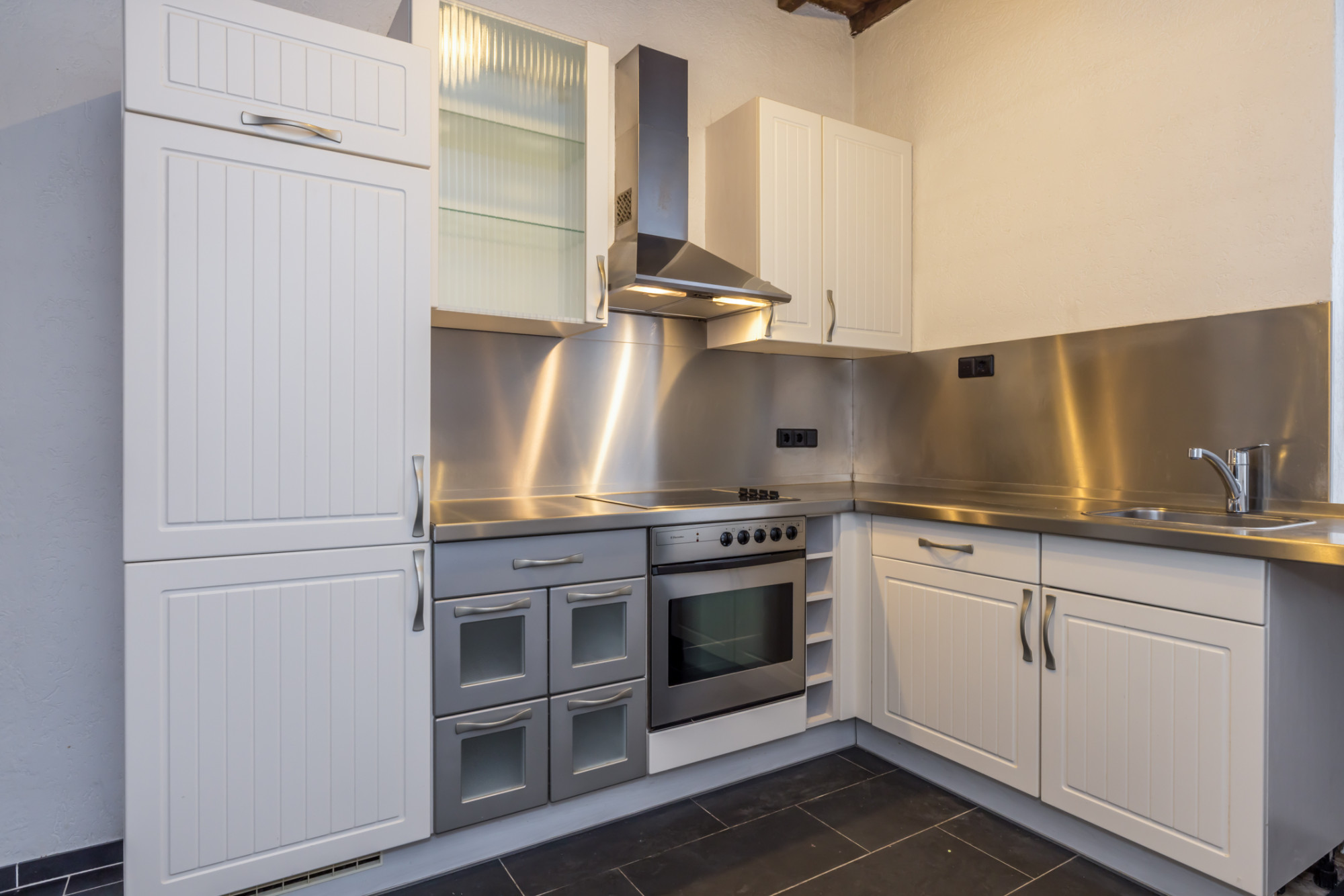 - keuken 2.98 x 4.59 met keukenopstelling voorzien van kookplaat, afzuigkap en koelkast en voorzien van plavuizen