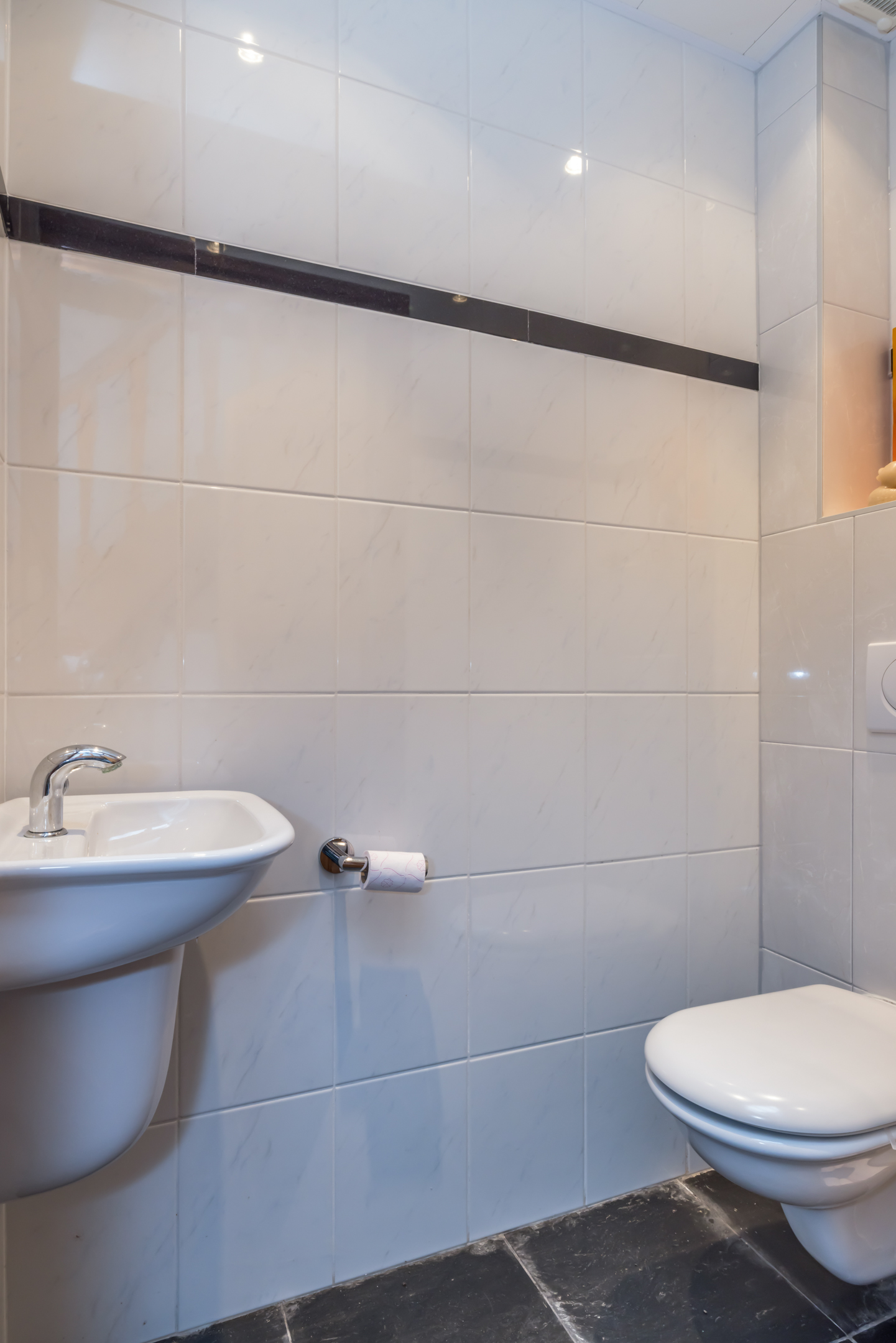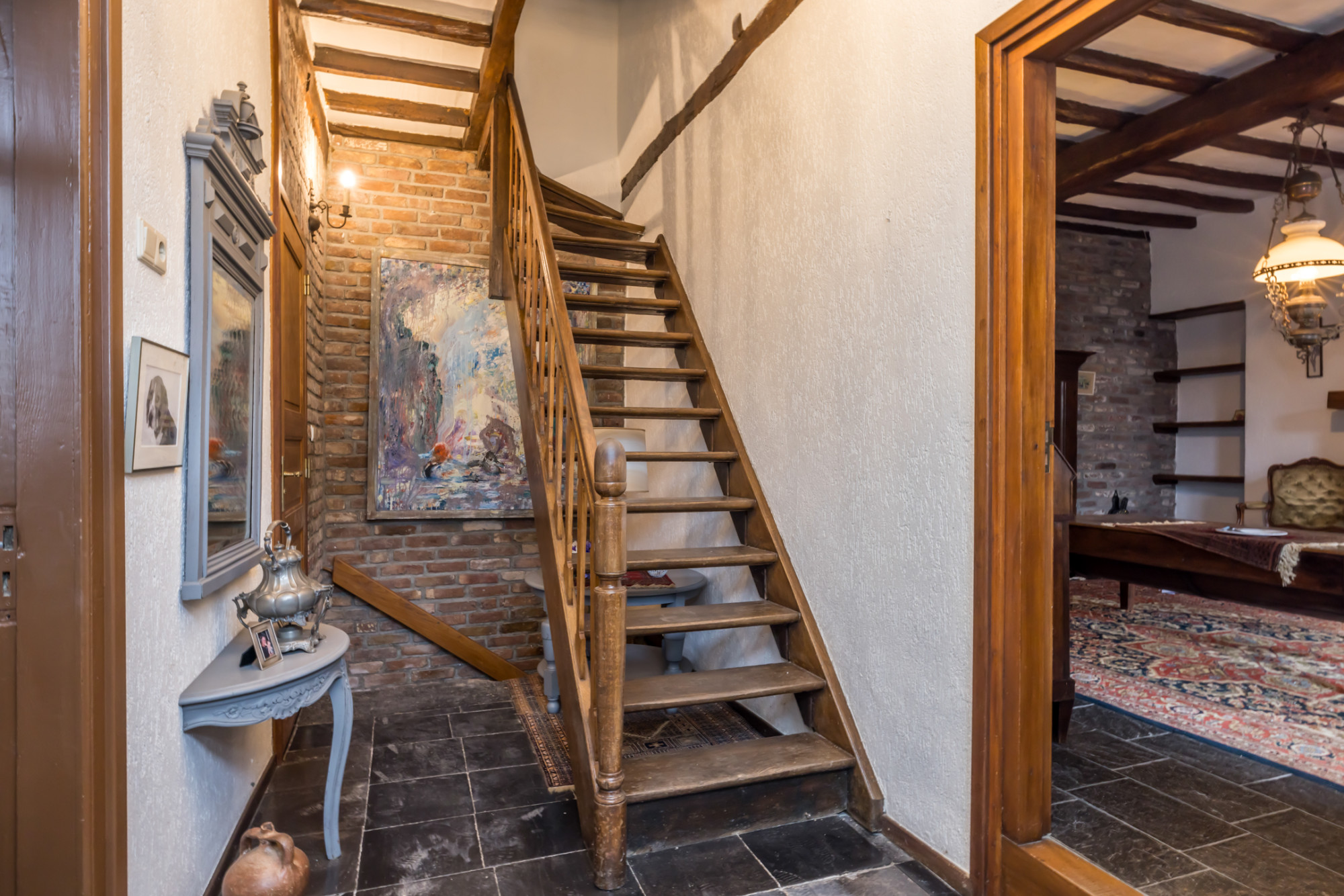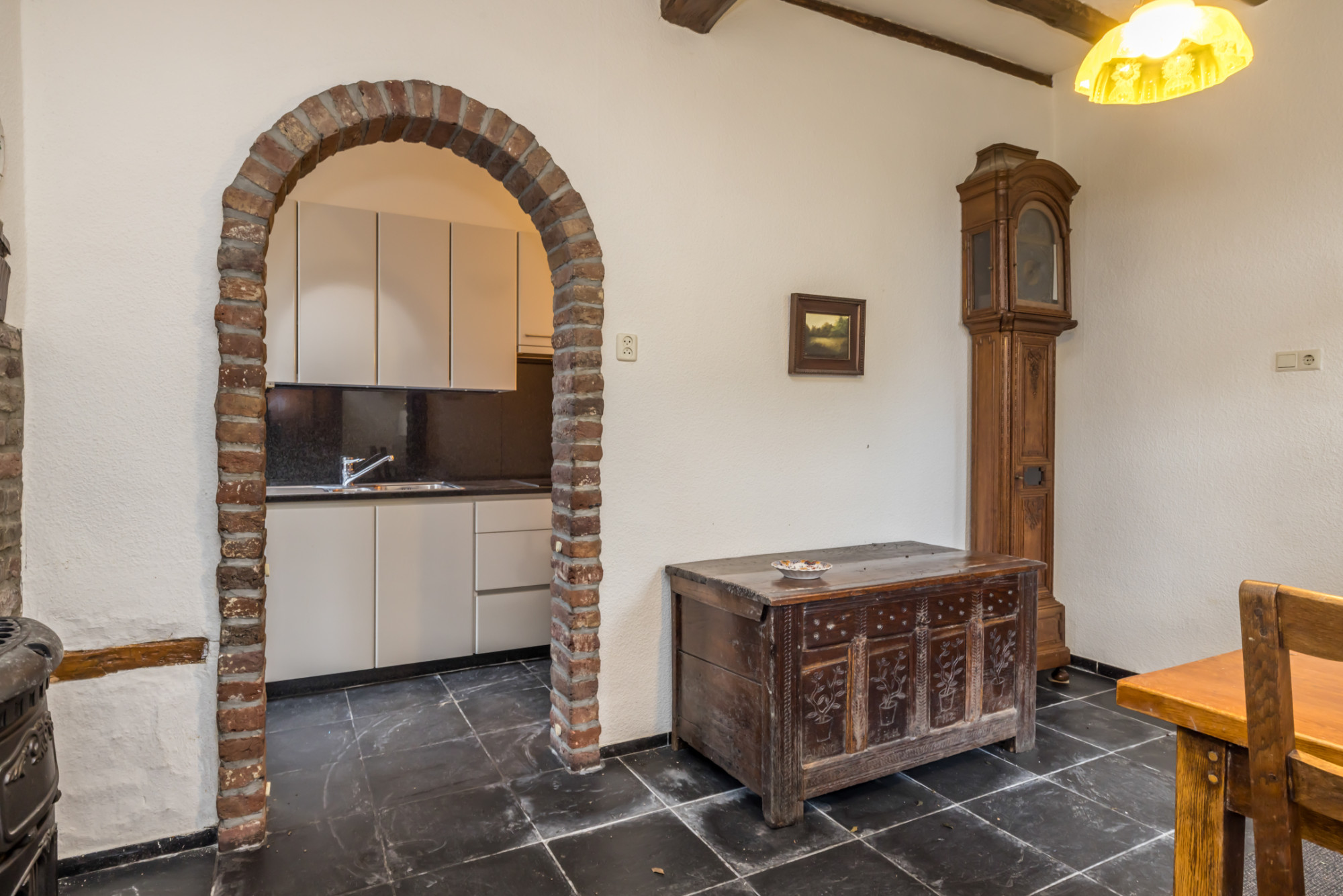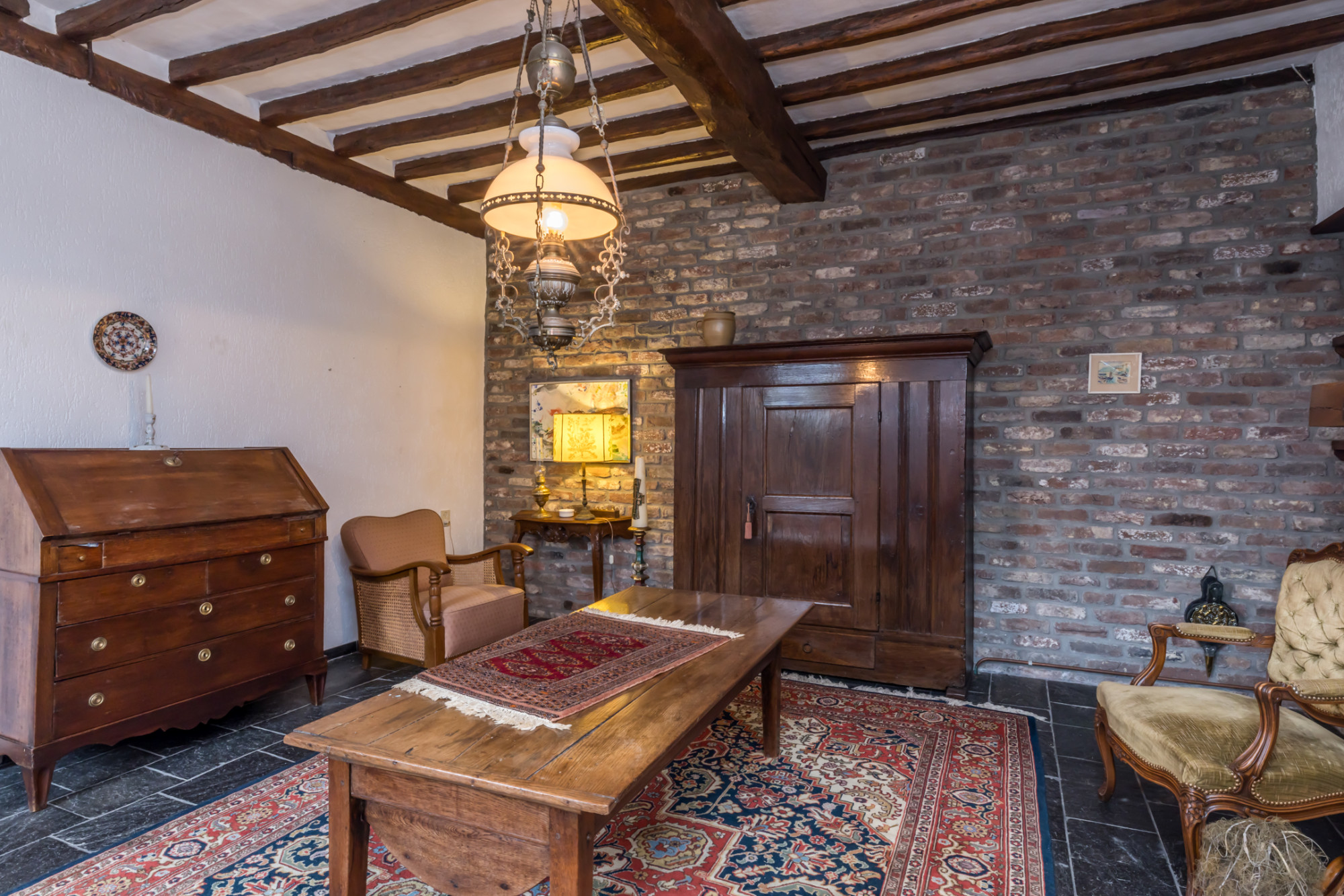 - toiletruimte, woonkamer met open haar leisteen vloer