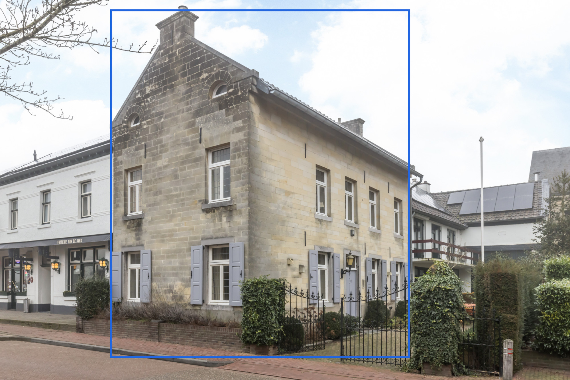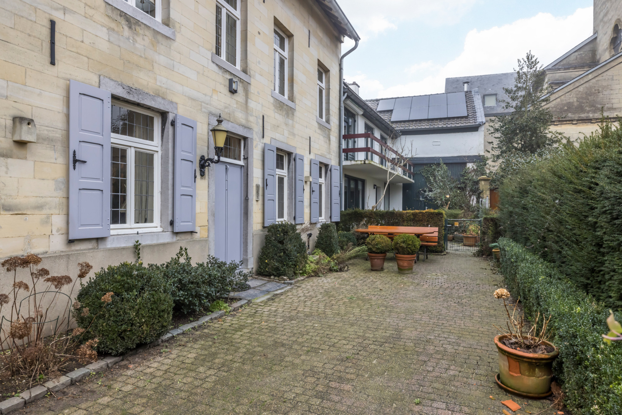 Half vrijstaand karakteristieke mergelwoning met voortuin.