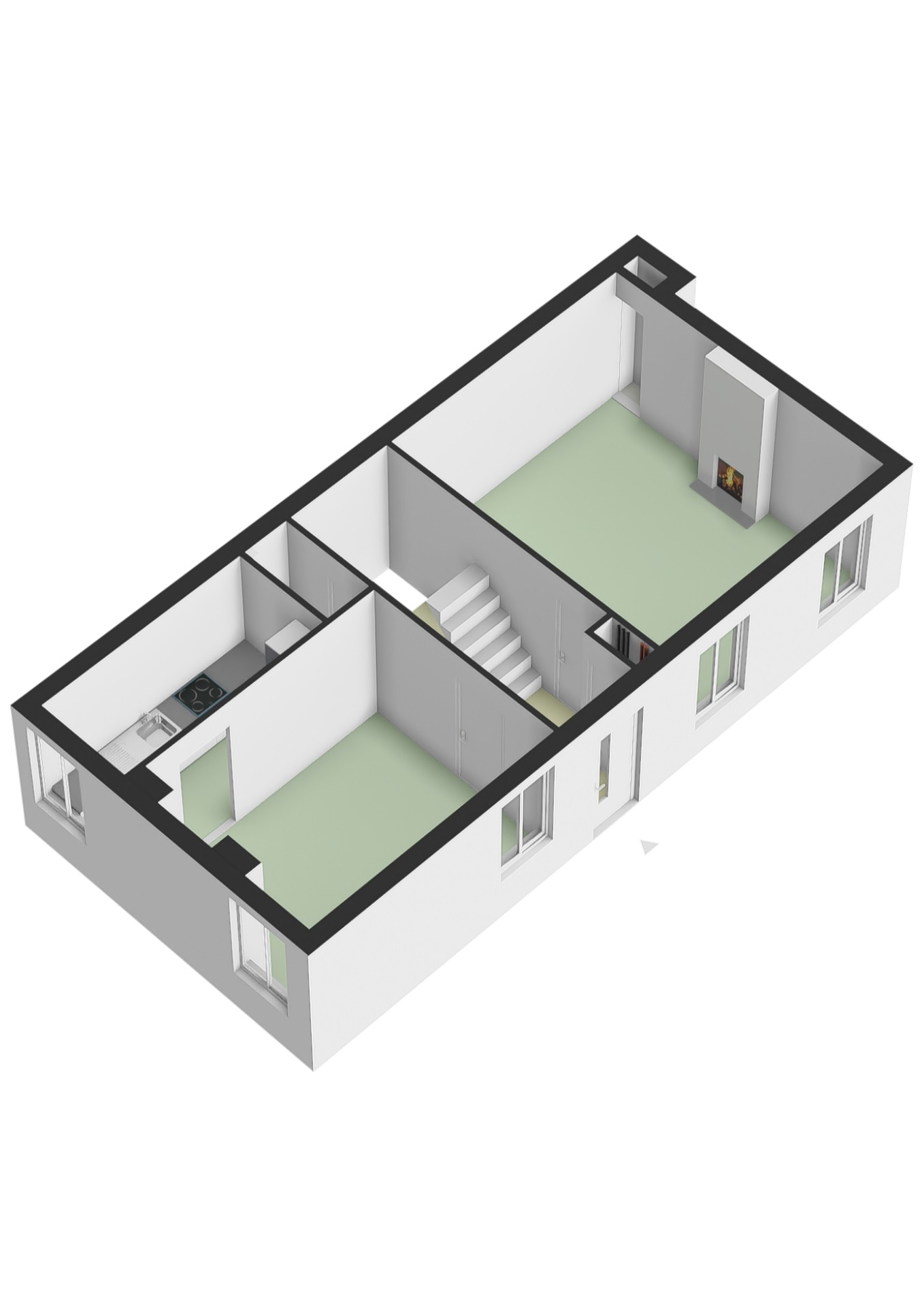- keuken voorzien van inductie kookplaat, afzuigkap en koelkast