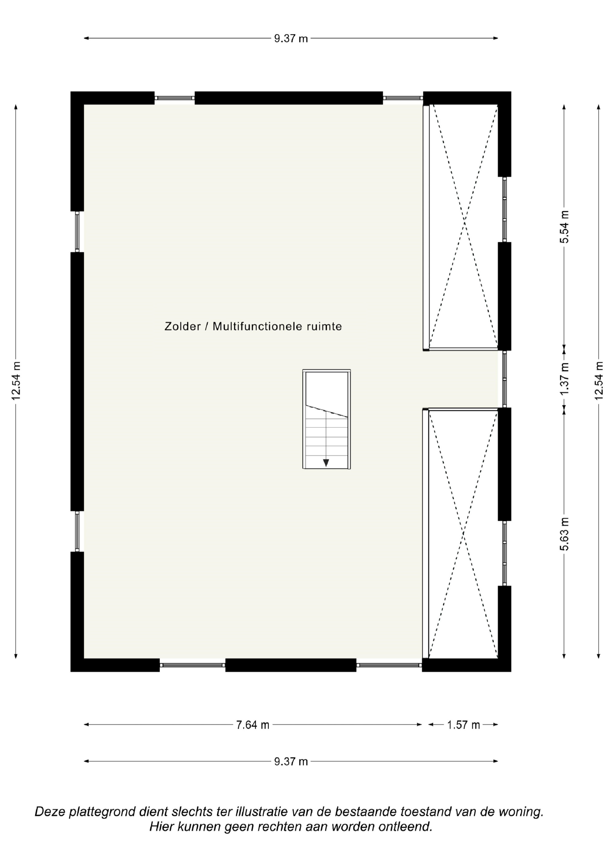 - via vaste trap te bereiken ruime zolder 95.8m²