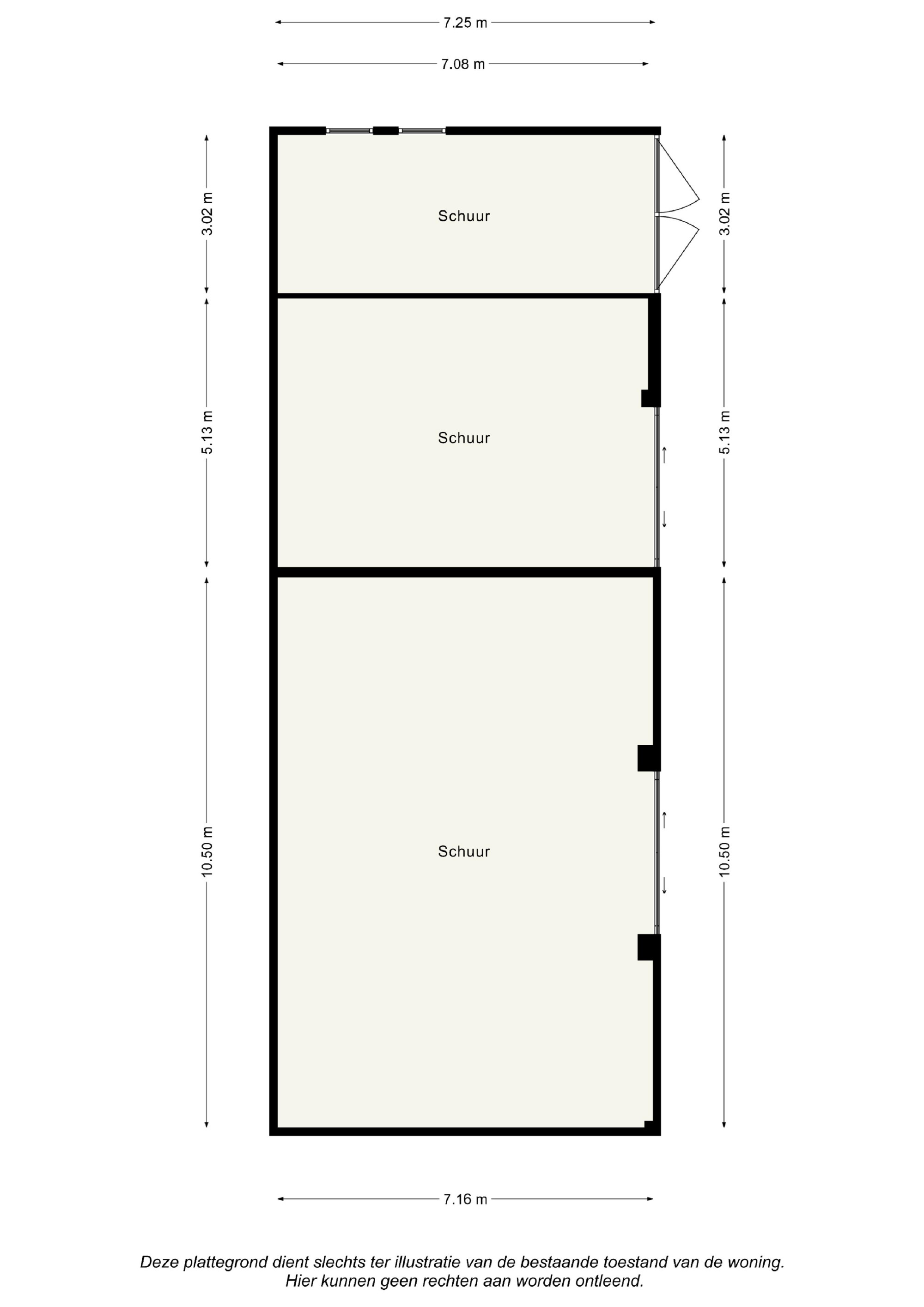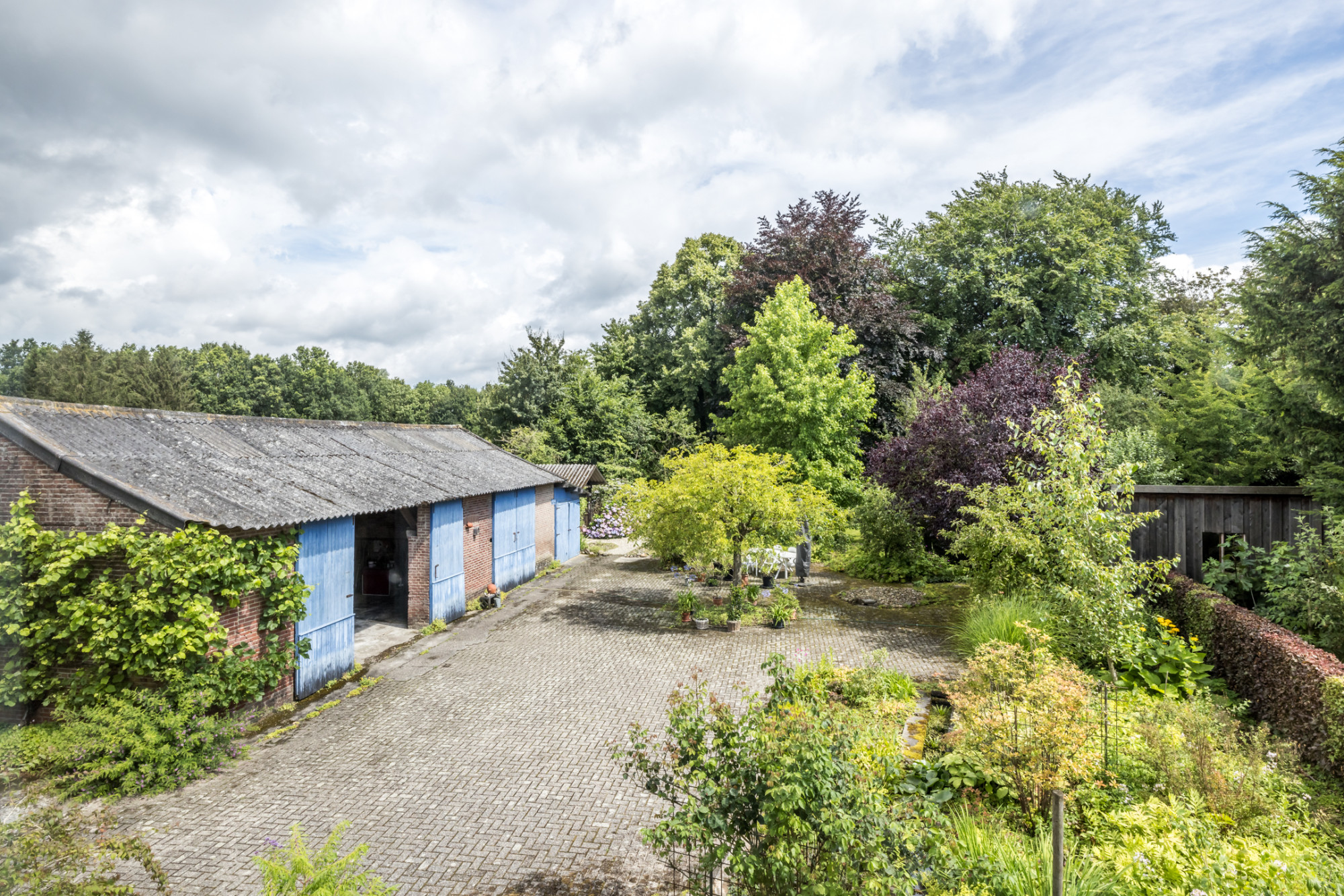 ruime oprit met schuur, onderverdeeld in 3 ruimten