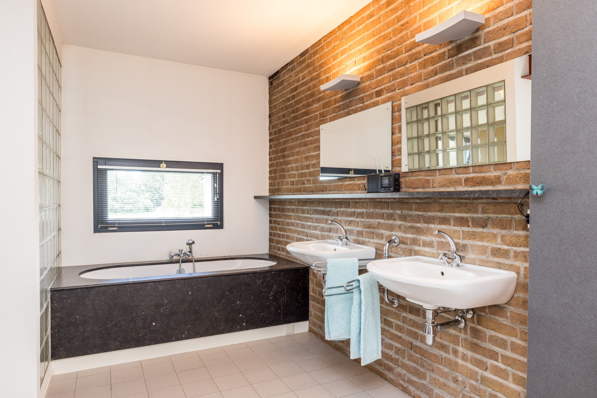 - badkamer met ligbad, inloopdouche, dubbele wastafel en toilet