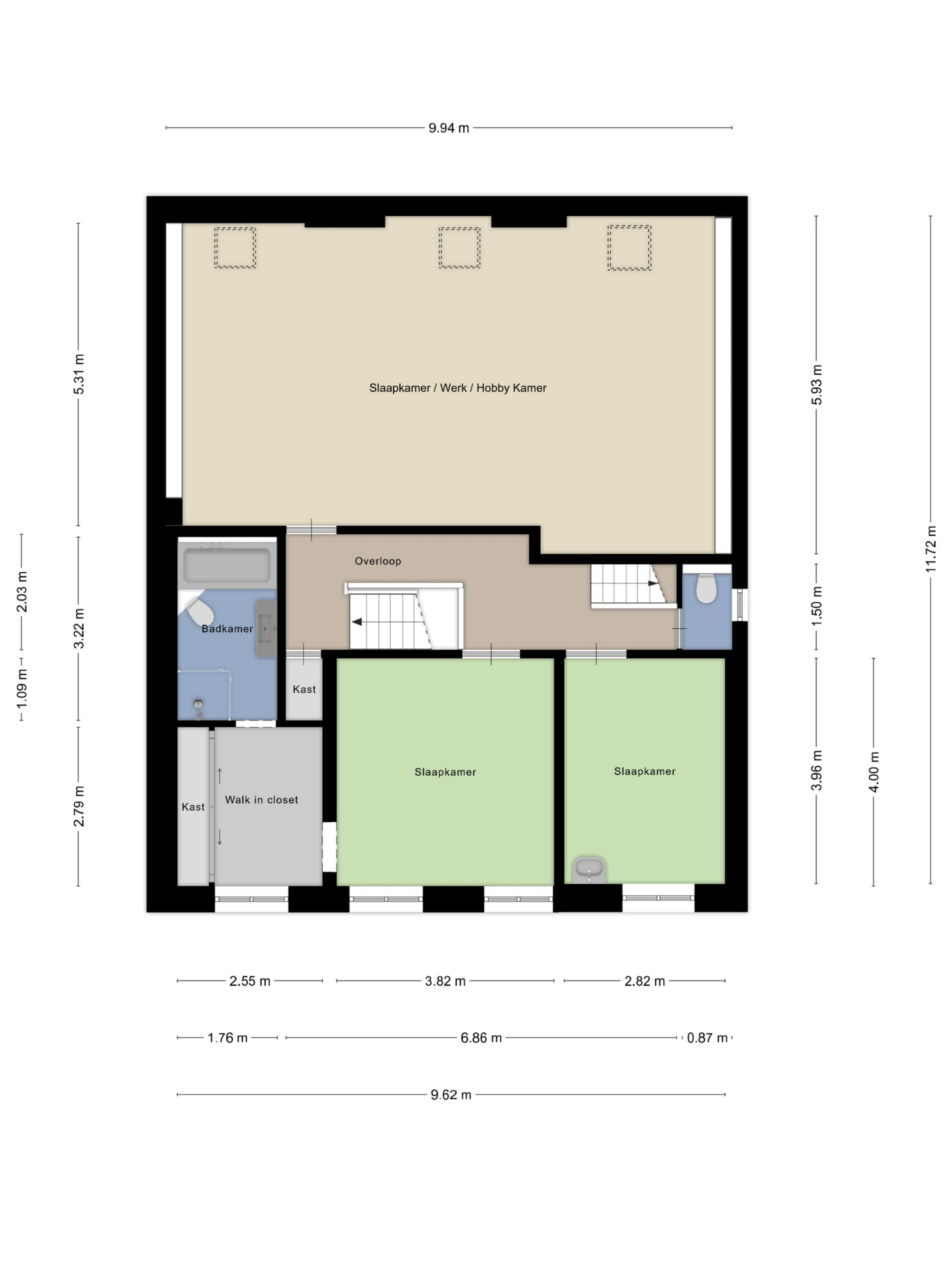 - slaapkamer/werkkamer circa 10m2