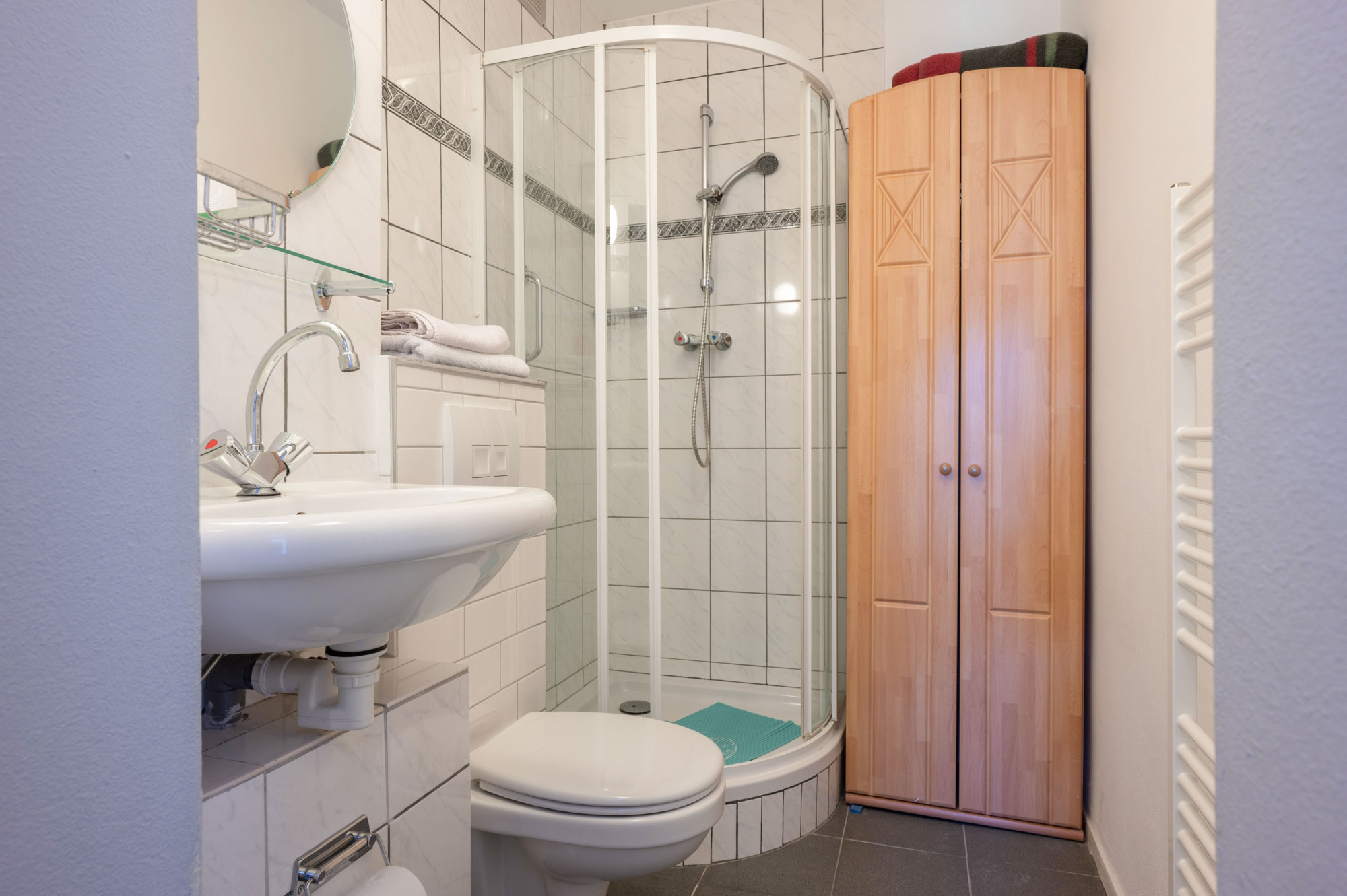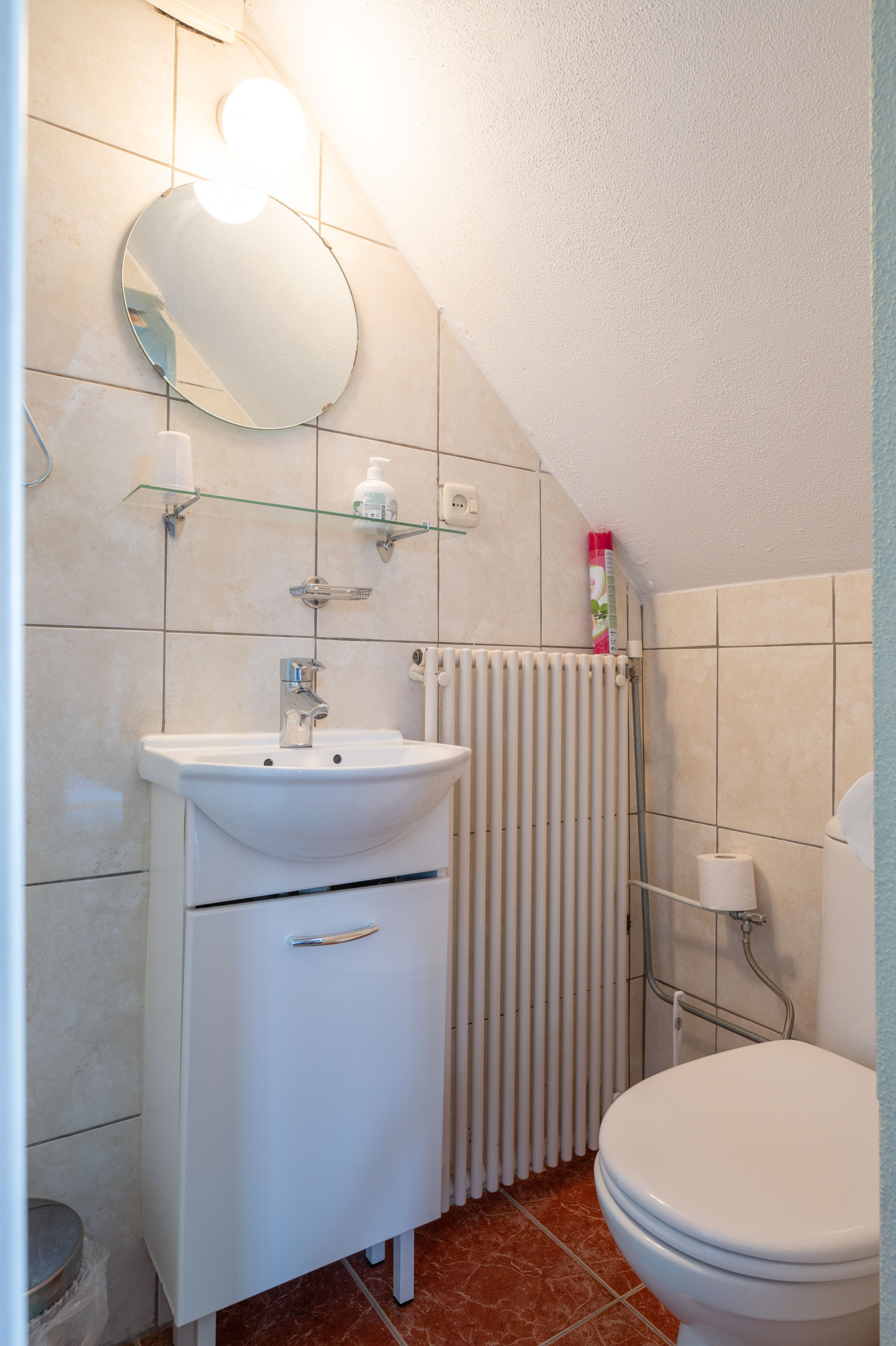 - kleine badkamer met douche en toilet