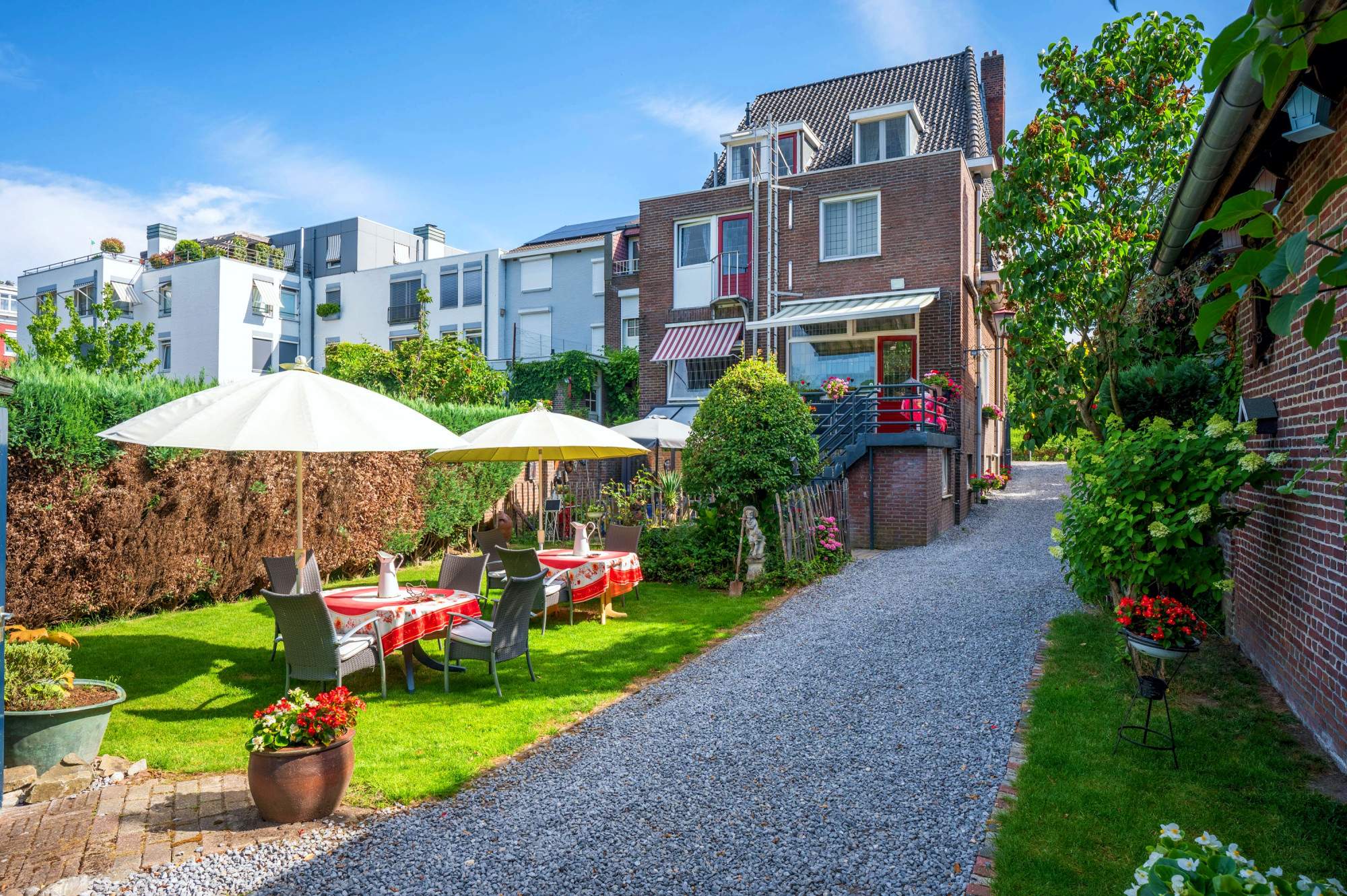 - ontbijtzaal ca. 30m² met toegang tot terras met zonnescherm