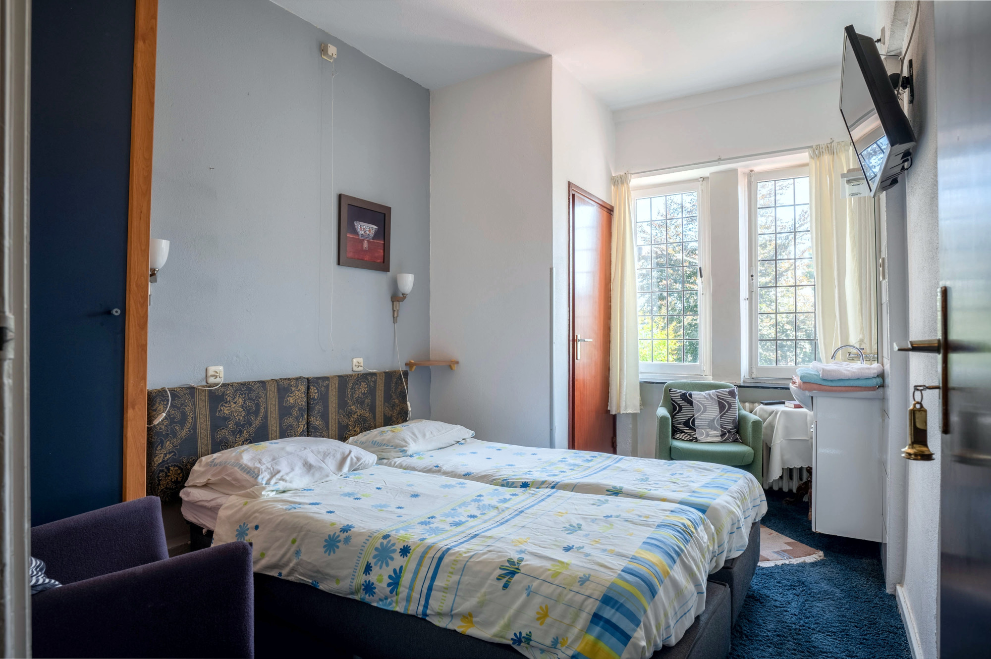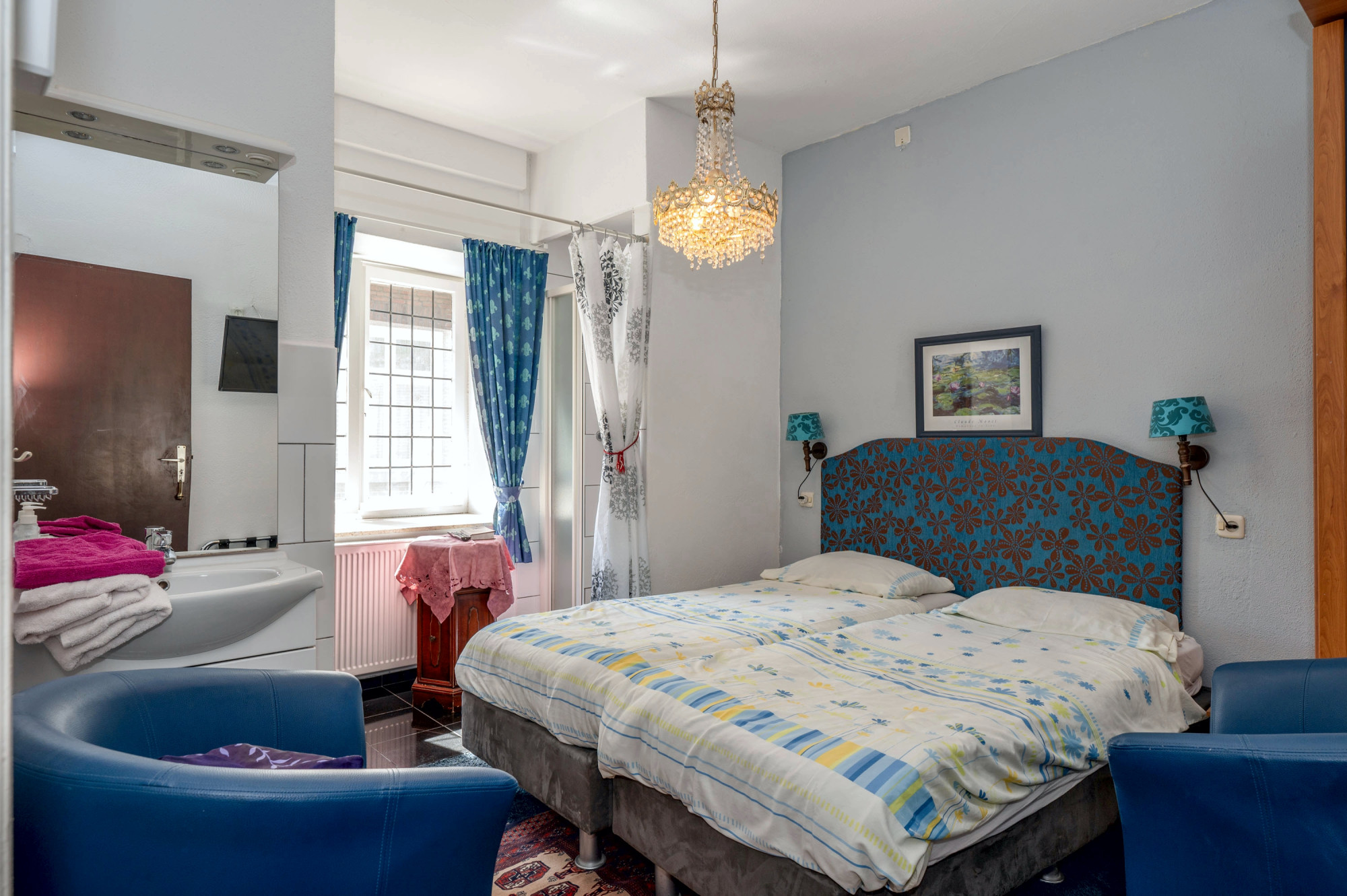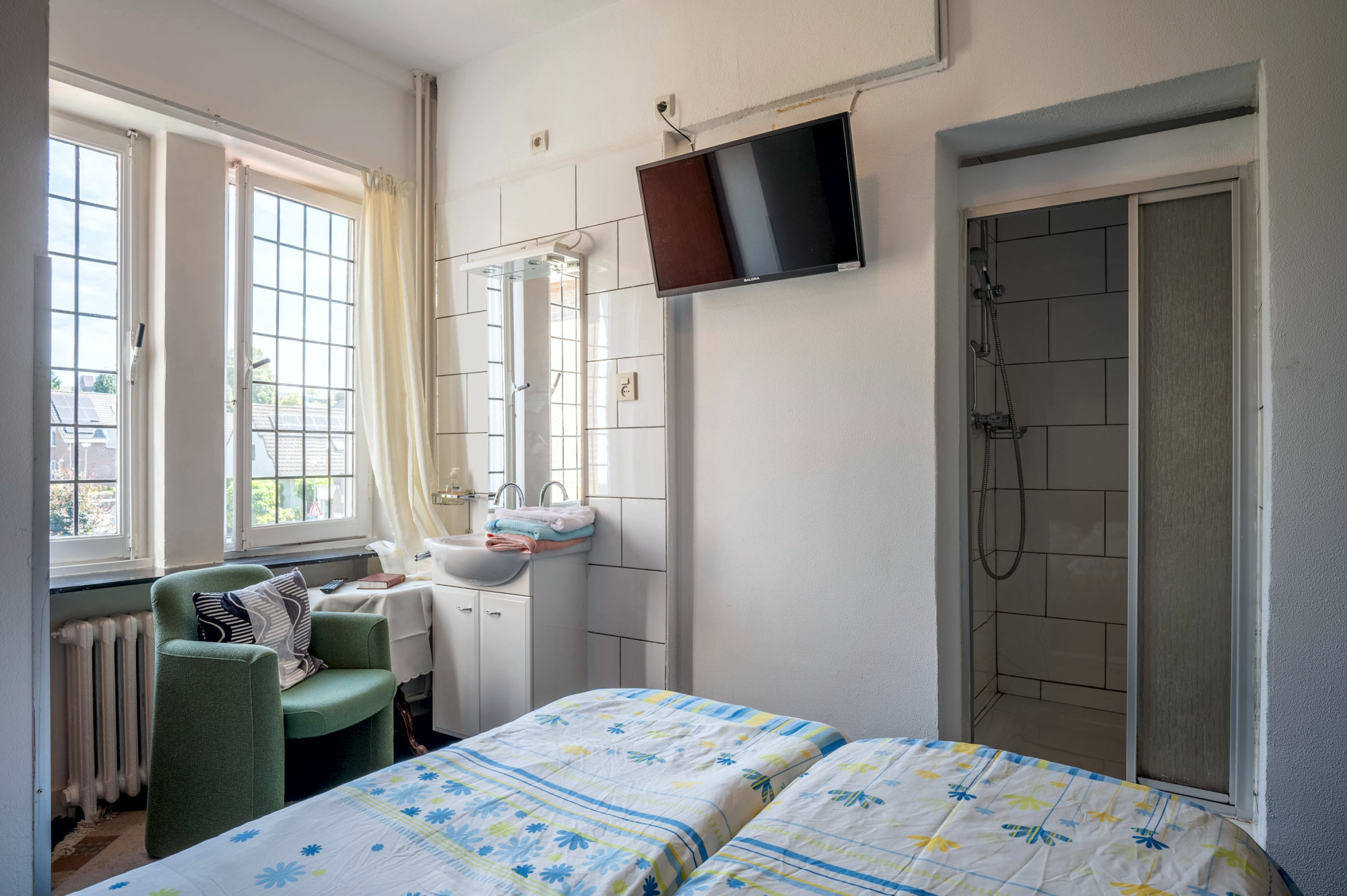 - 3 hotelkamers allen voorzien van douche, toilet en vaste wastafel
