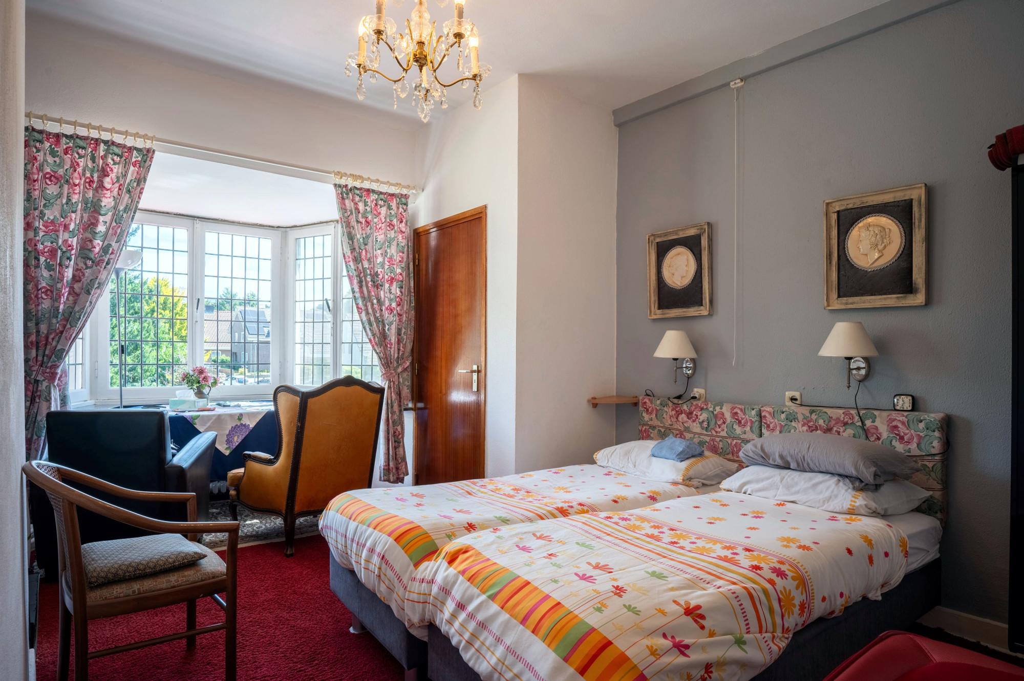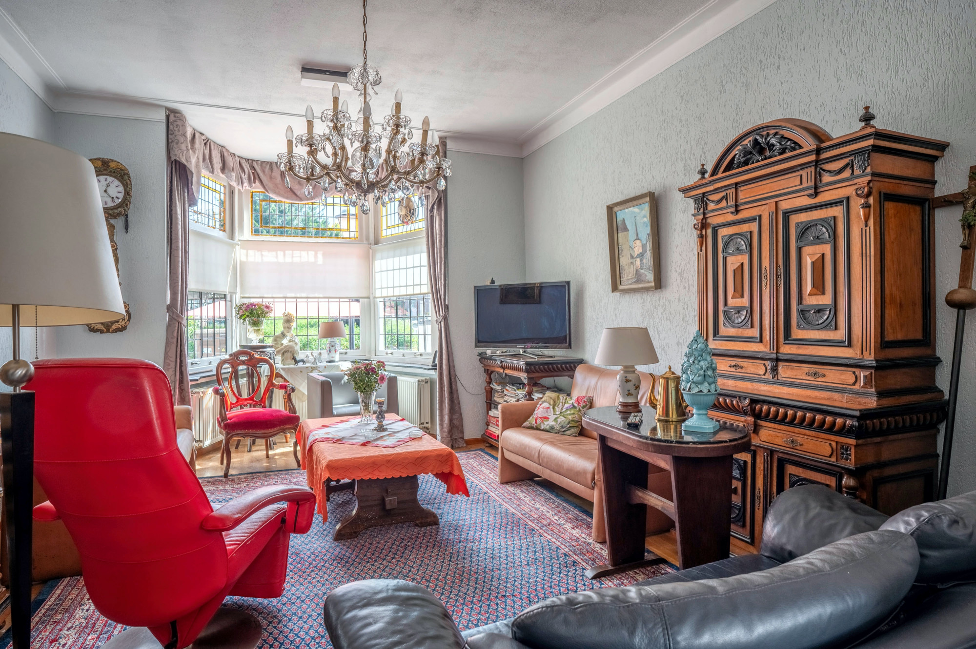 - woonkamer en suite ca. 43m² met erker en de originele schuifdeuren