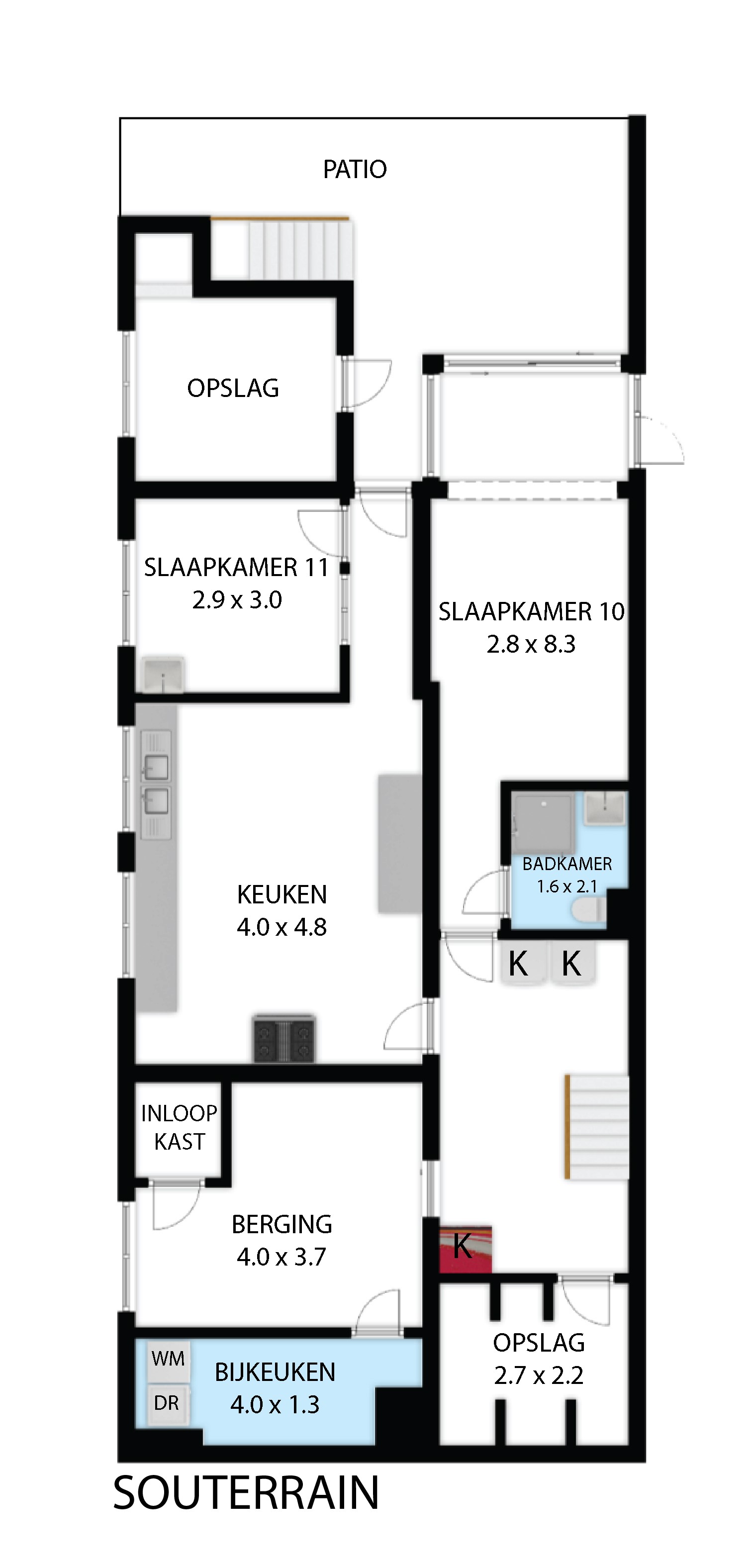 - keuken ca. 20m² ingericht als bedrijfskeuken