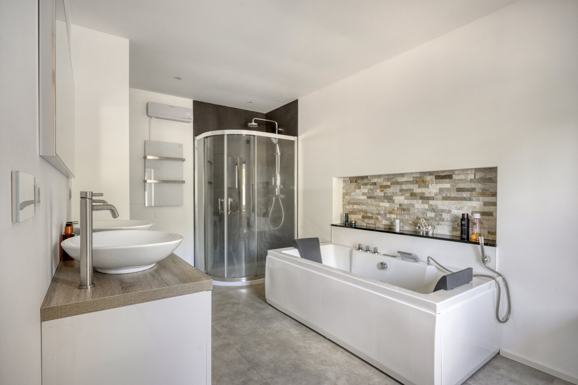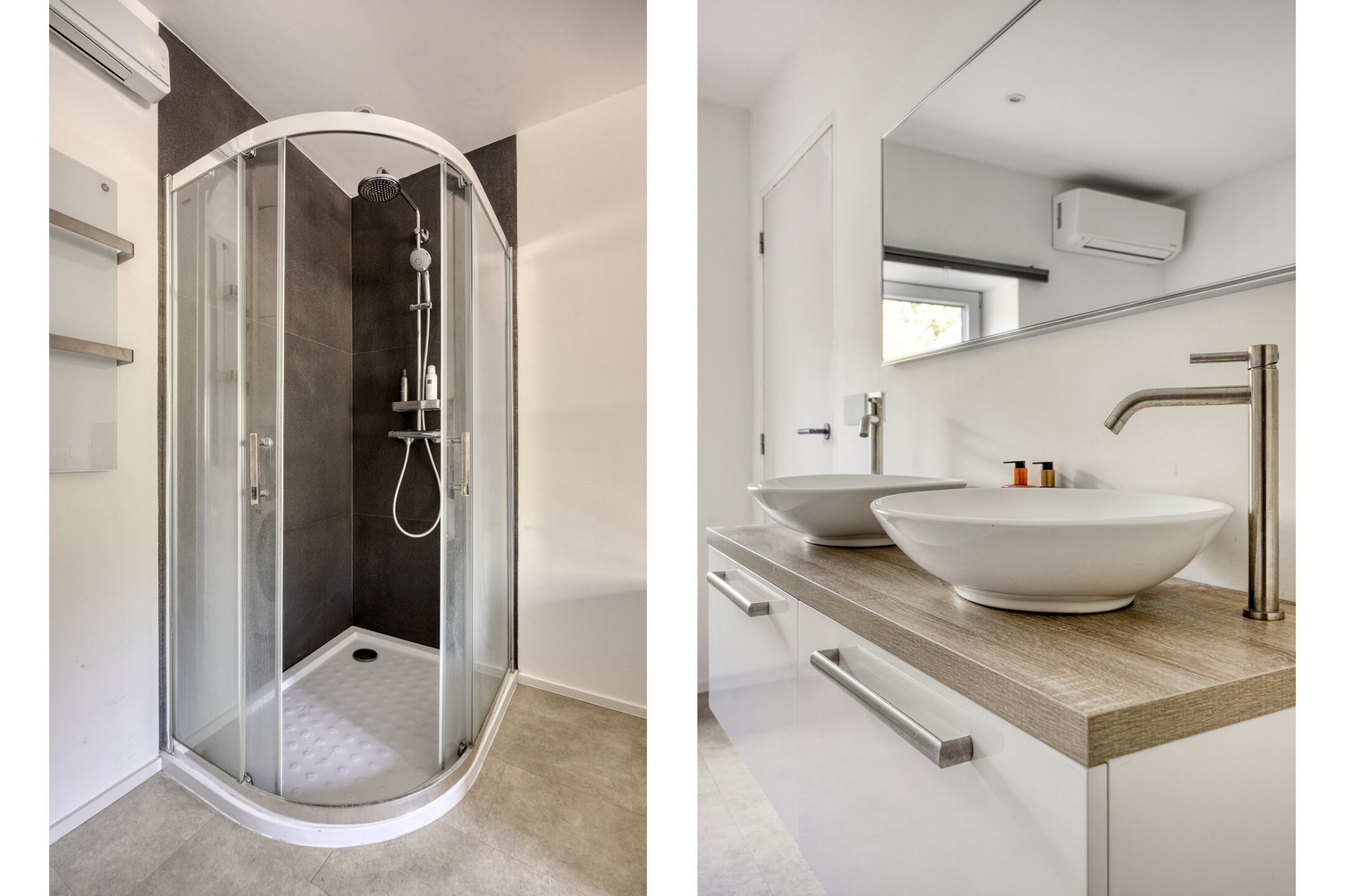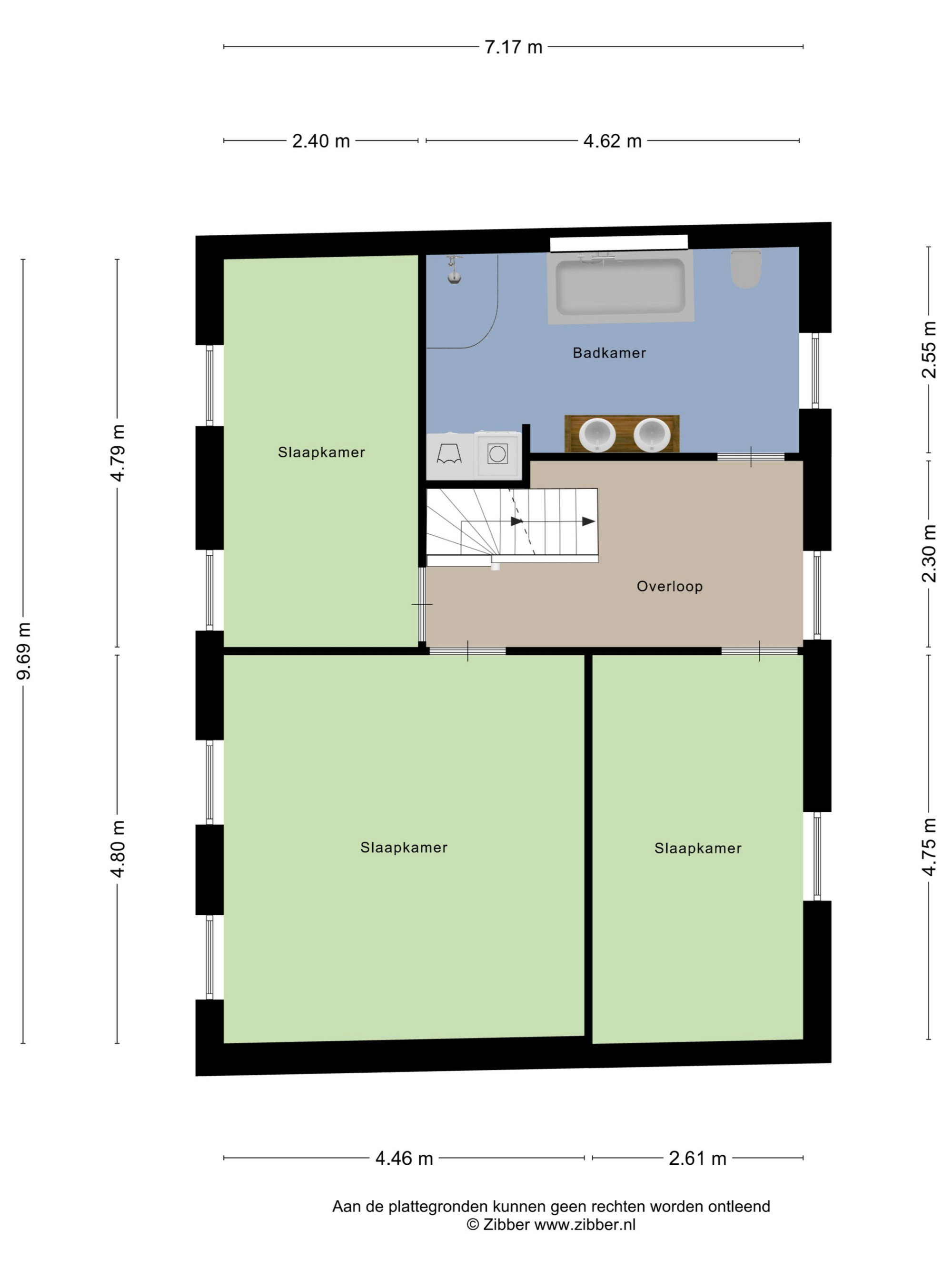 Via de nieuwe trap komt men op de eerste verdieping. Hier bevinden zich 3 slaapkamers en een ruime, luxe badkamer. De Badkamer ( 4.62m x 2.4m) is voorzien van een douchecabine, ligbad, dubbele wastafel met meubel. Slaapkamer I, achterzijde (2.61m x 4.8m) dient nog verder te worden afgewerkt. Slaapkamer II voorzijde ( 4.79m x 2.40m) en slaapkamer III (4.8m x 4.46m) zijn netjes afgewerkt.