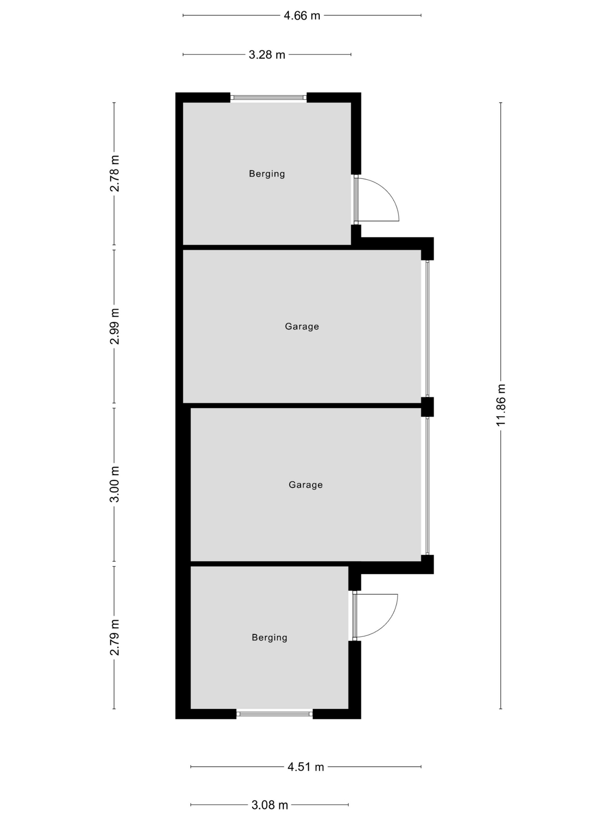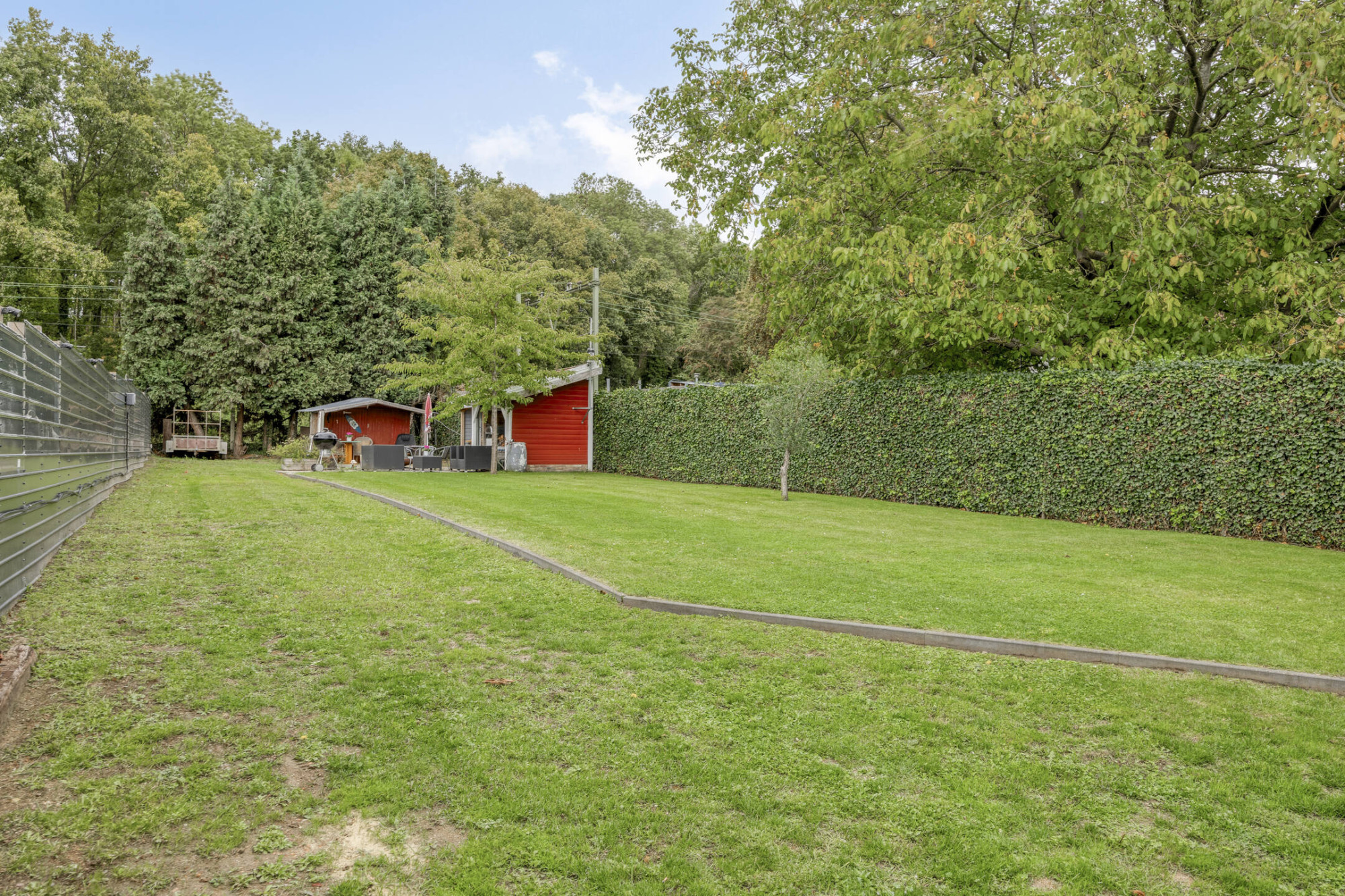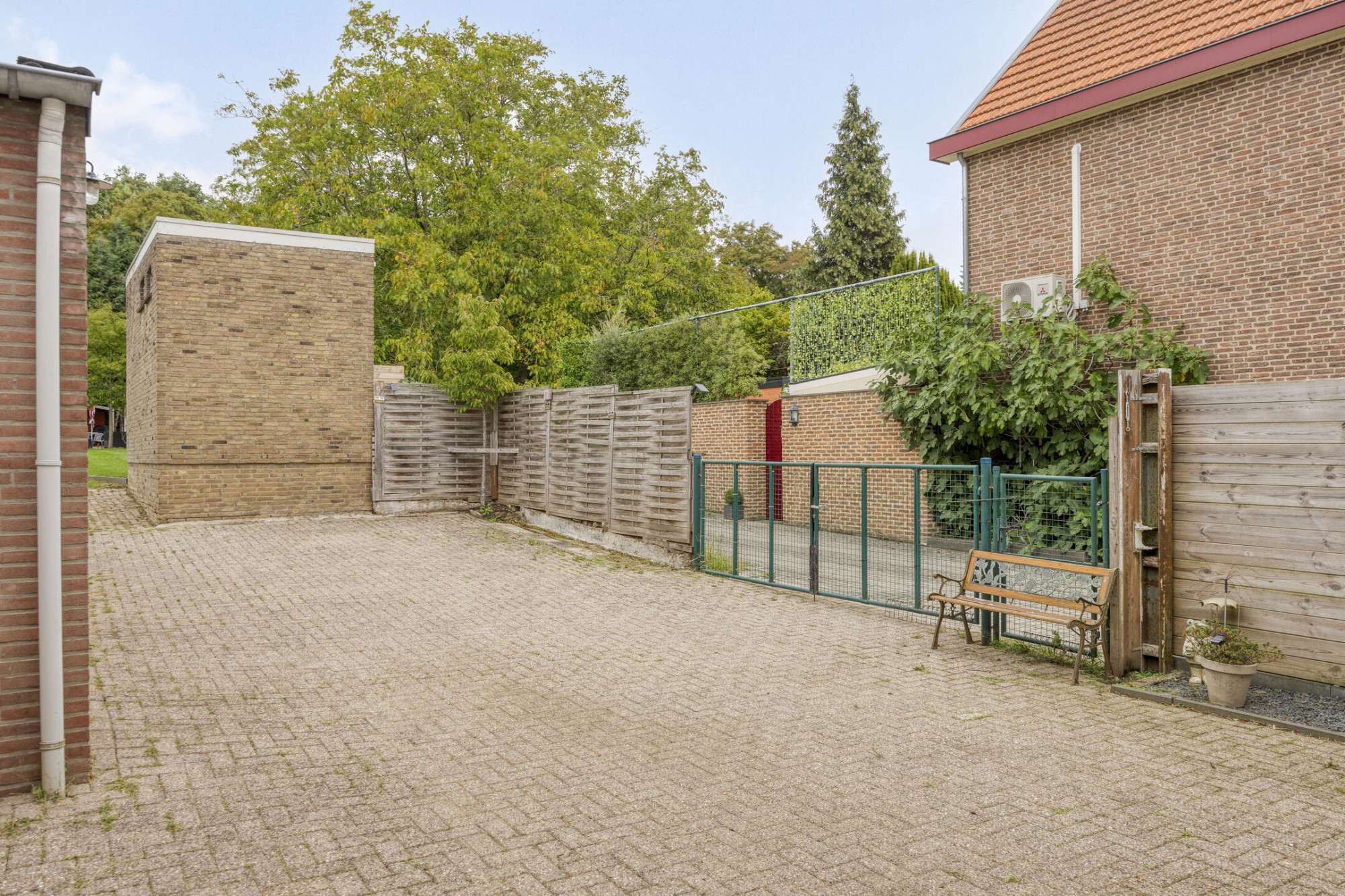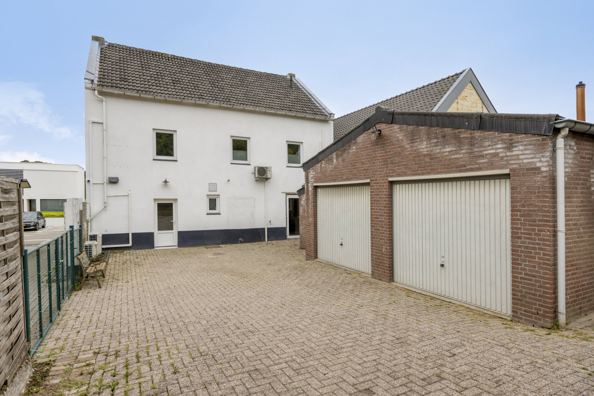 De diepe achtertuin is via een gedeelde weg langs het huis ook met een auto bereikbaar. Hier bevinden zich op het voorste gedeelte 2 garages (ca 4.5 x 3.0m) en een berging. Het achterste gedeelte is netjes aangelegd met gras, beplanting en een tuinhuis.
