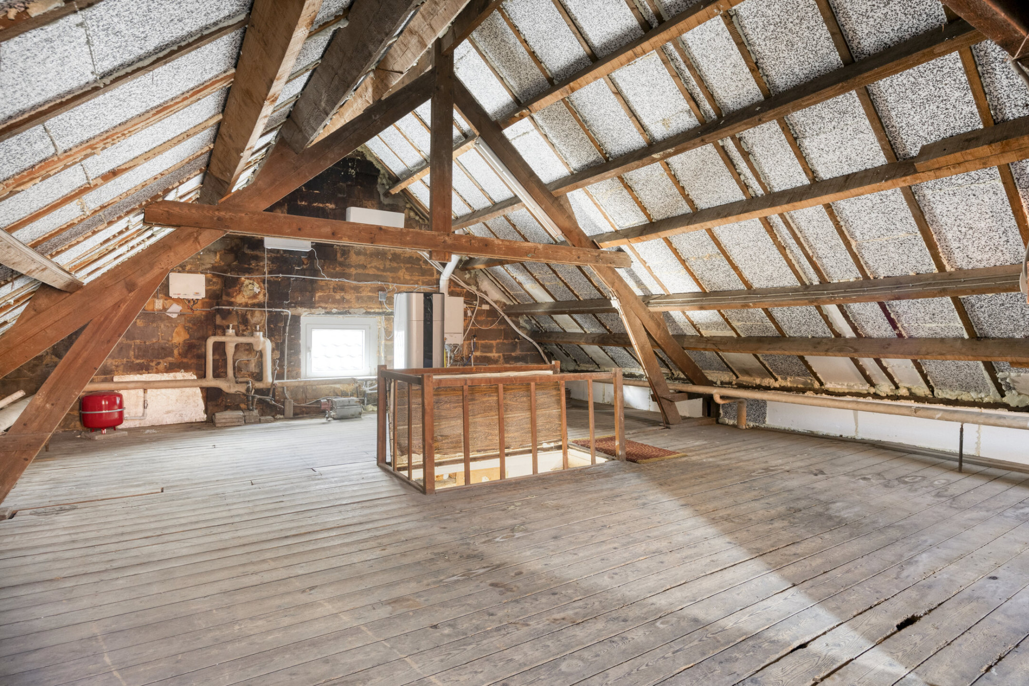 Via vaste trap komt men op de ruime zolder verdieping met opstelplaats warmtepomp installatie.