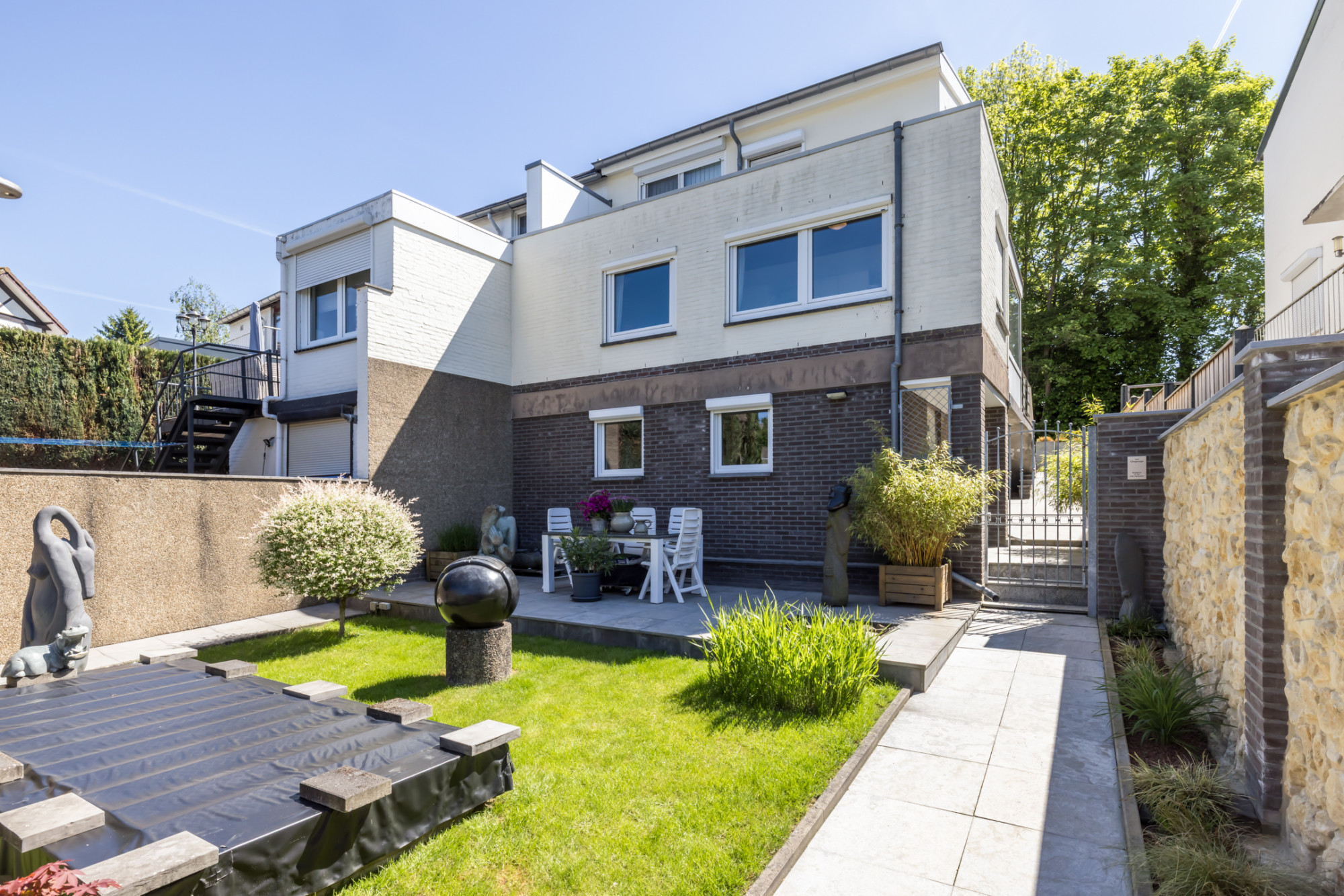 Half vrijstaand woonhuis met inpandige garage en tuin.