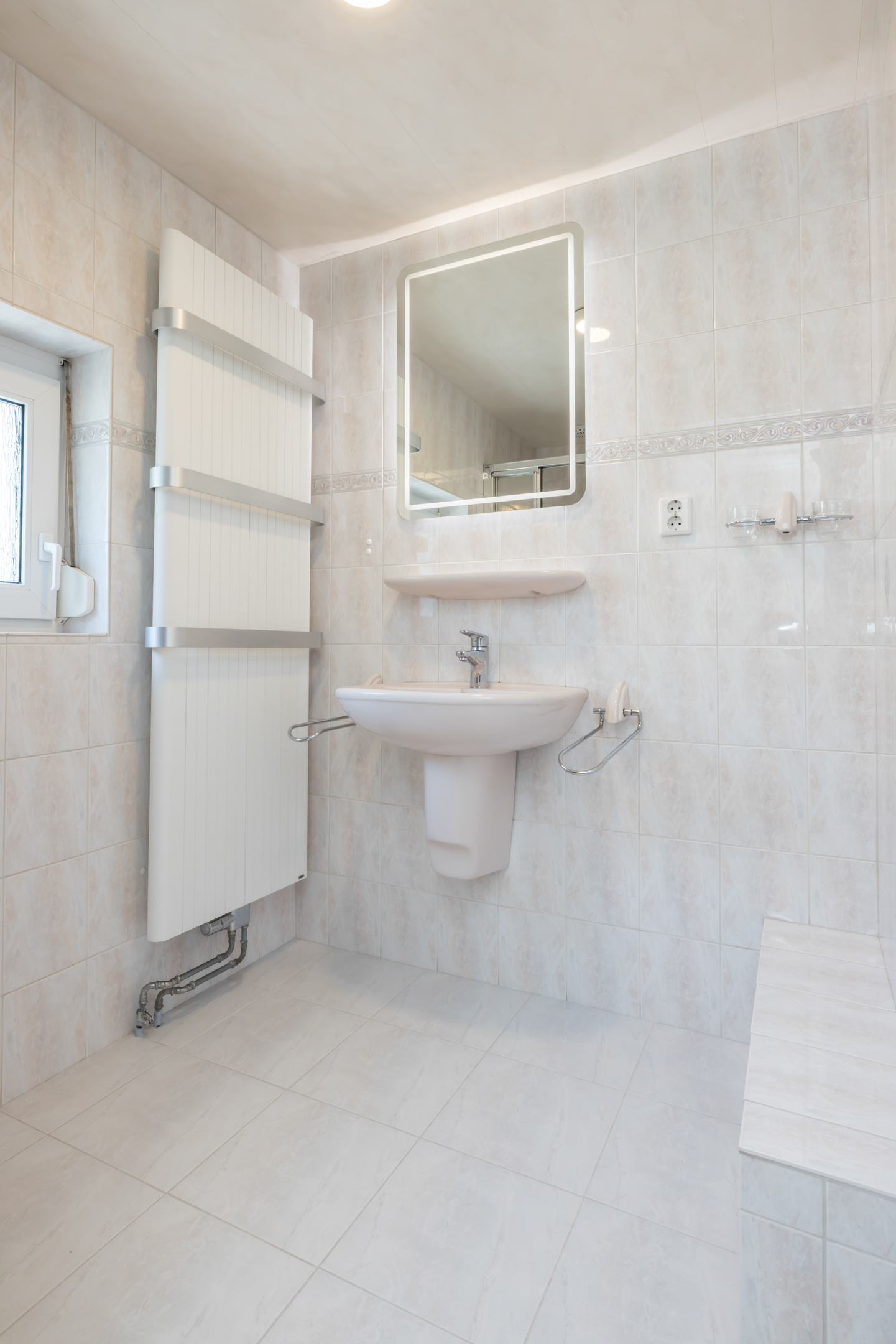 - badkamer voorzien van douche, wastafel en toilet.