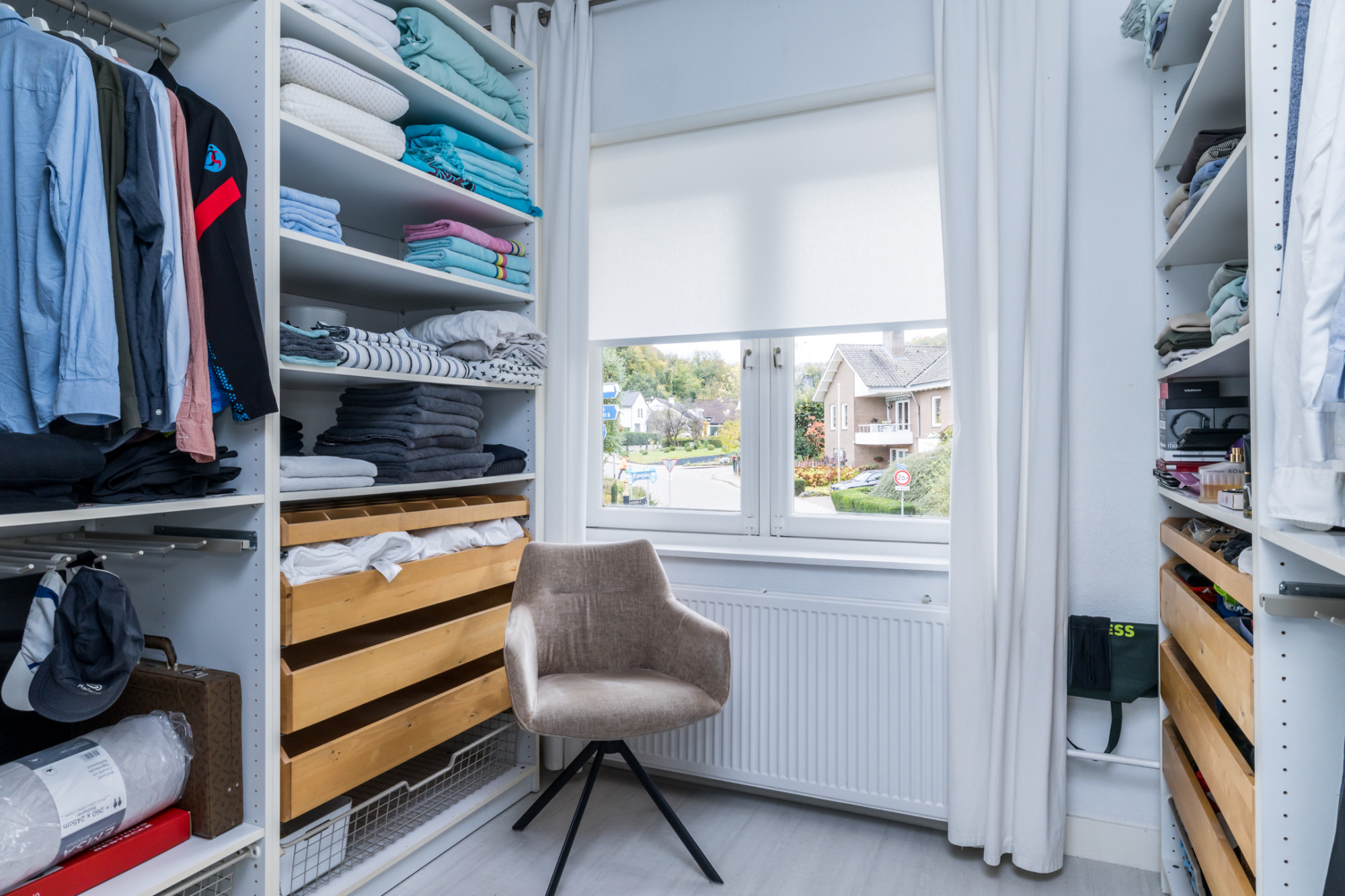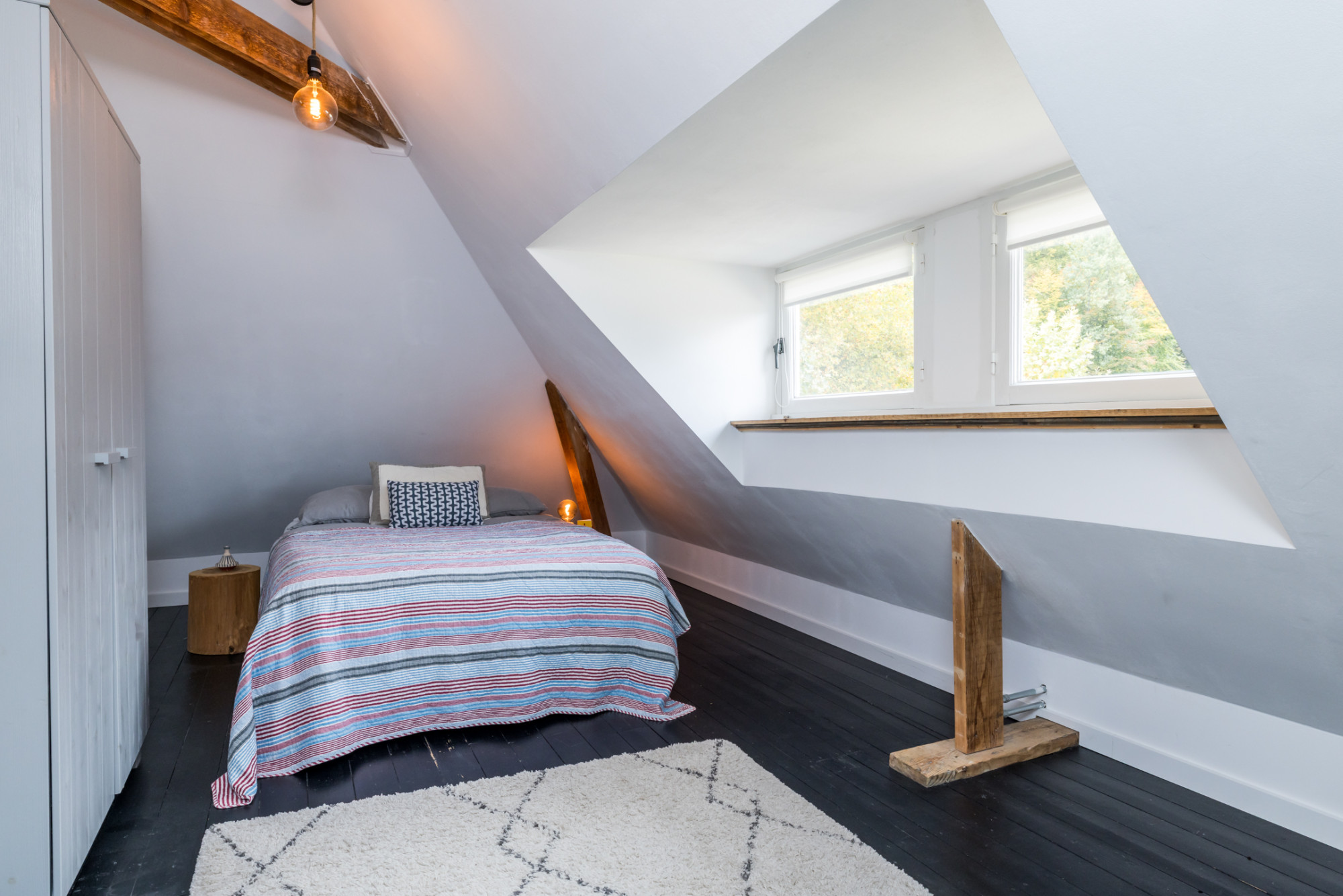 - slaapkamer met dakkapel (eenvoudig te splitsen in 2 kamers)