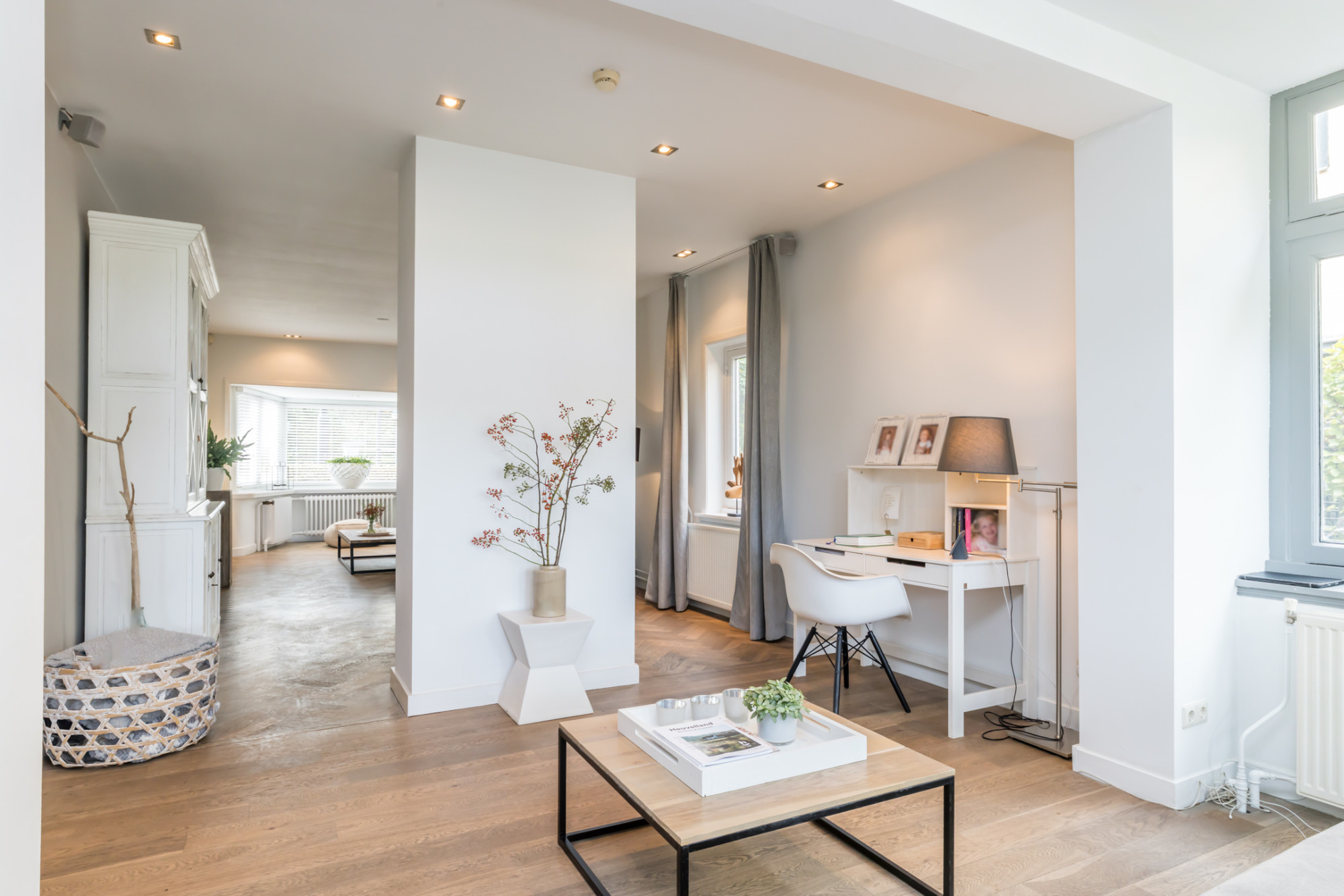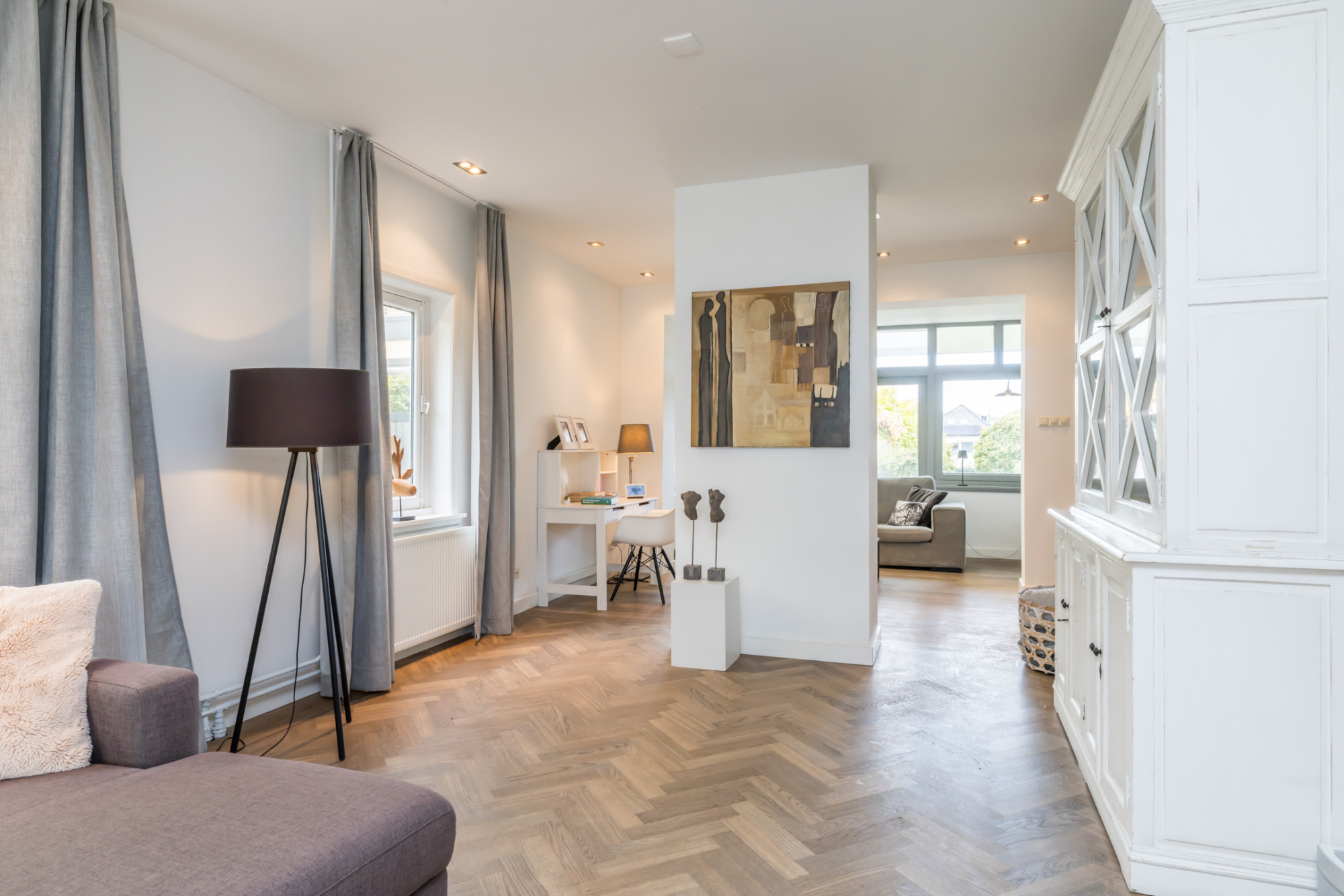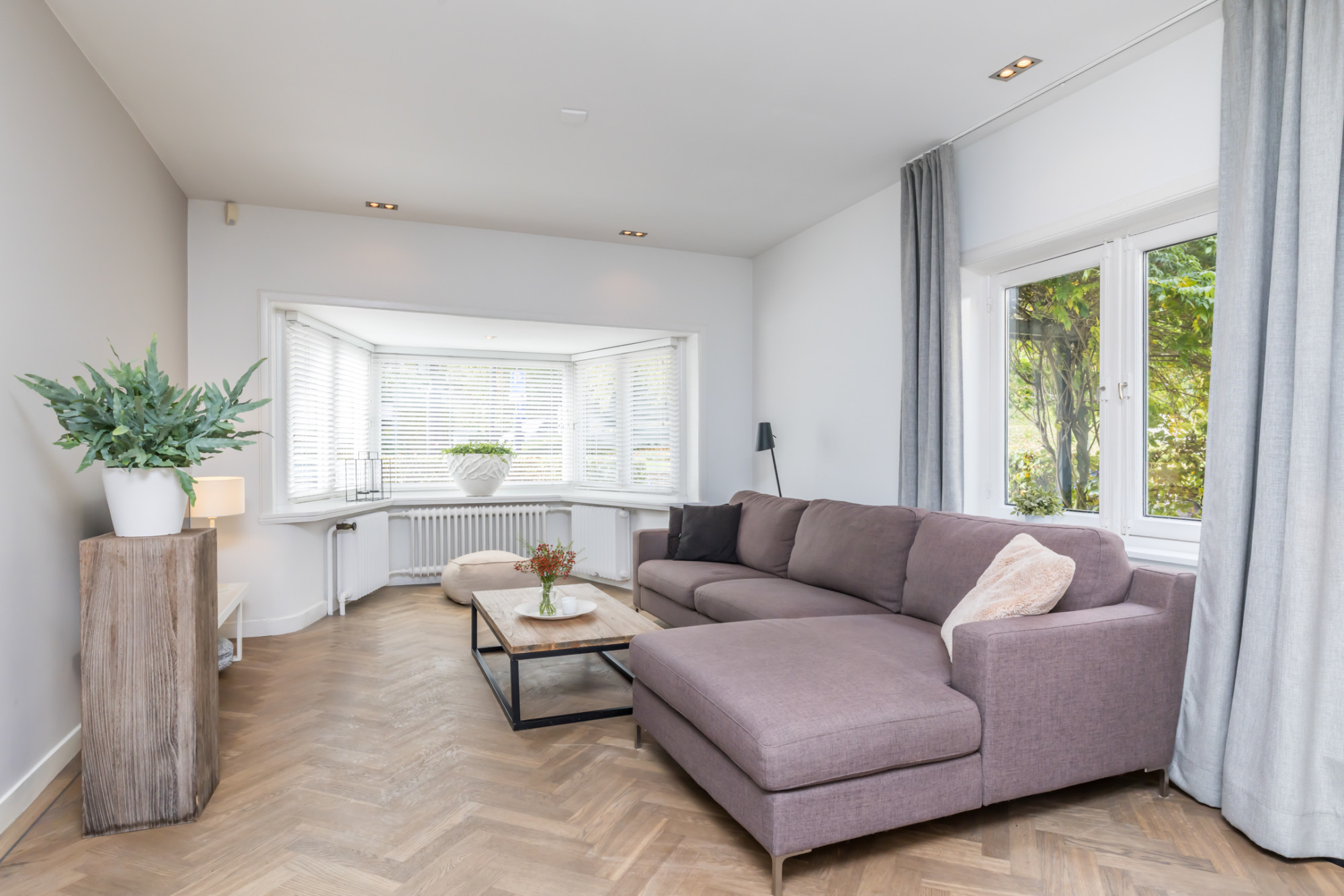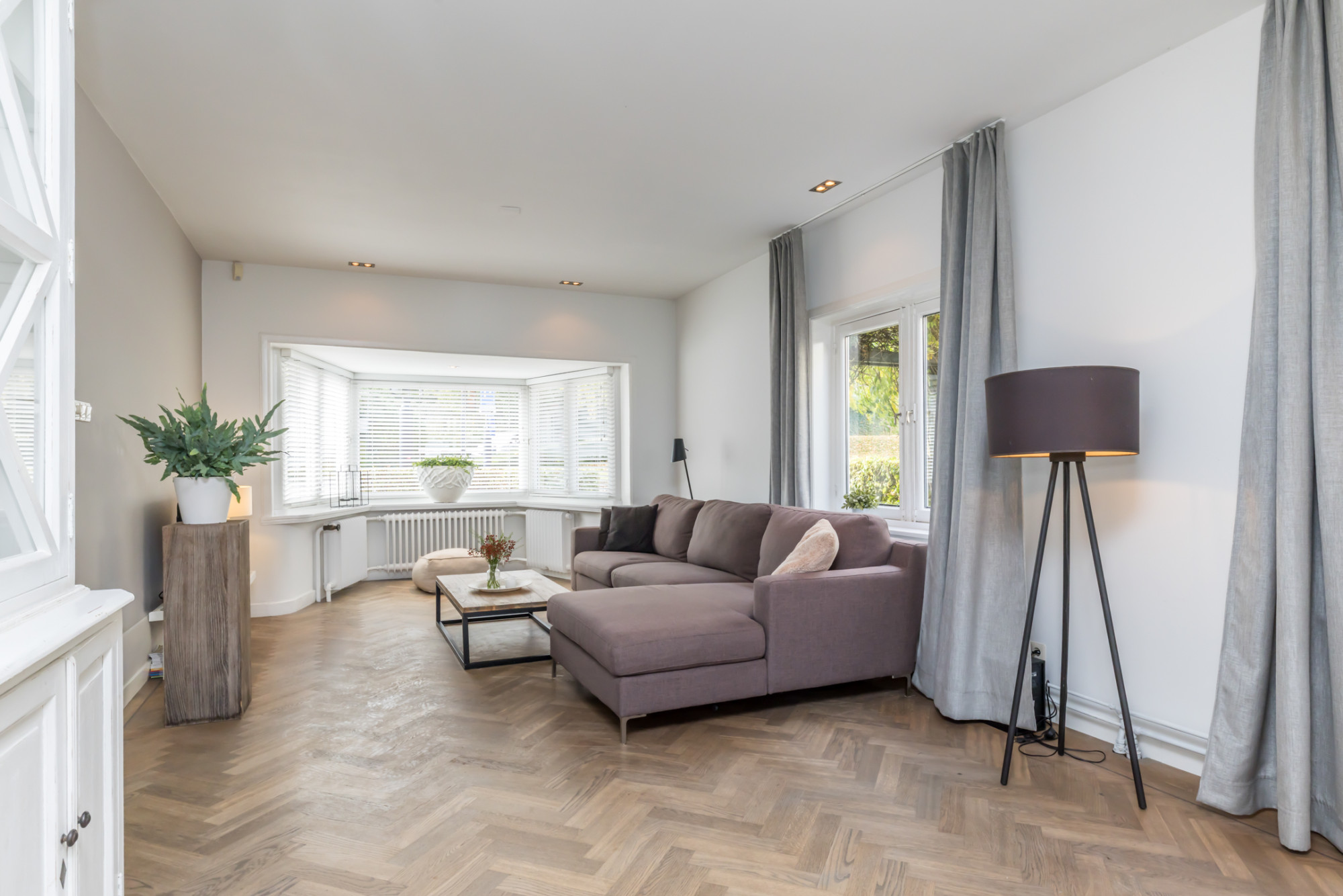 - ruime living verdeeld in 3 ruimten, met aan de voorzijde erker voorzien van visgraad parketvloer