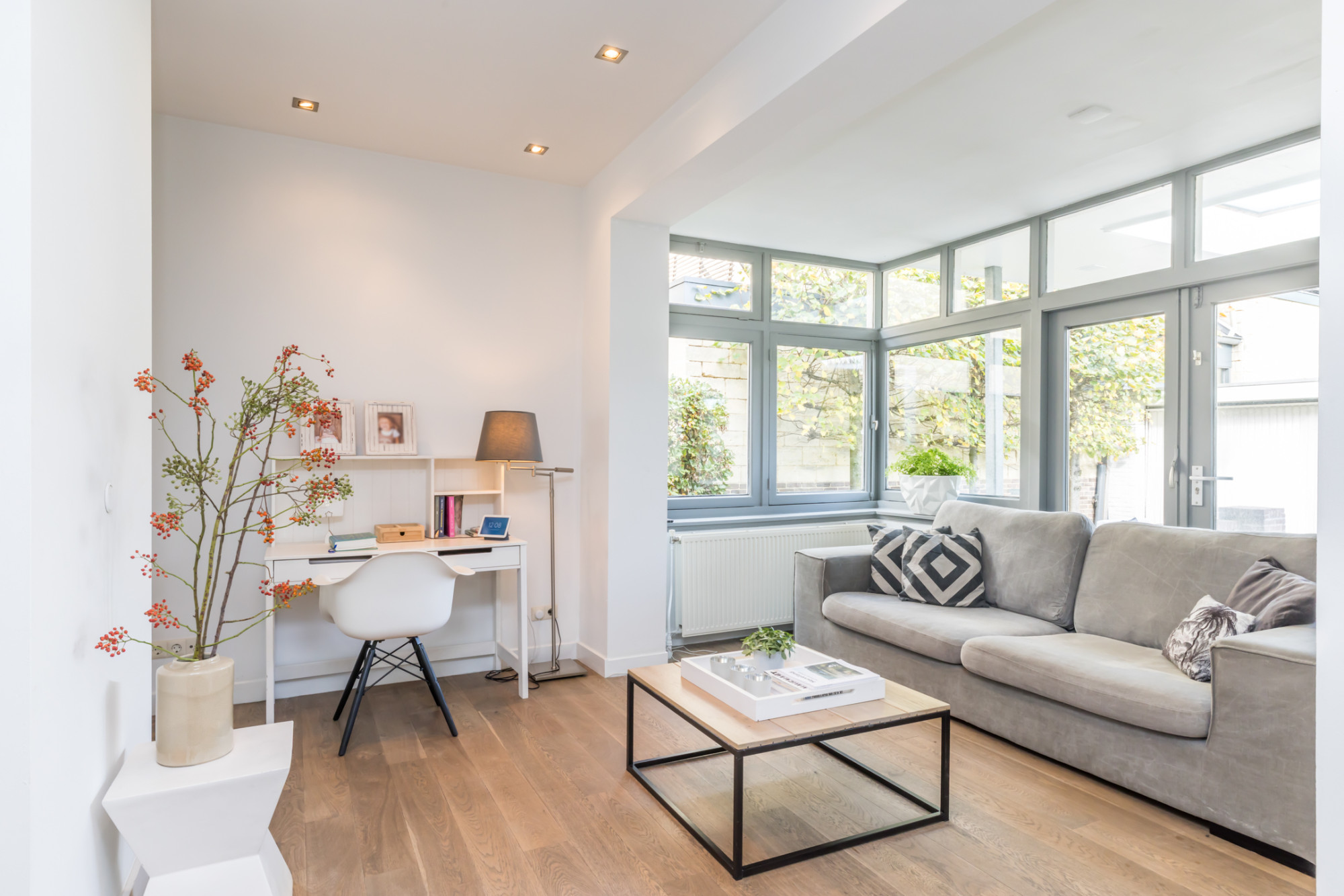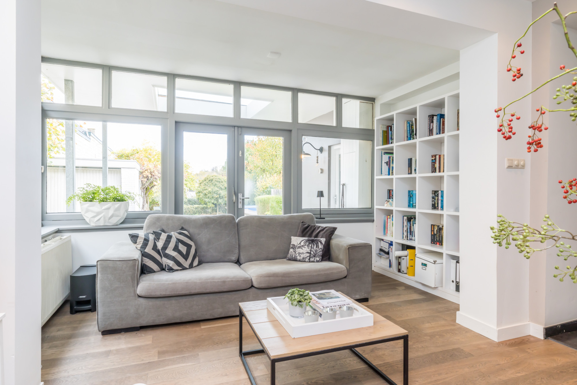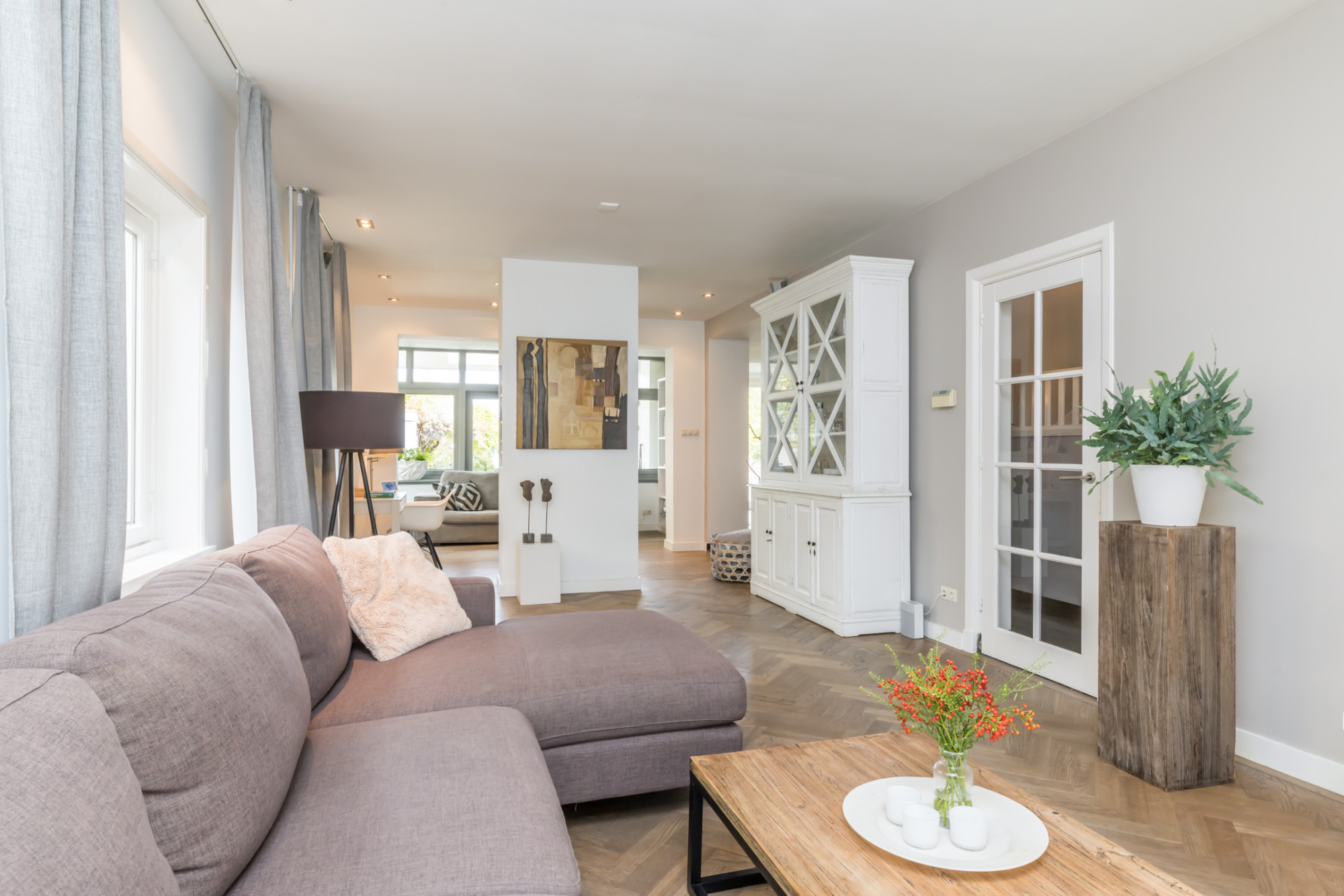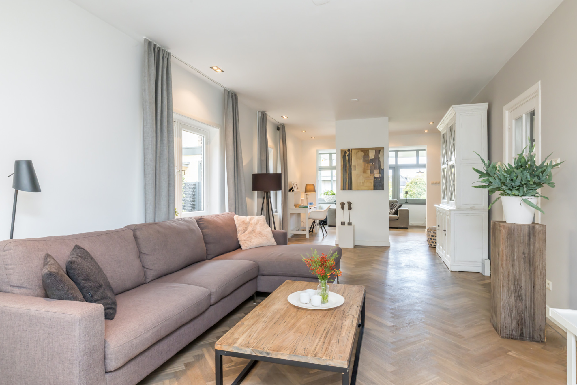 - ruime living verdeeld in 3 ruimten, met aan de voorzijde erker voorzien van visgraad parketvloer