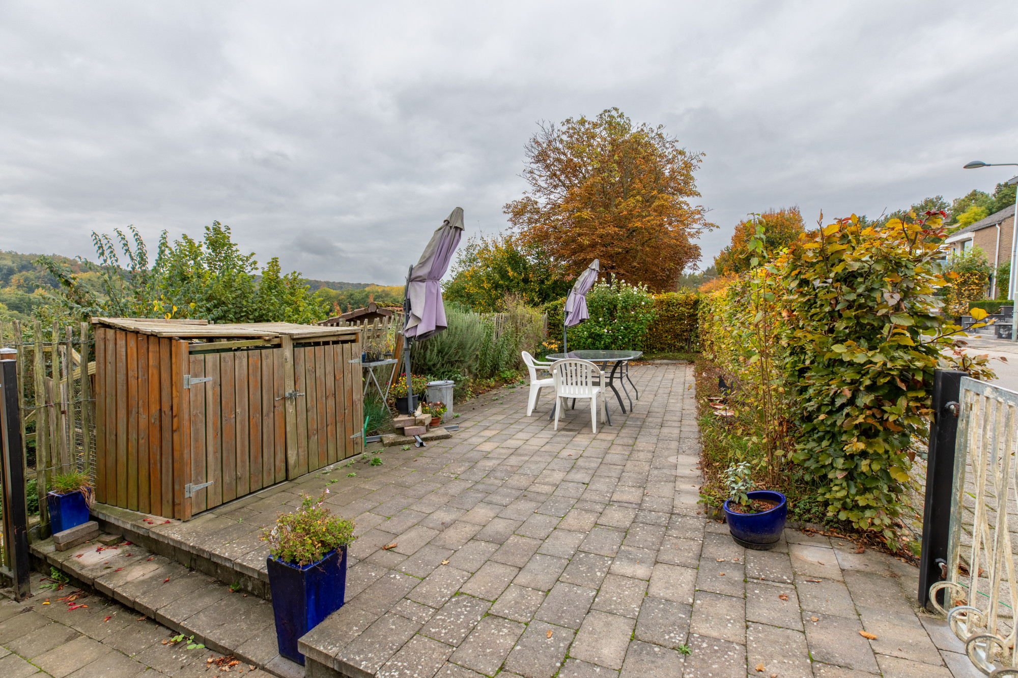 De zeer diepe en ruime tuin grenst direct aan het Ingendael. Ook de achtertuin is te bereiken via kleine weg.