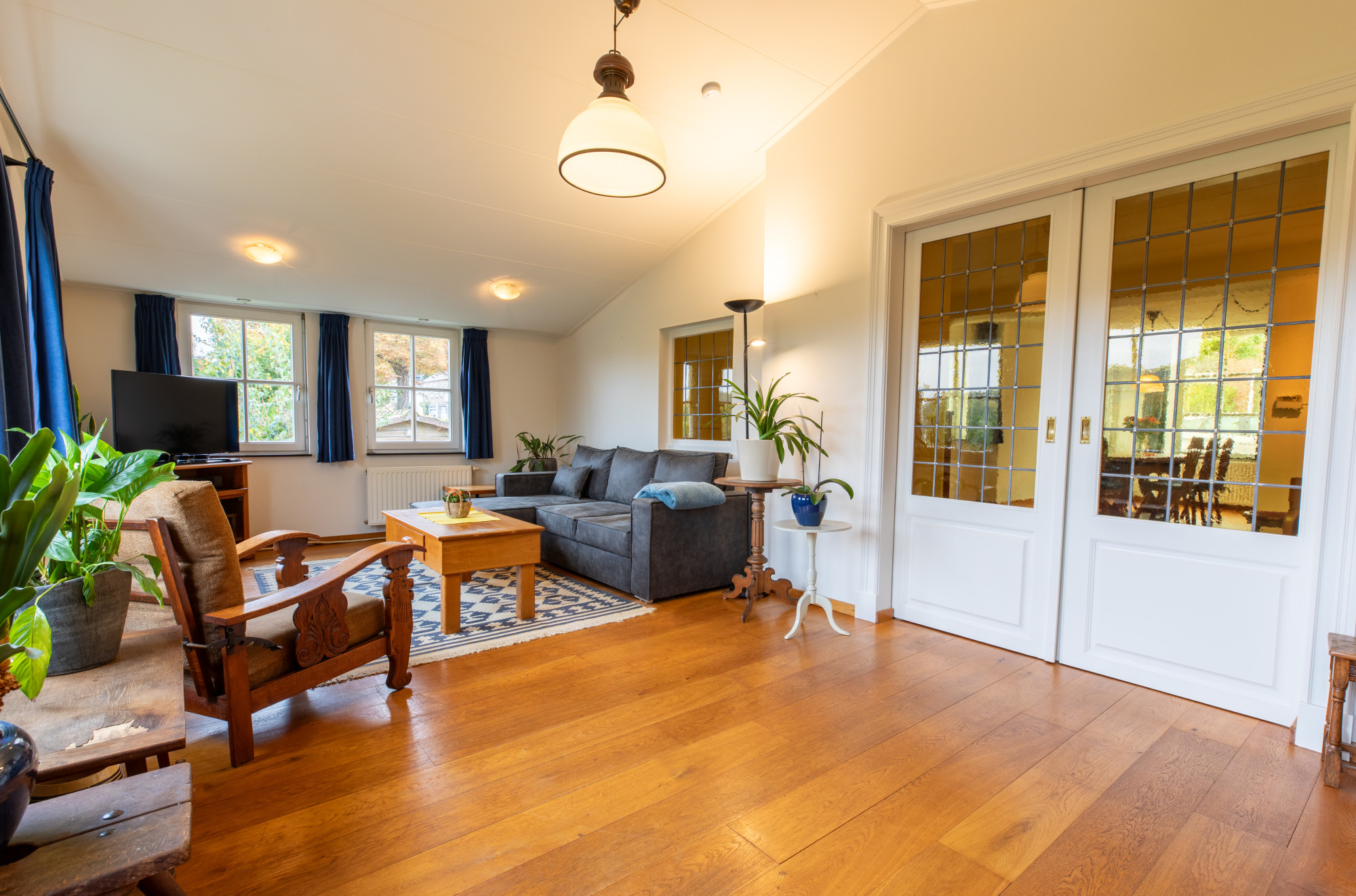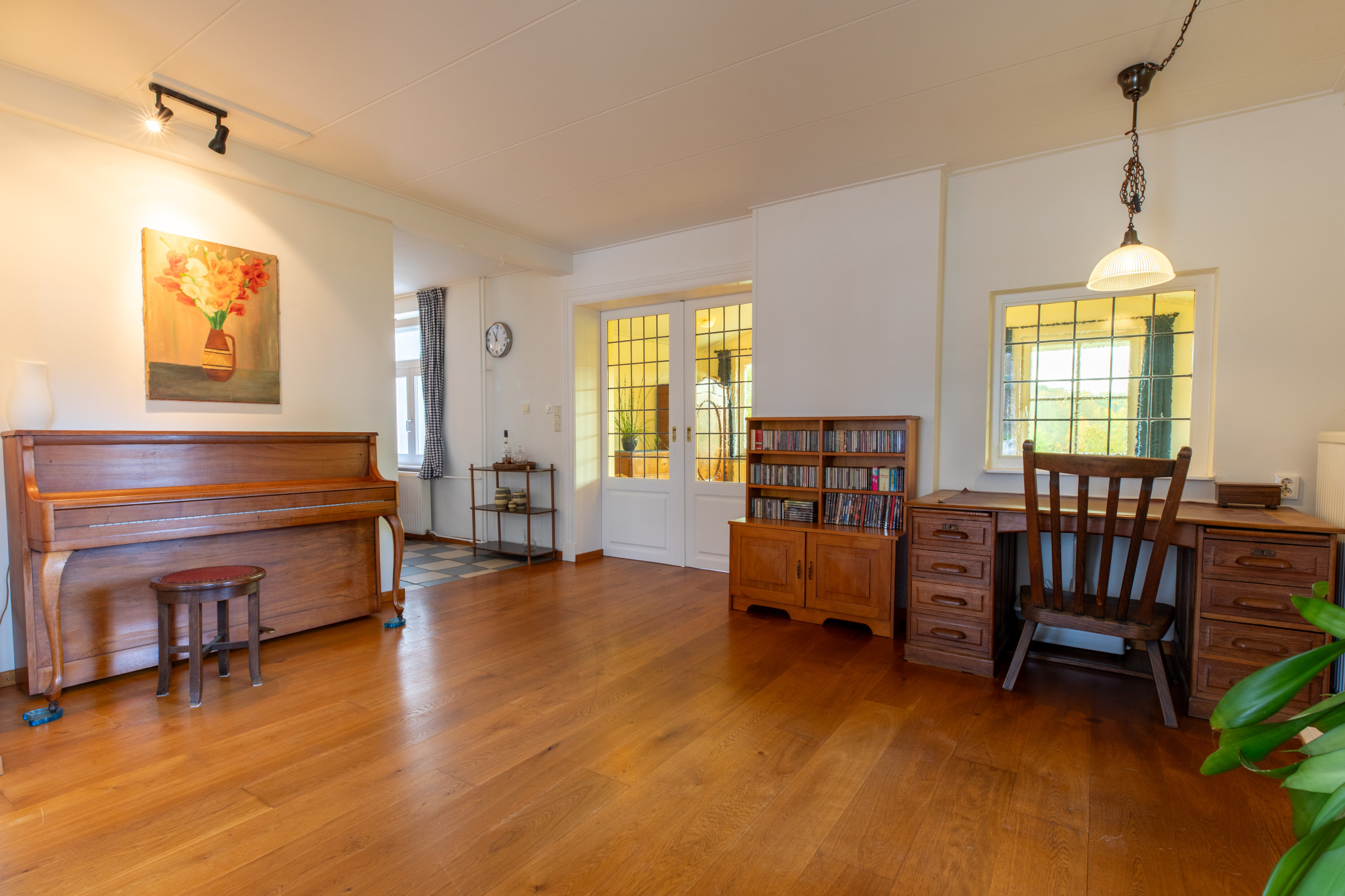 Sfeervolle woonkamer (7.91 x 3.74 m) voorzien van mooie parketvloer.