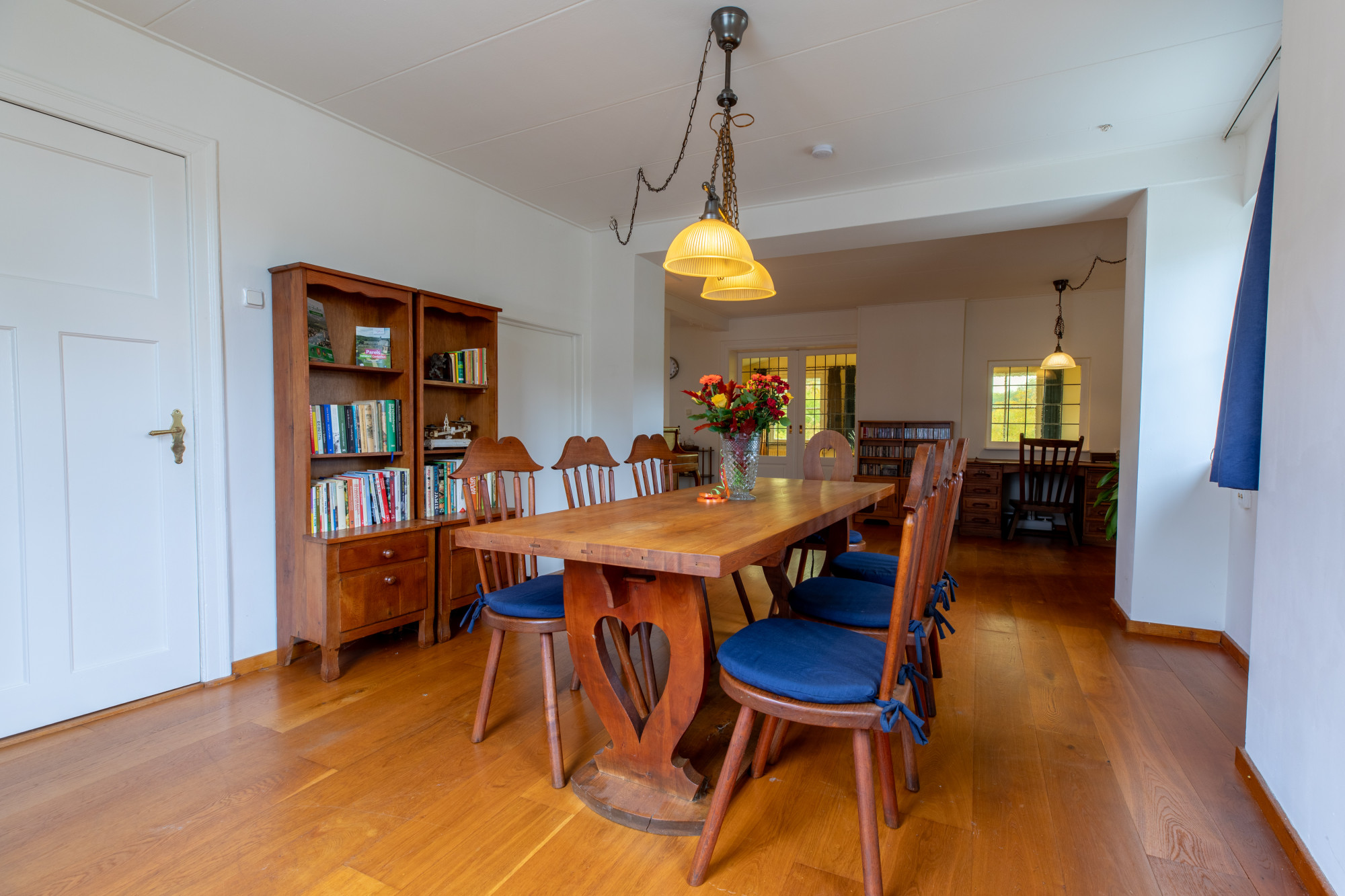 Via deuren ensuite bereikt men de riante eetkamer met prachtig uitzicht over natuurgebied.