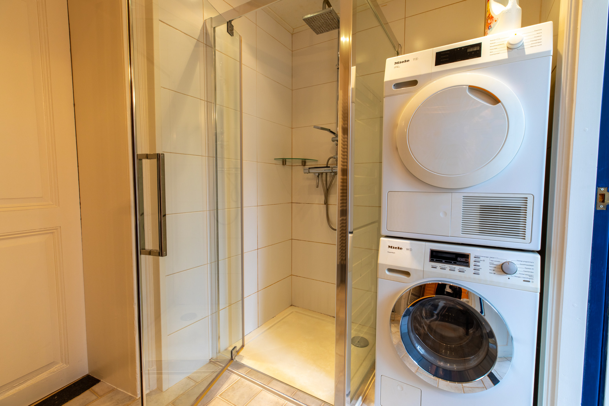 Vanuit de ontvangsthal is de badkamer (3.52 x 1.76 m) te bereiken. Geheel betegelde badkamer met douchecabine, wastafel, witgoed opstelling en sauna.