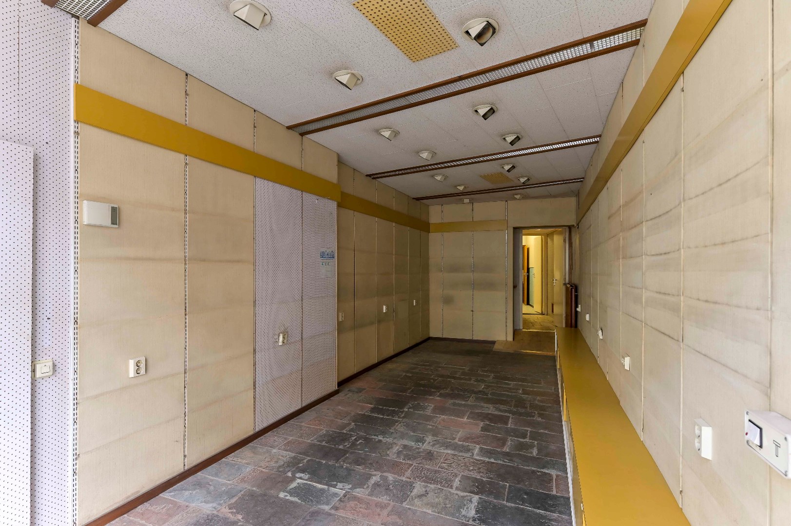 Aan de voorzijde van de bedrijfsruimte bevindt zich een glazen pui. De winkelruimte is voorzien van een leisteenvloer en meterkast. Opslagruimte met witgoedaansluiting. Toiletruimte met staand toilet en fonteintje. Aparte keuken met keukenblok met spoelbak en afzuigkap. Trapkast met CV-opstelling (Nefit H.R combiketel uit 2022).