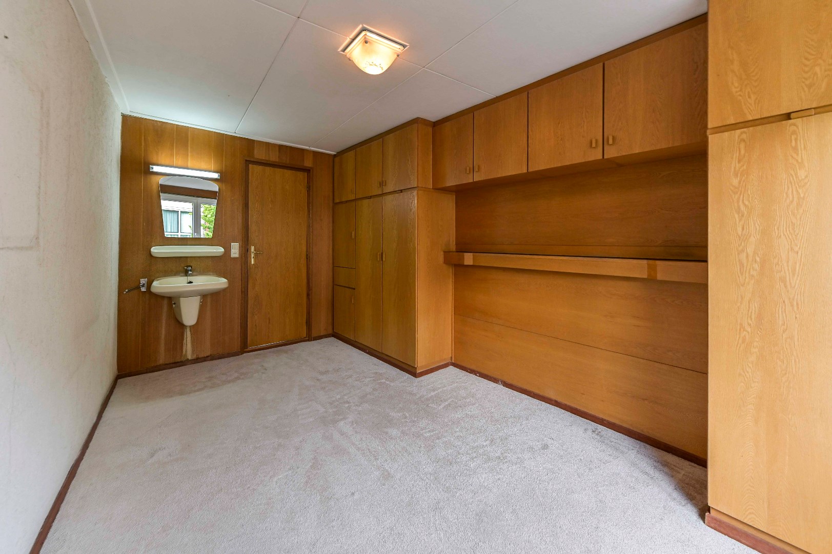 Overloop met twee vaste kasten en aangrenzende 3de slaapkamer met wastafel.