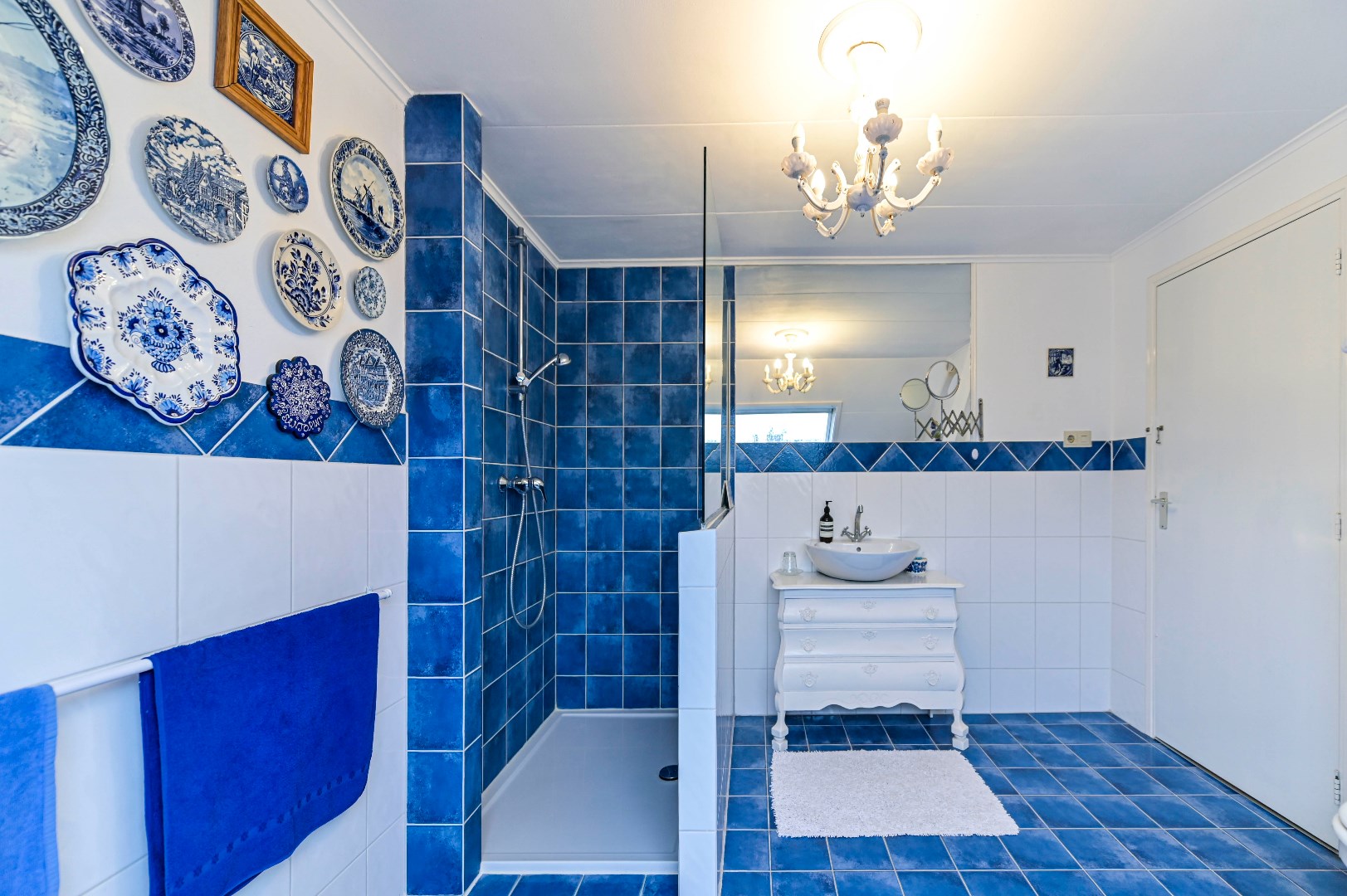Eerste verdieping: Overloop voorzien van laminaatvloer en deur welke toegang biedt tot het ruime dakterras. Tevens zijn vanuit de overloop de 2 ruime slaapkamers (voorheen 3 slaapkamers) en badkamer te bereiken. Beide slaapkamers zijn voorzien van laminaatvloer. De ruime badkamer beschikt over inloopdouche met thermostaatkraan, ligbad, dubbele wastafel met meubel en spiegels. Aparte toiletruimte met zwevend toilet en fonteintje.