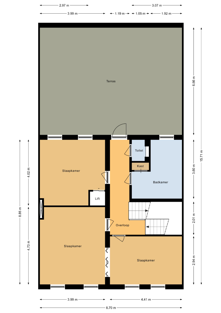 Derde verdieping: grotendeels geïsoleerde vliering.