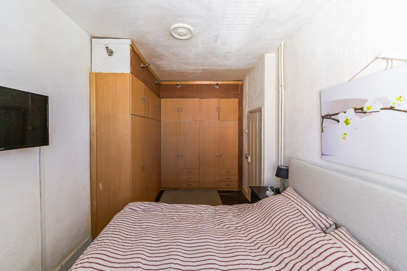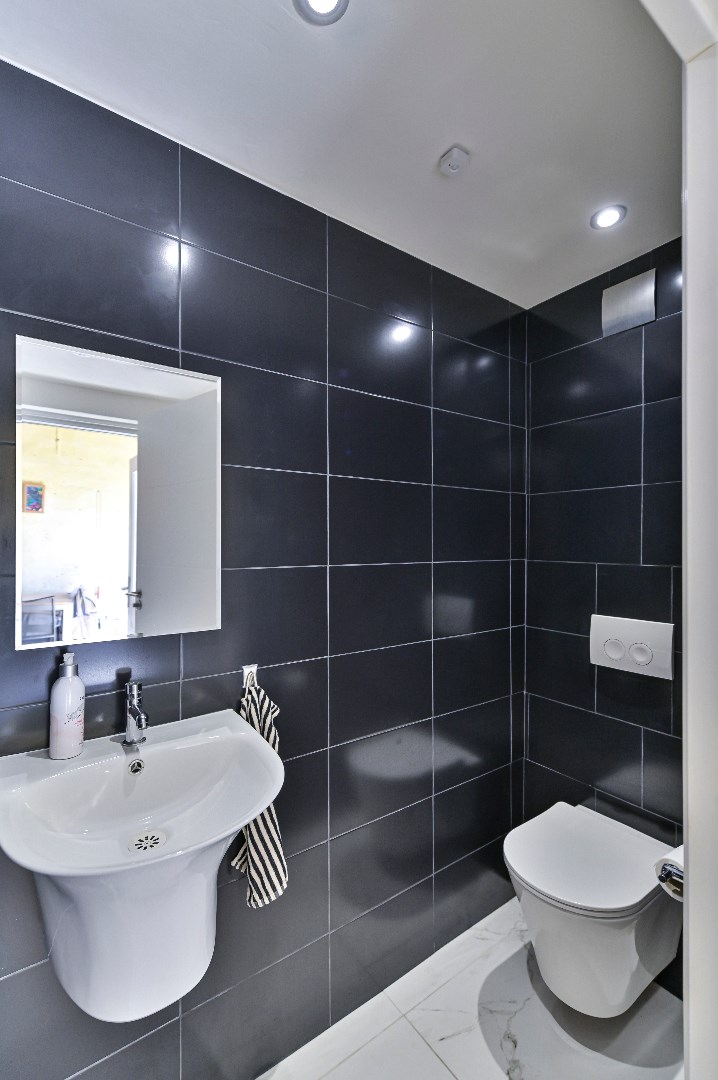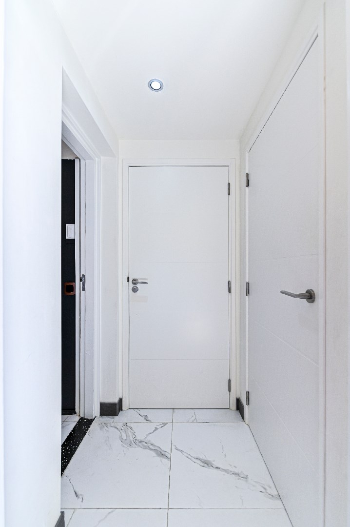 Overloop welke toegang biedt tot de twee slaapkamers met laminaatvloer. tussenkamer met houten vloer en aangrenzende badkamer. De badkamer is uitgerust met ligbad, douche, wastafel en een tweede toilet.